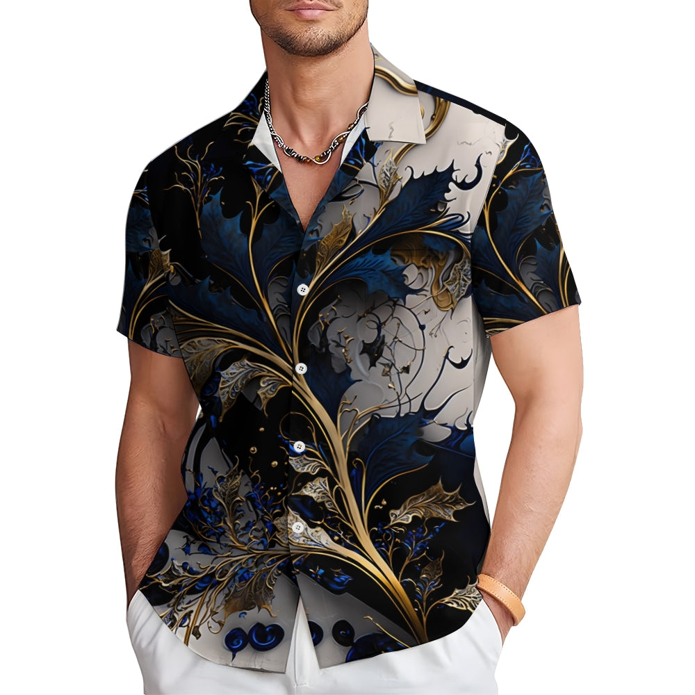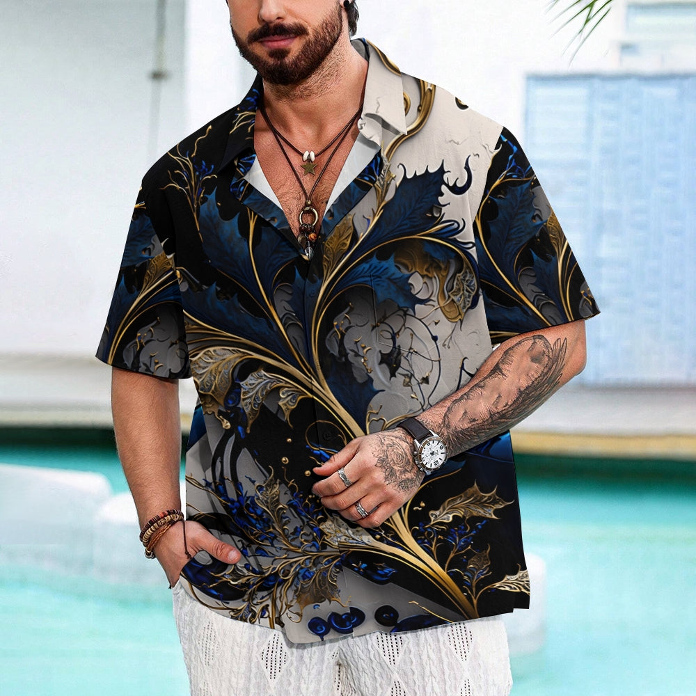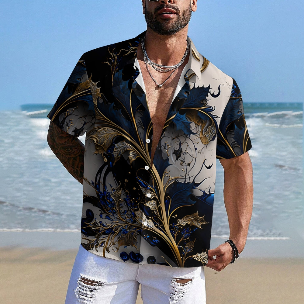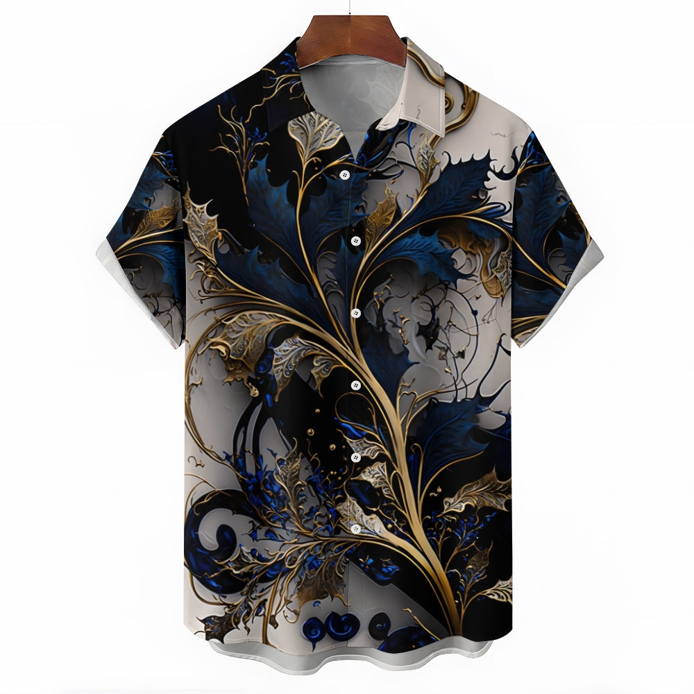 Hawaiian Gilded Art Floral Print Men's Button Pocket Short Sleeve Shirt 2405000204