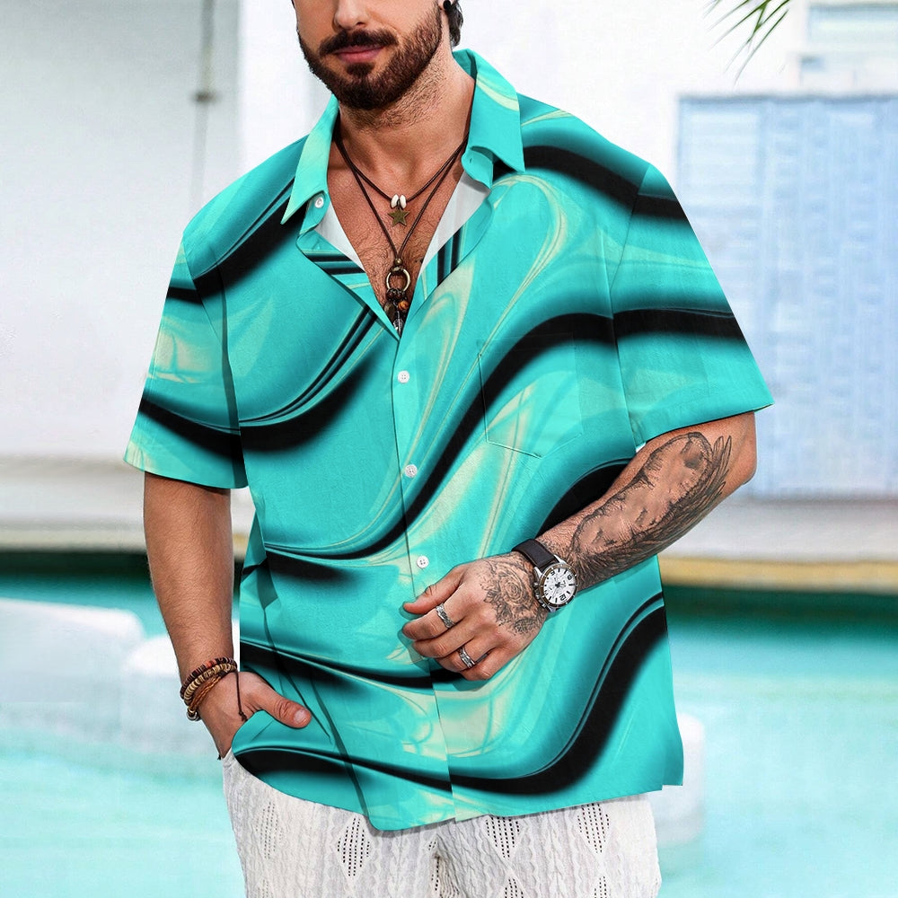 Hawaiian Ombre Art Print Men's Button Pocket Short Sleeve Shirt 2407003881