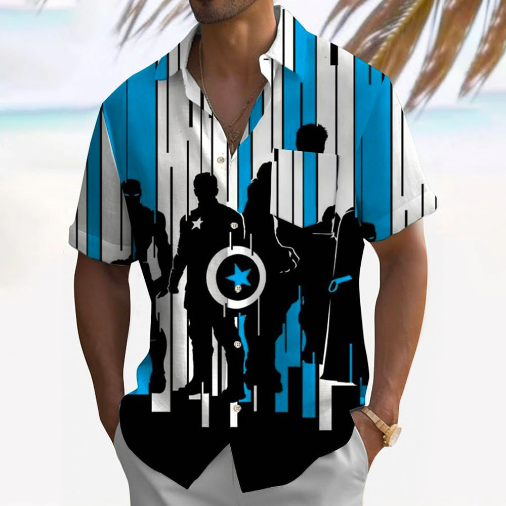 Hero Print Large Slub Linen Short Sleeve Shirt