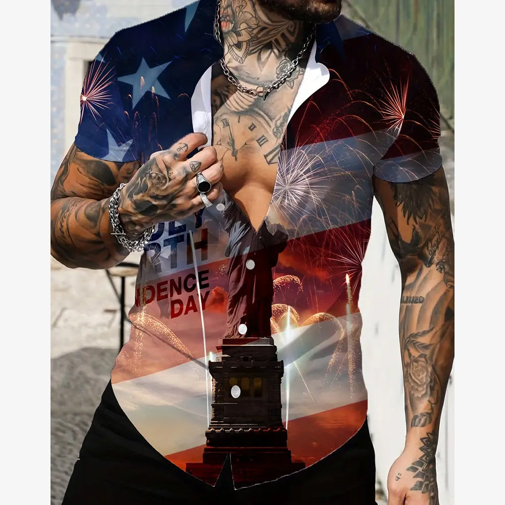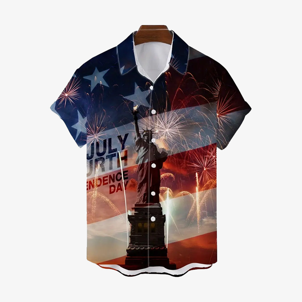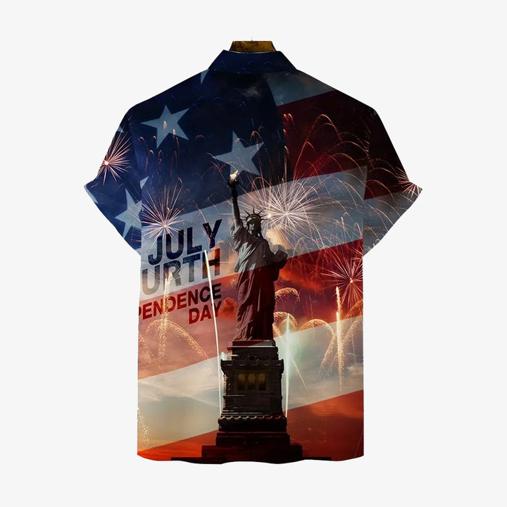 Independence Day Flag Lady Liberty Print Short Sleeve Shirt
