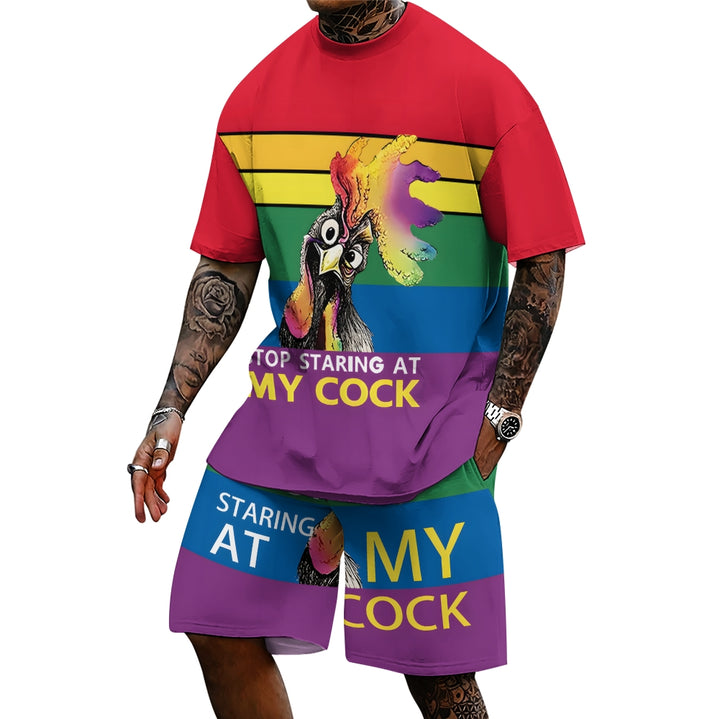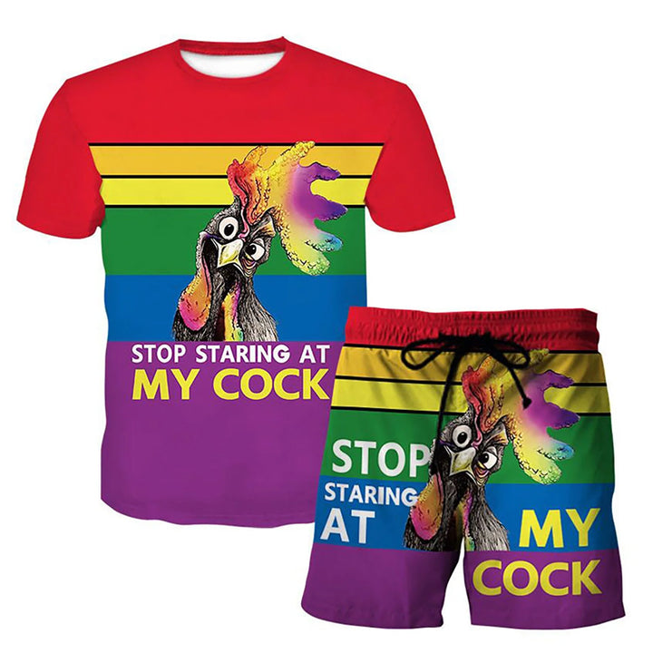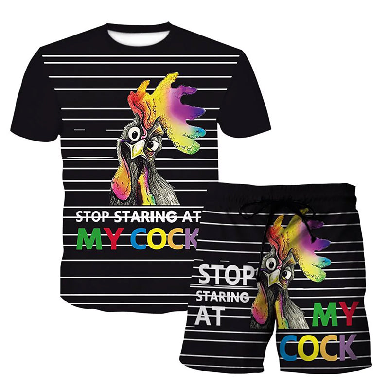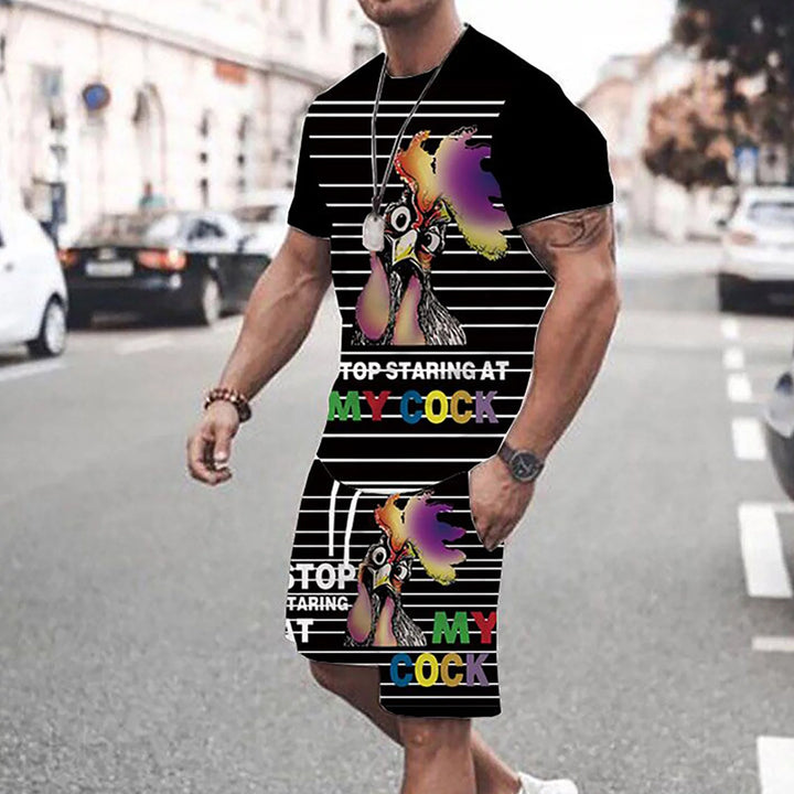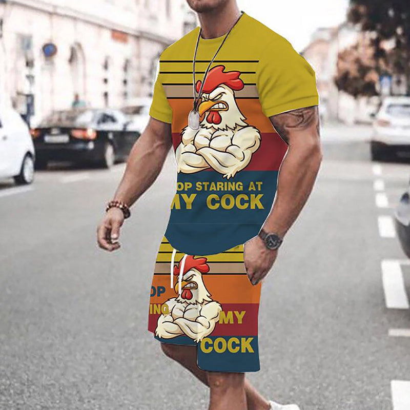 Men's 3D rooster print short-sleeved T-shirt and shorts two-piece set 2407002502