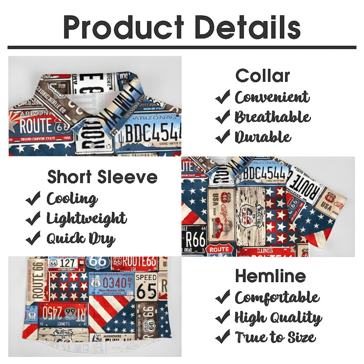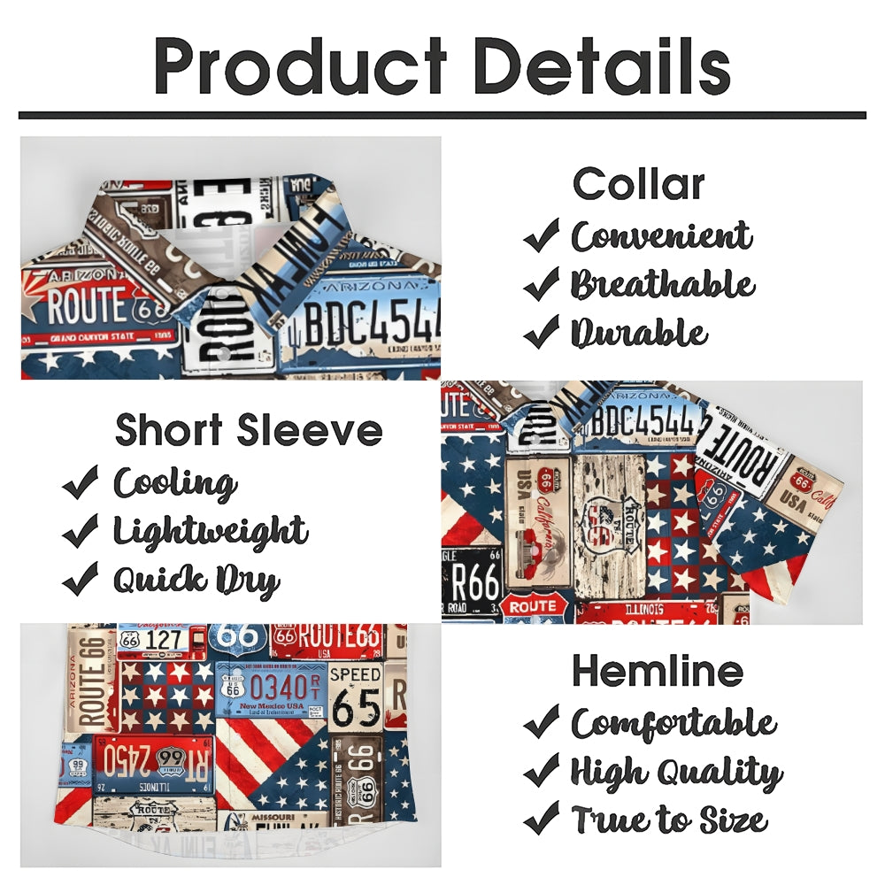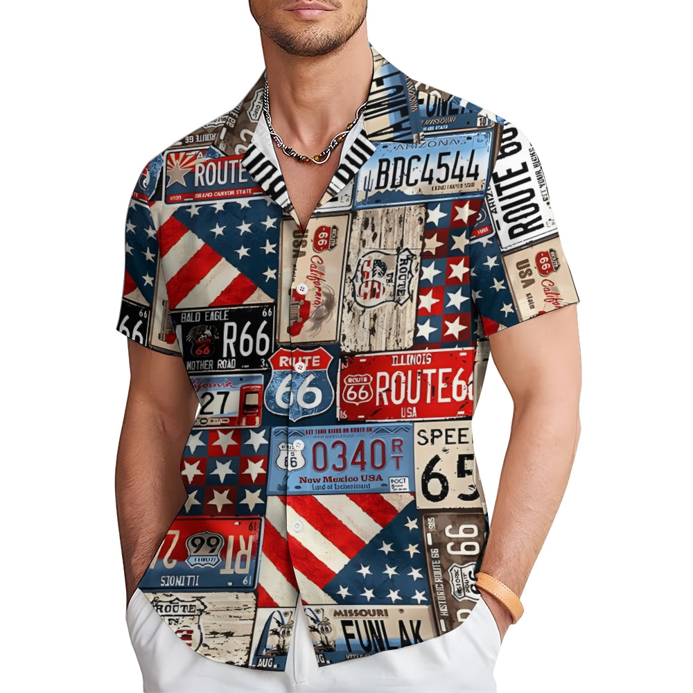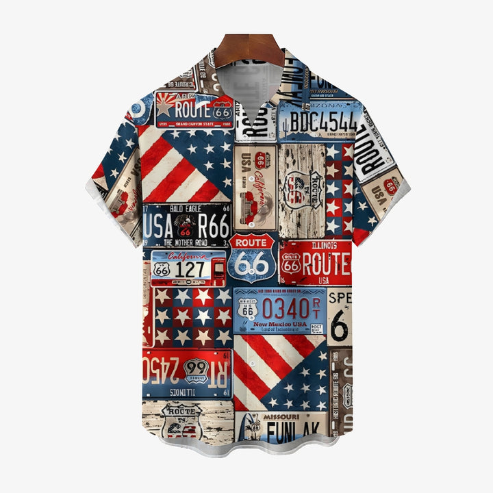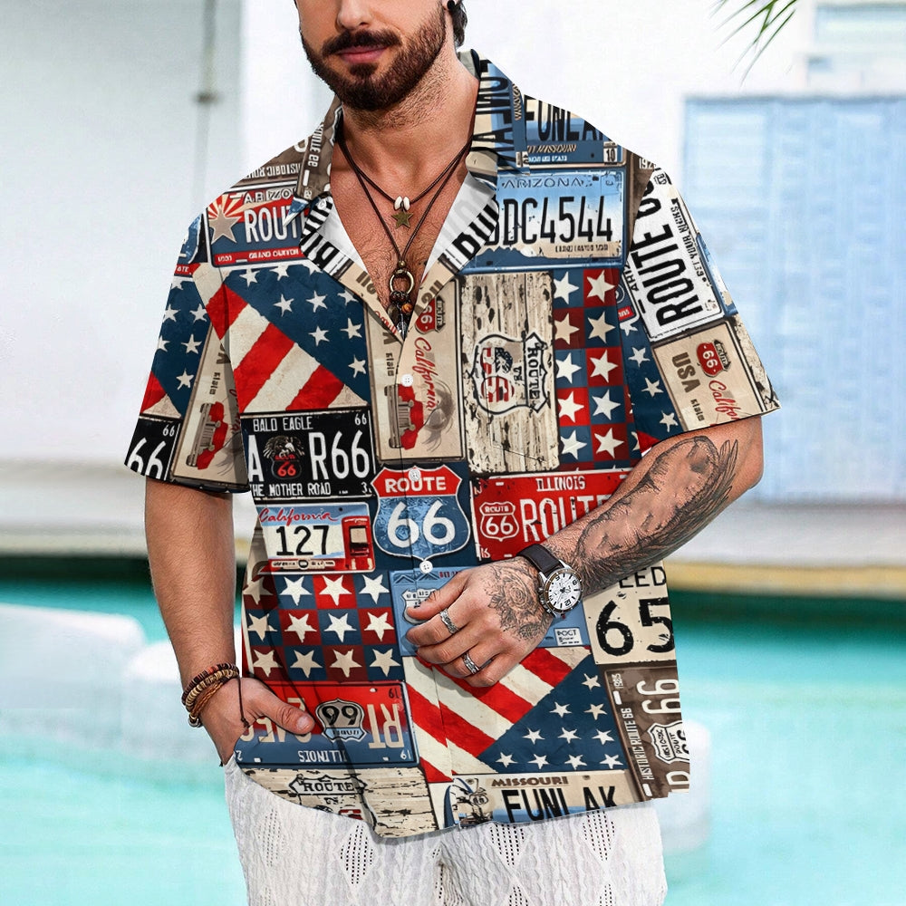 Men's American License Plate Collage Print Casual Short Sleeve Shirt 2401000105