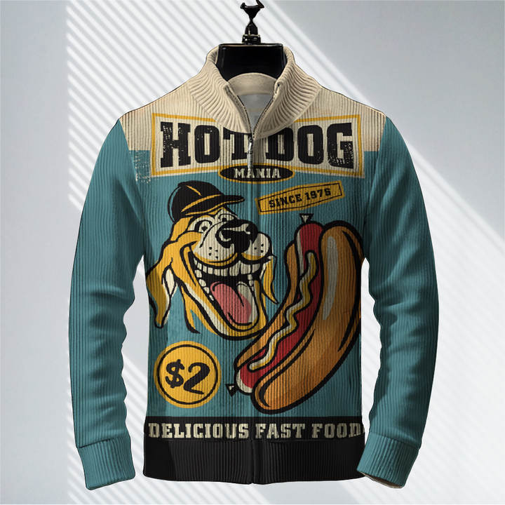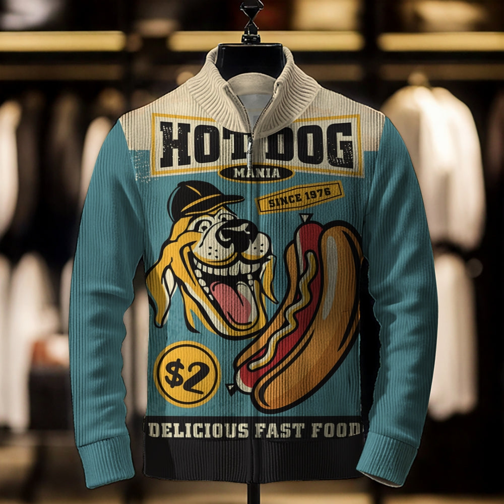 Men's Artistic Hot Dog Print Zip-Up Sweater Jacket 2409005258