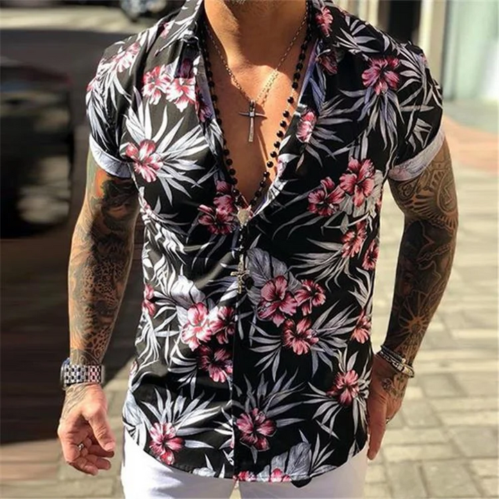 Men's Vacation Style Floral Printed Short Sleeve Shirt