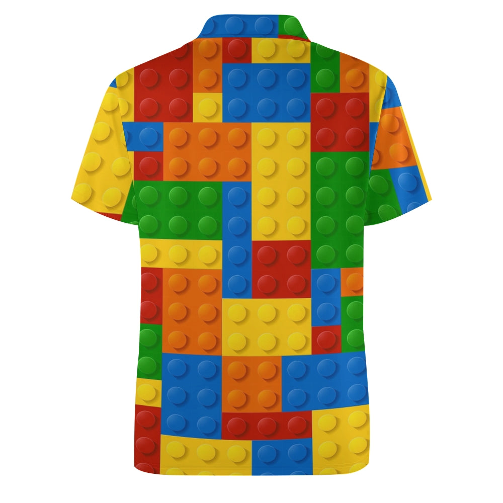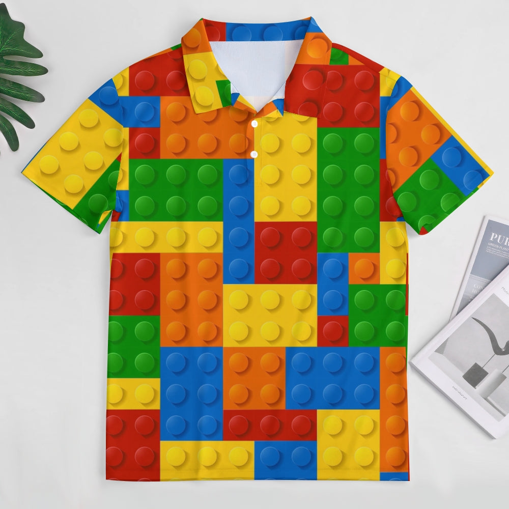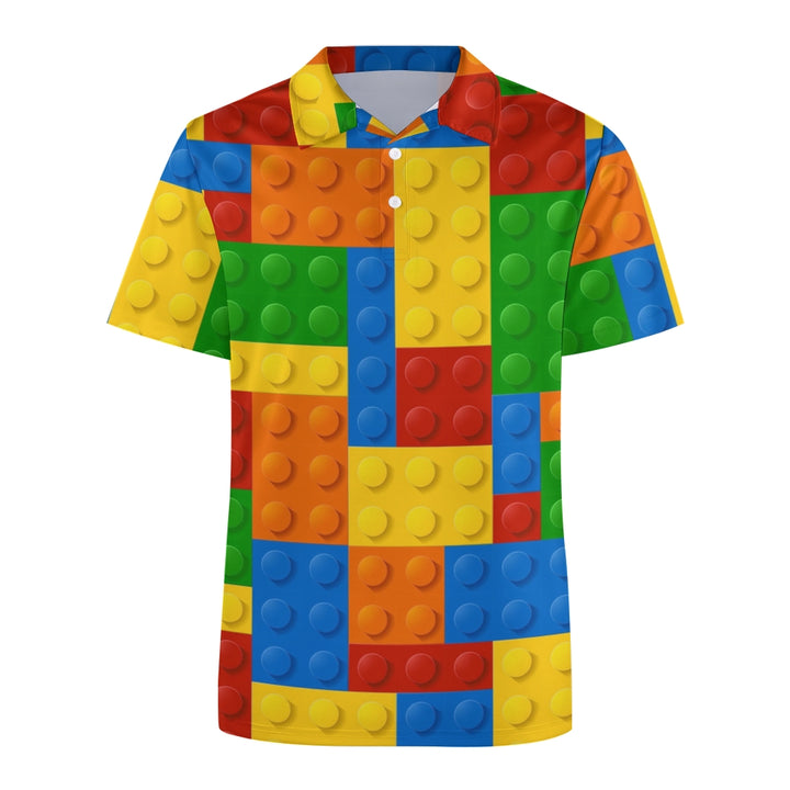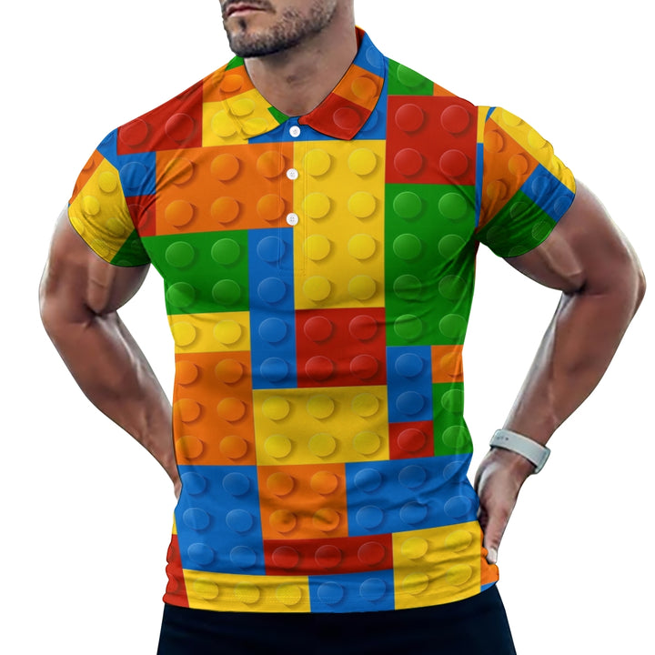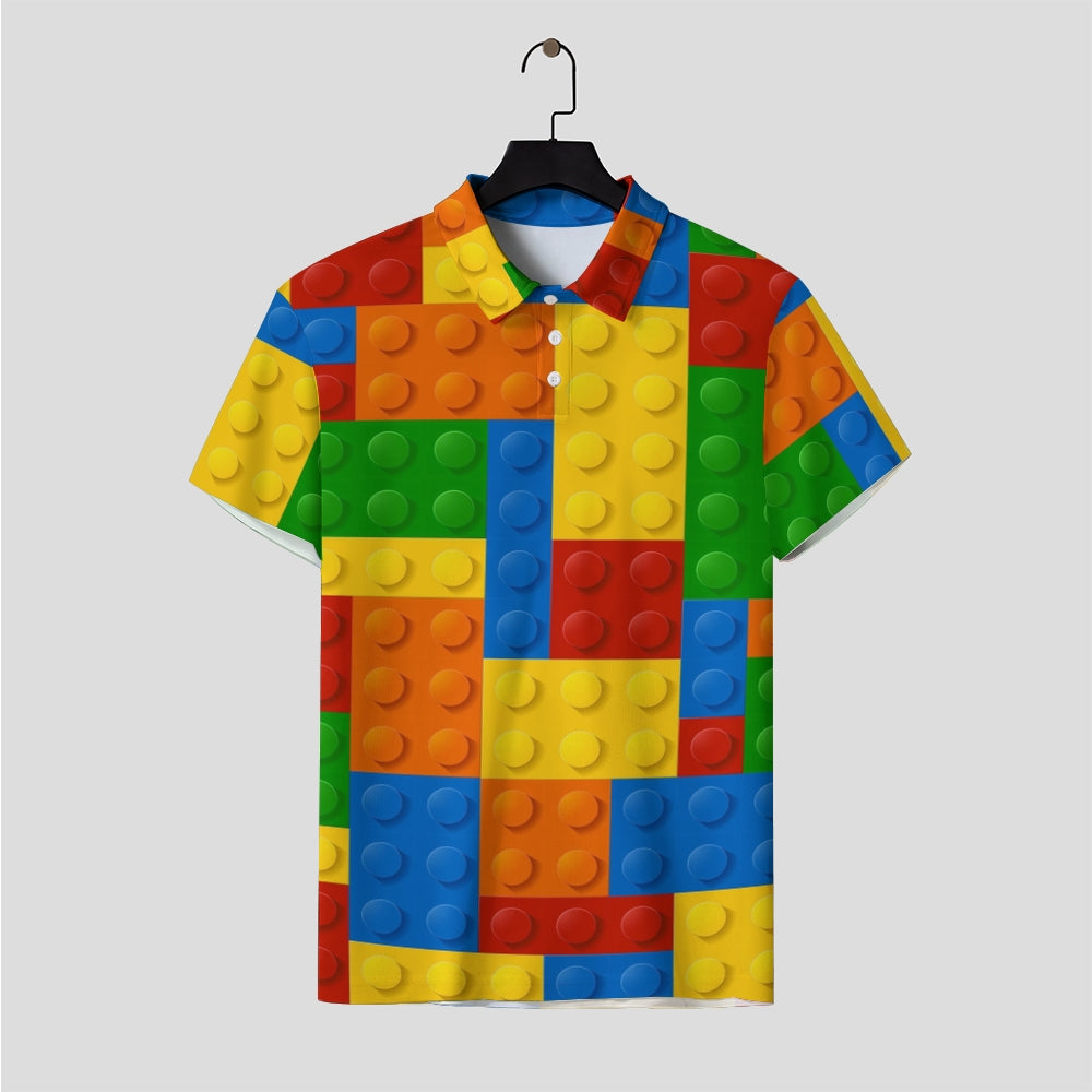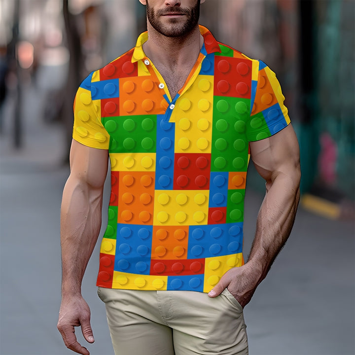 Men's Button-Down Short Sleeve Block Art Print Polo Shirt 2312000151
