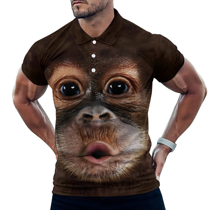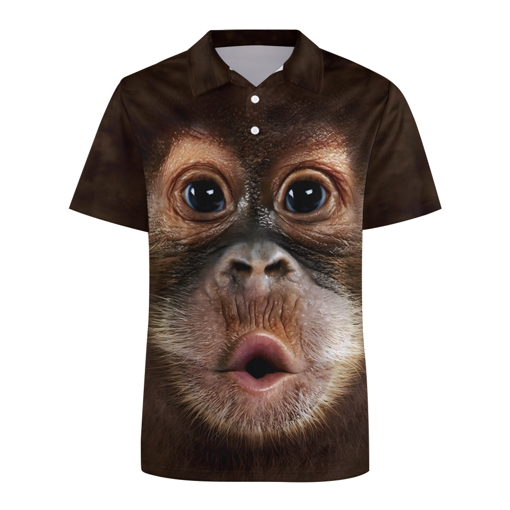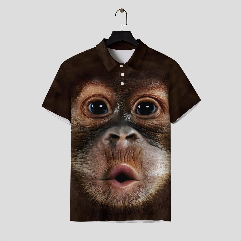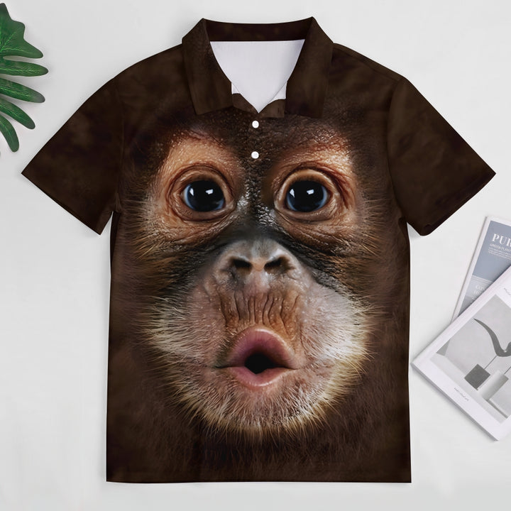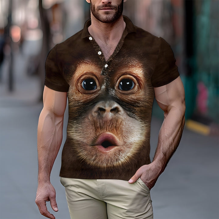 Men's Button Down Short Sleeve Exhaling Orangutan Printed Polo Shirt 2312000294