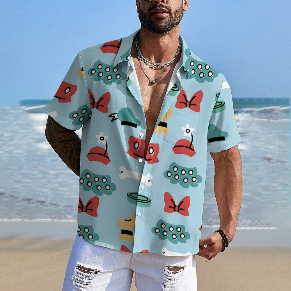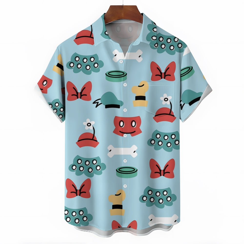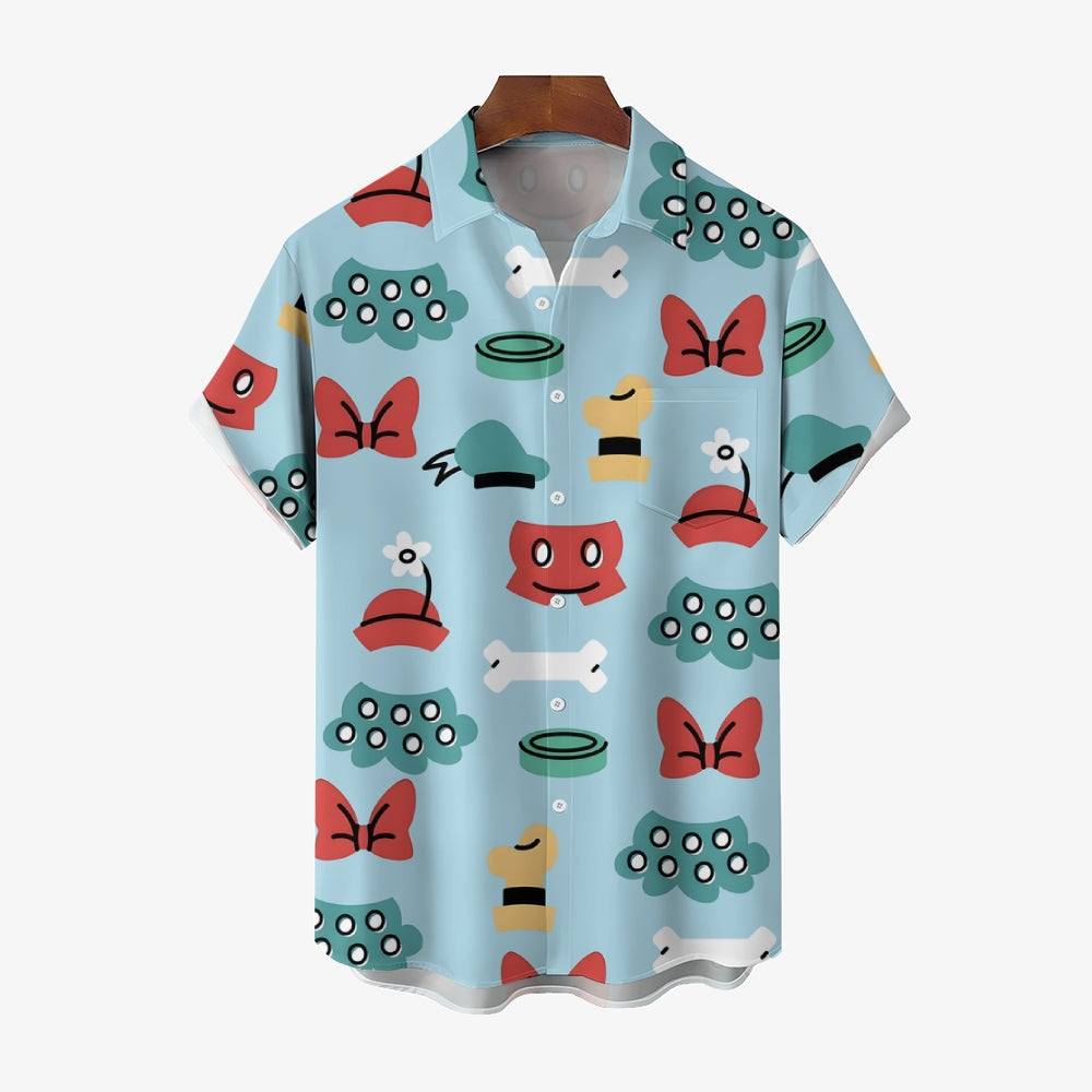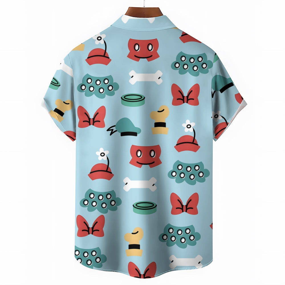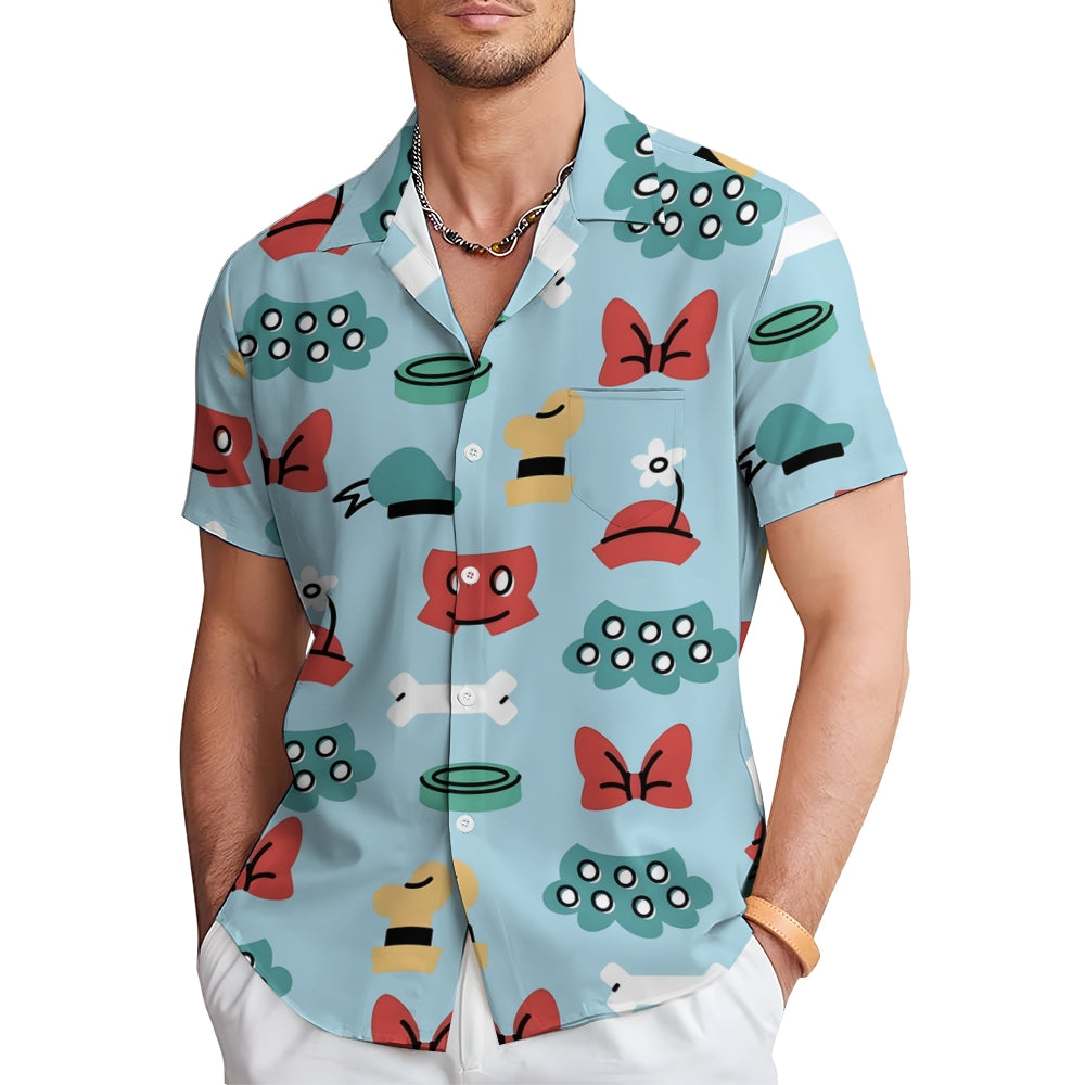 Men's Classic Cartoon Modified Car Pinstripe Contrast Short Sleeve Shirt 2411001857