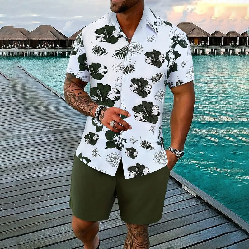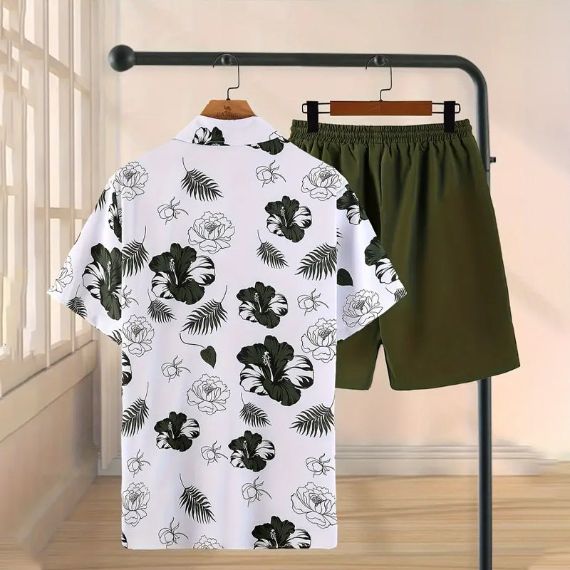 Men's Tropical Paradise Leaf Print 2Pcs Outfit Set