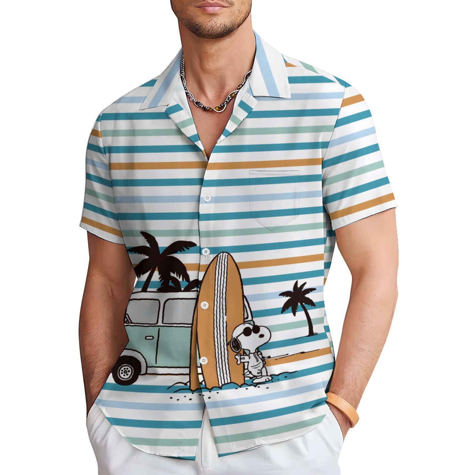 Men's Cartoon Stripes Casual Short Sleeve Shirt 2403000290
