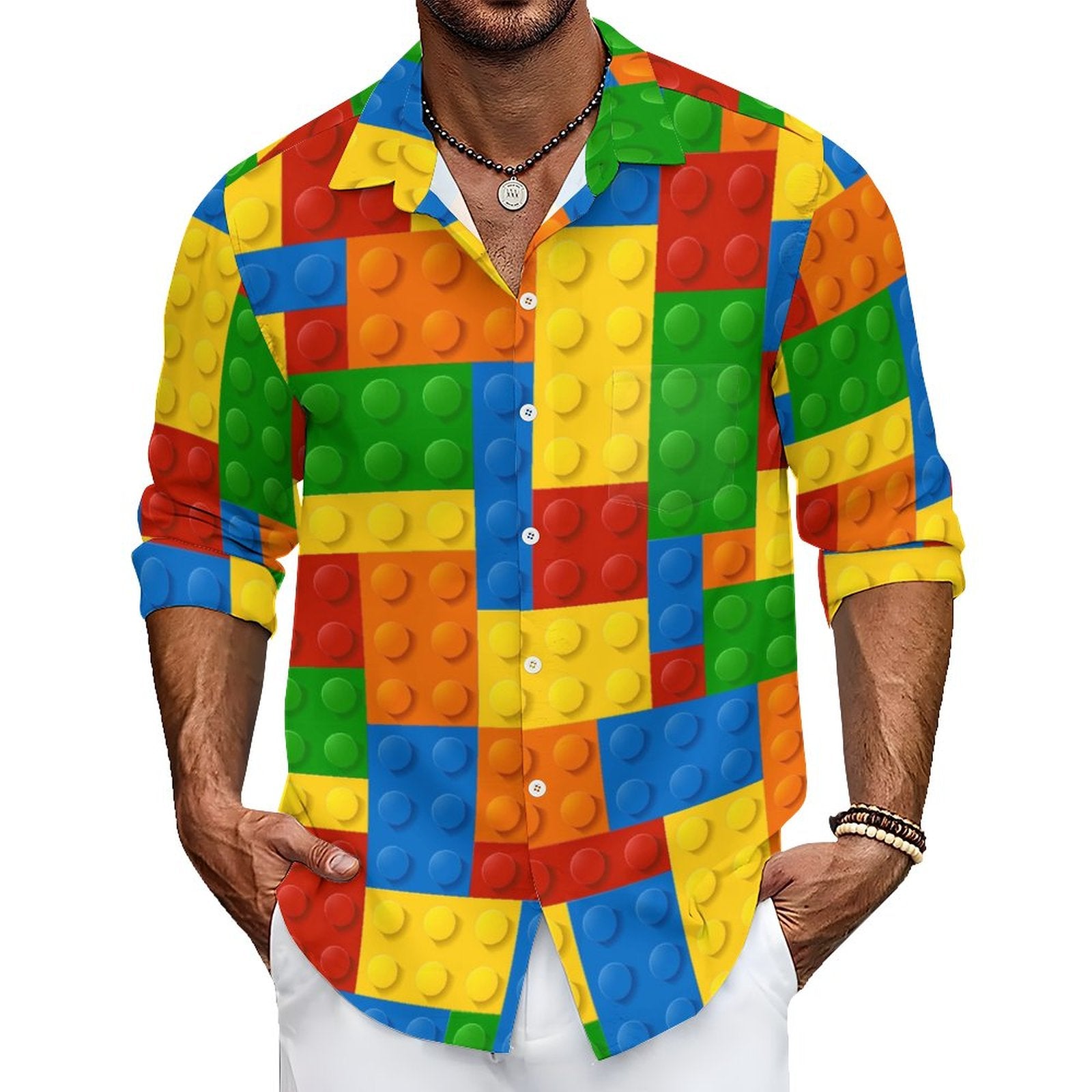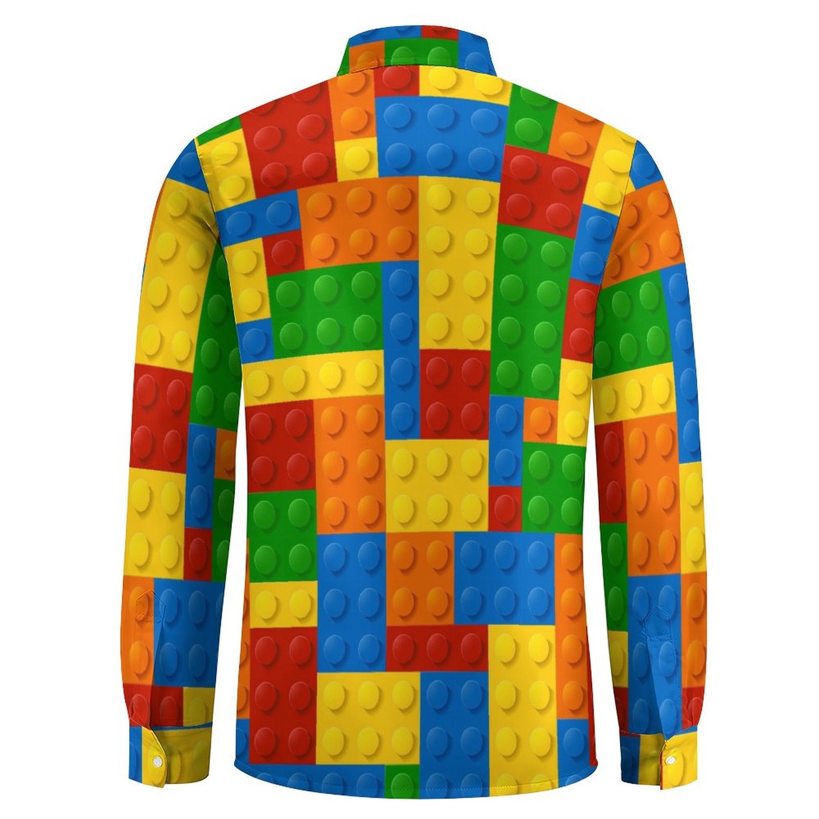 Men's Casual Building Block Art Printed Long Sleeve Shirt 2312000070