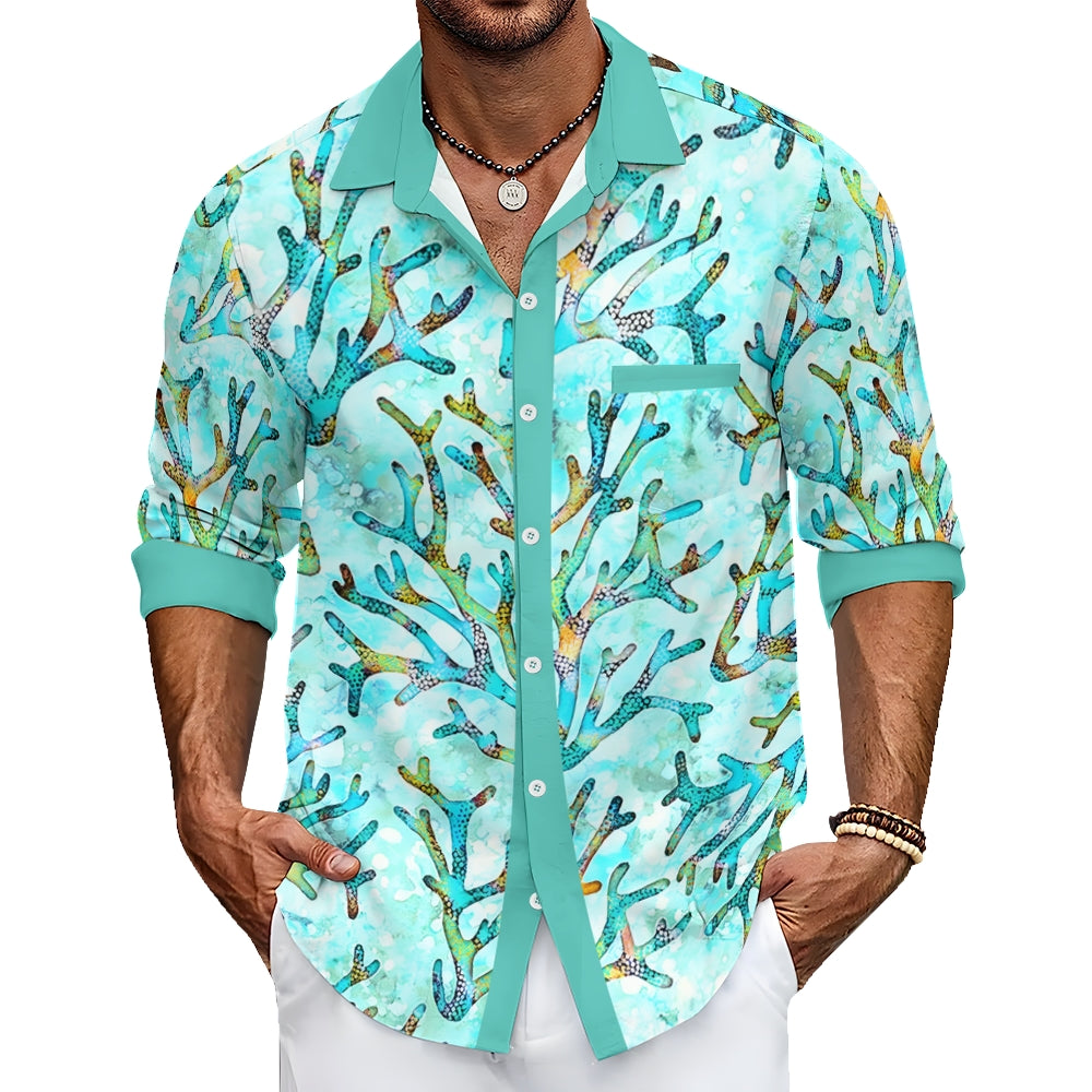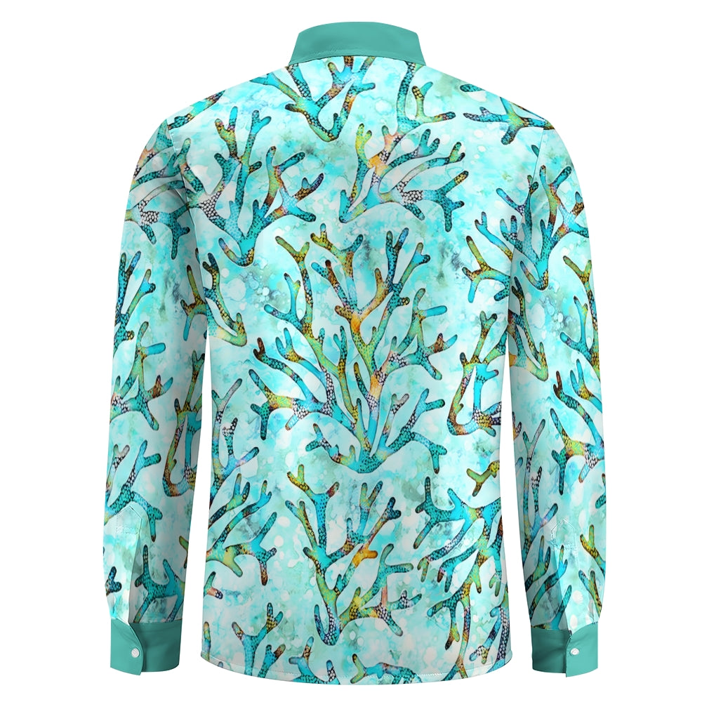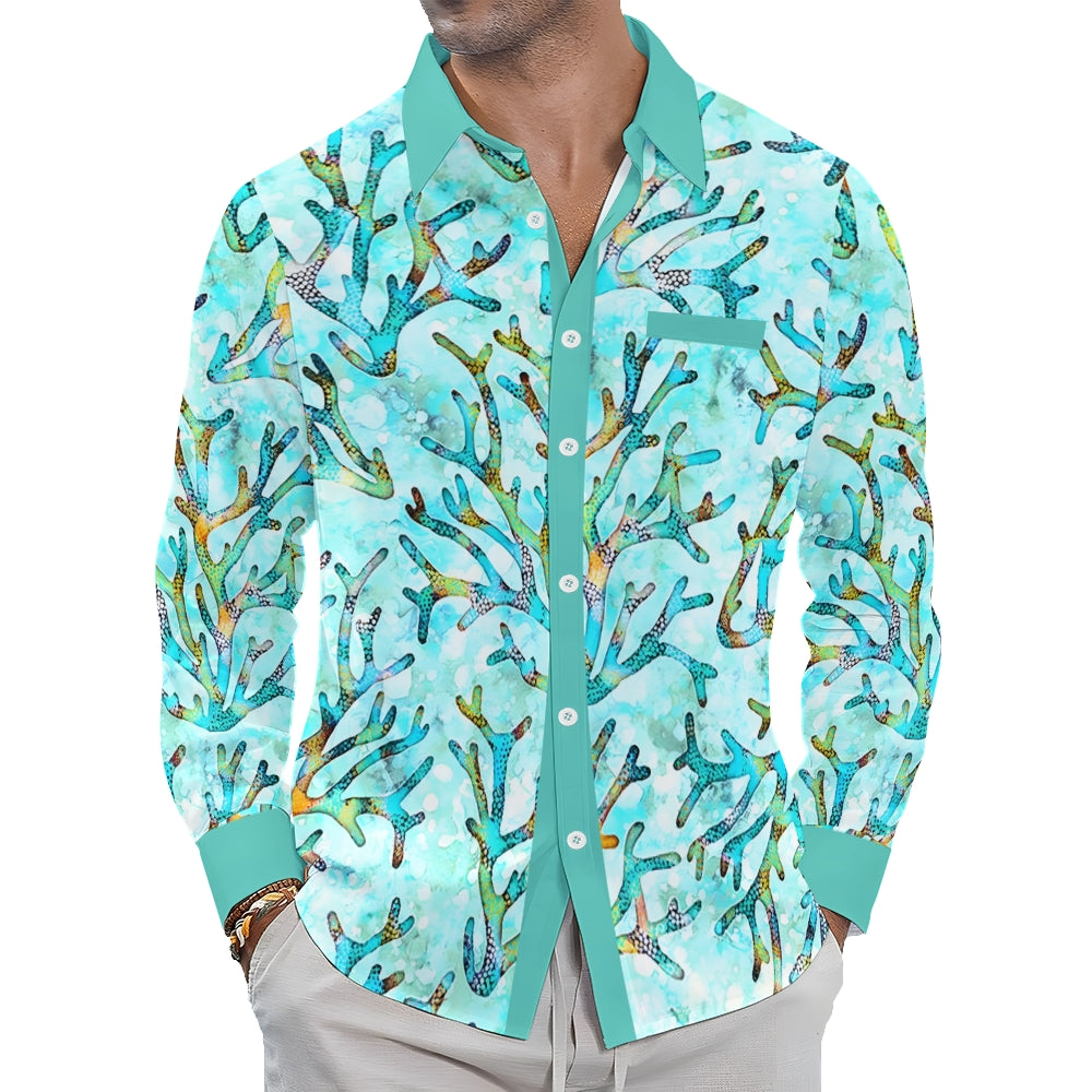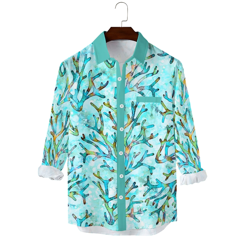 Men's Casual Coral Printed Long Sleeve Shirt 2403000597