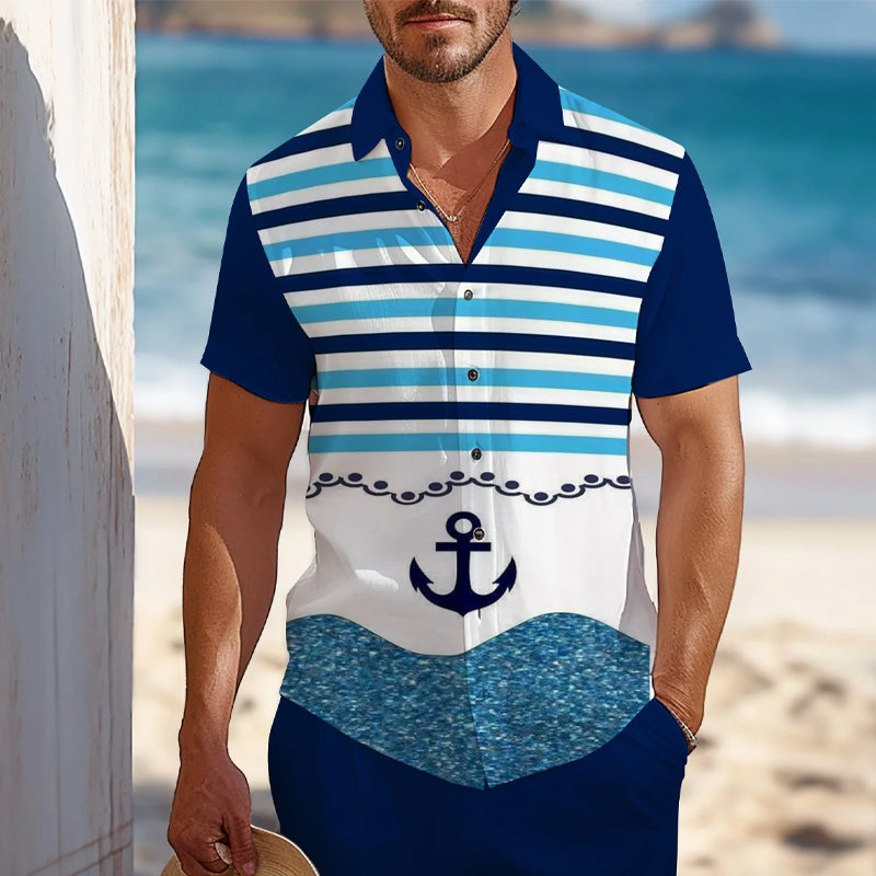 Men's Casual Hawaiian Anchor Striped Vacation Shirts