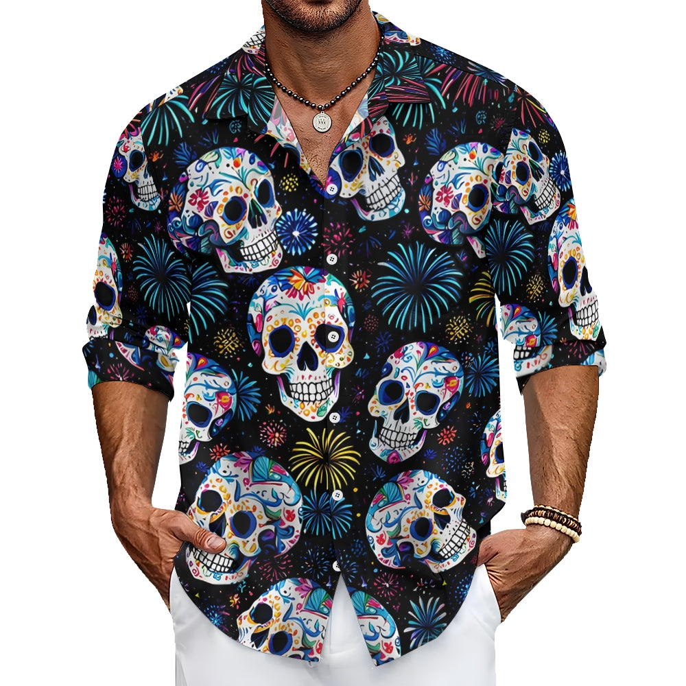Men's Casual Mexican Culture Skull Printed Long Sleeve Shirt 2411002594