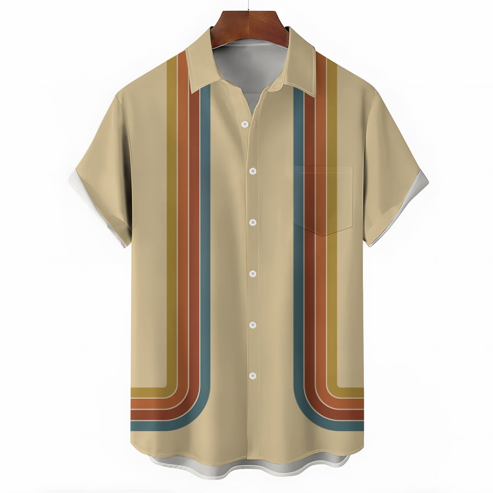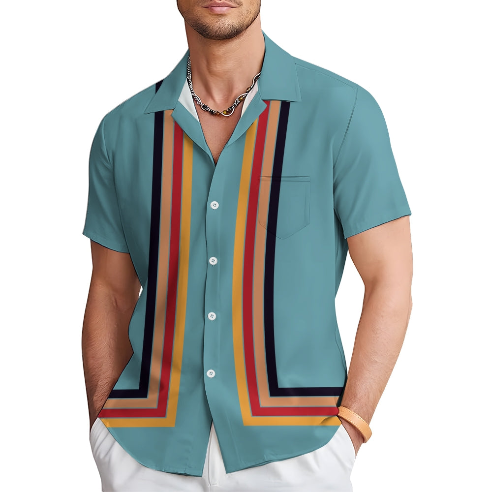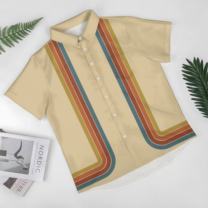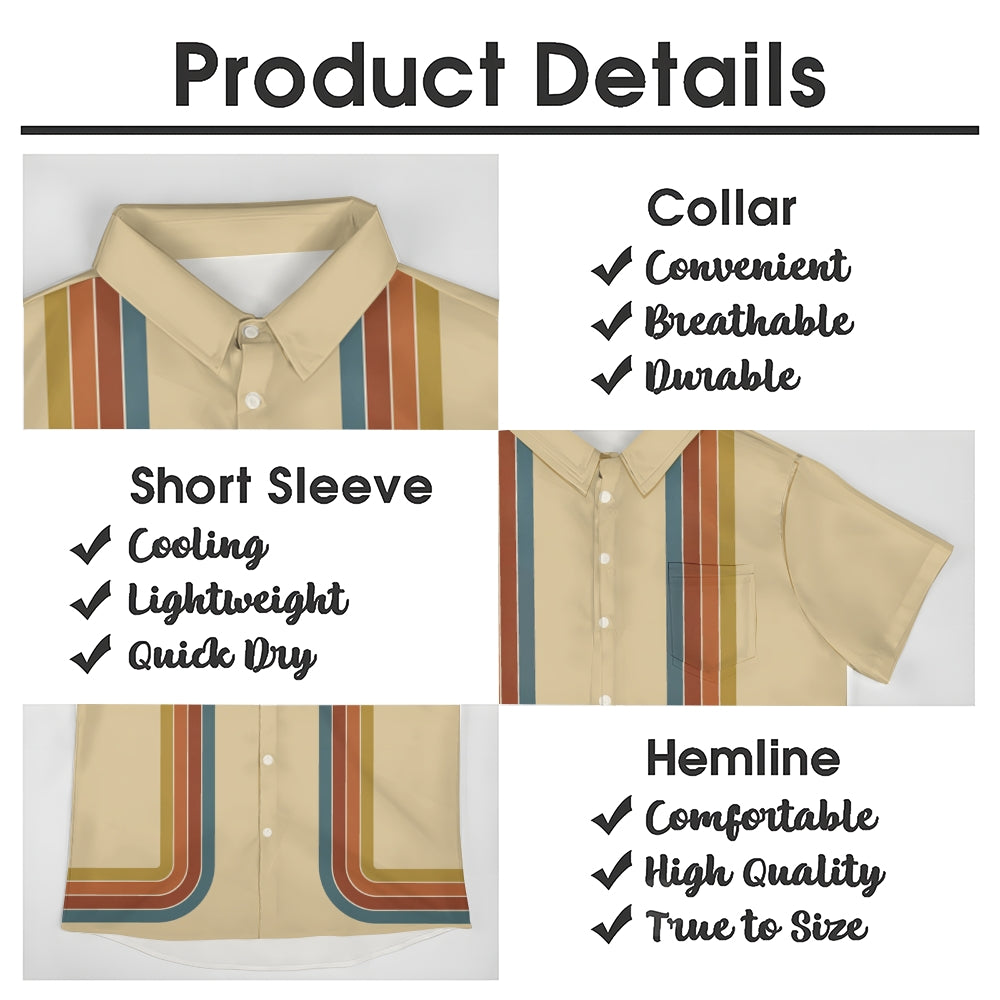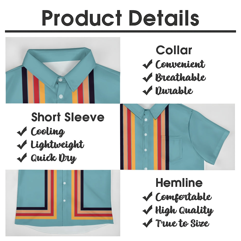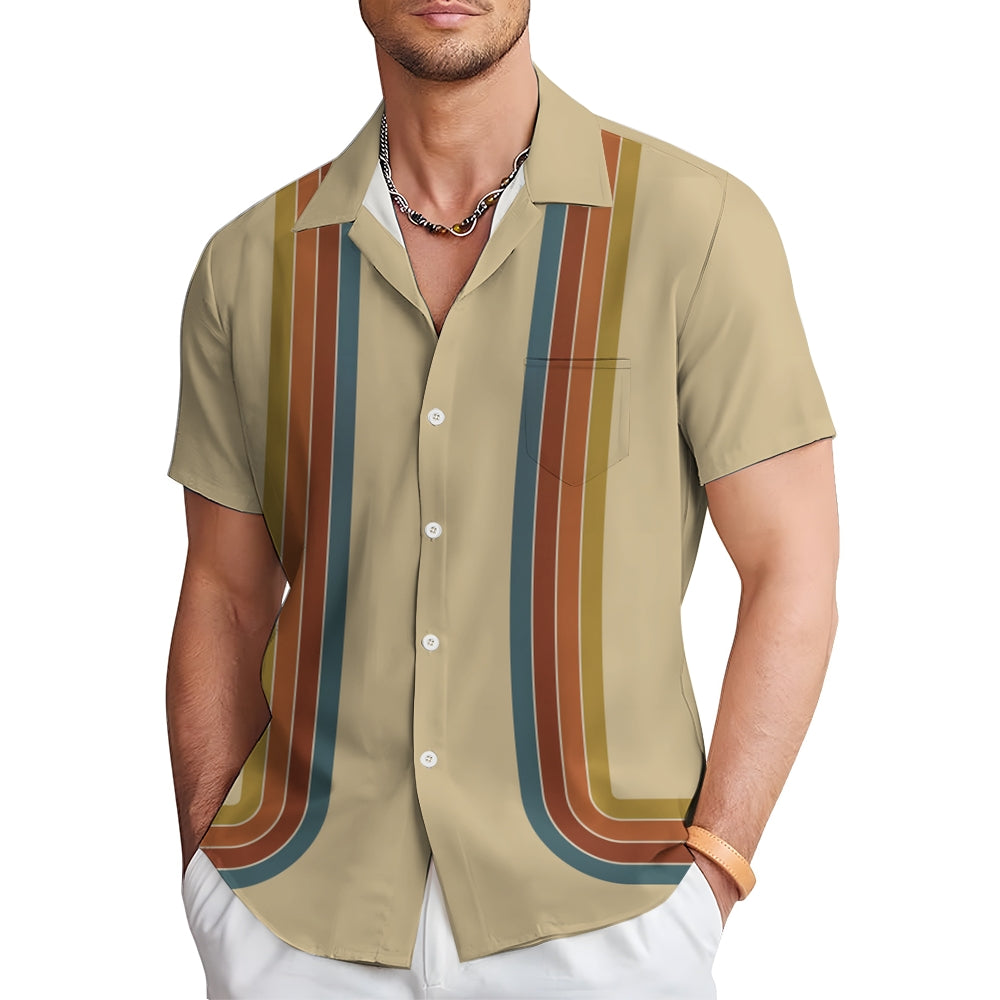 Men's Casual Striped Print Short Sleeve Shirt 2405002152
