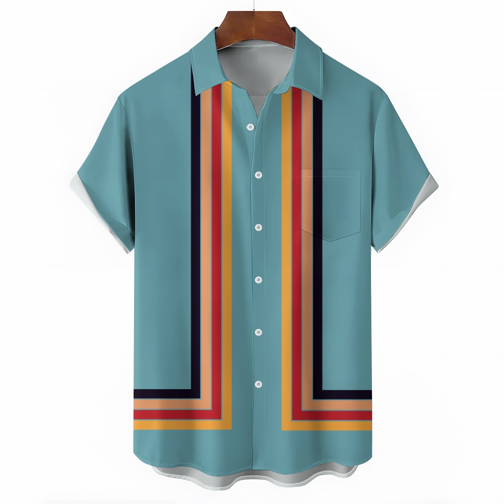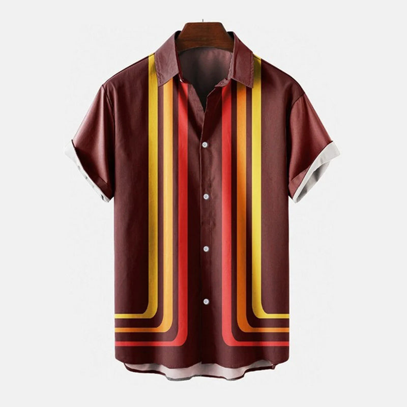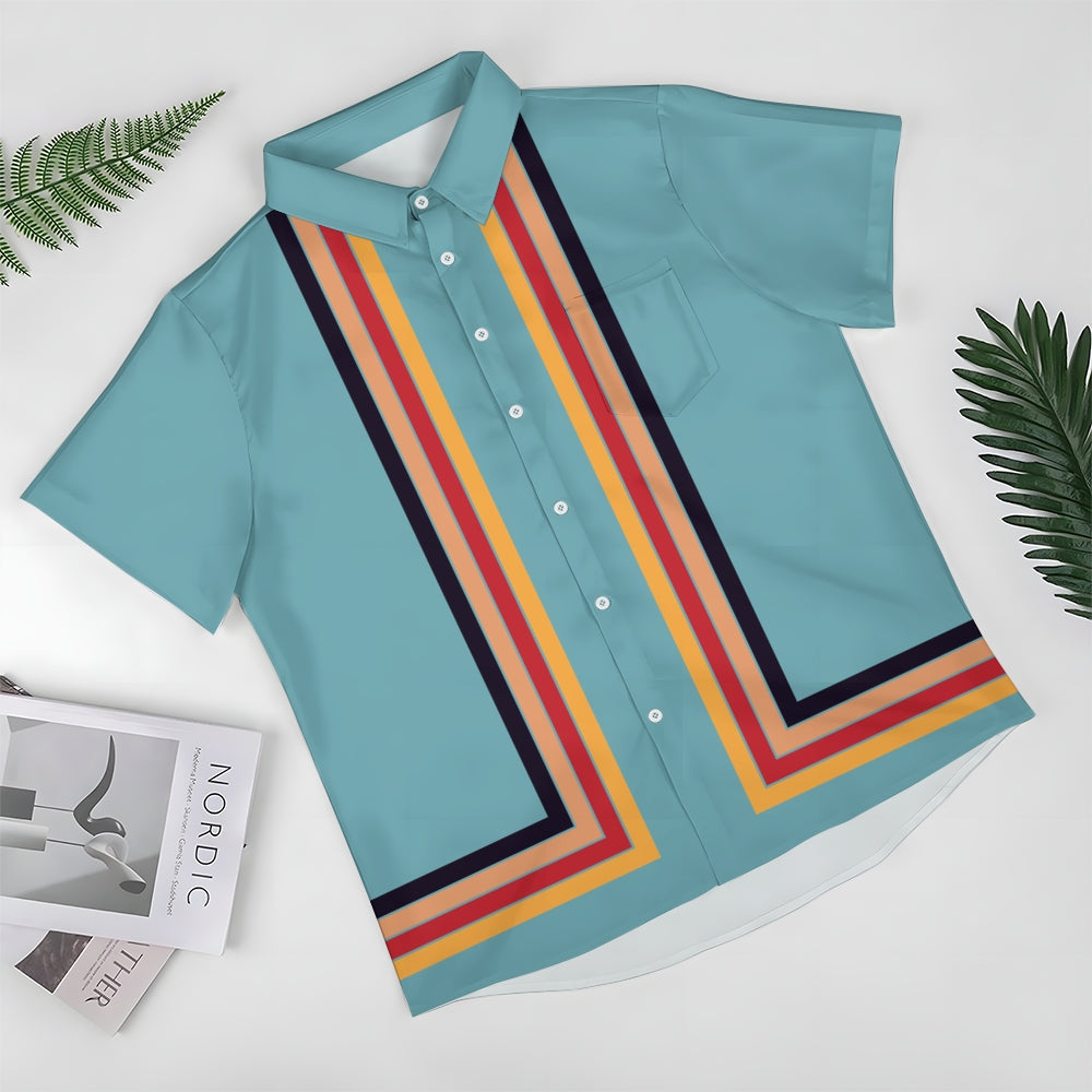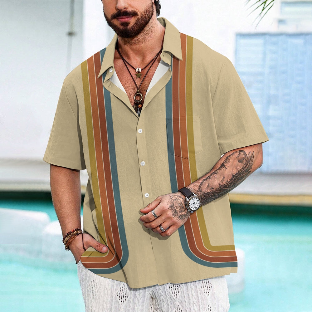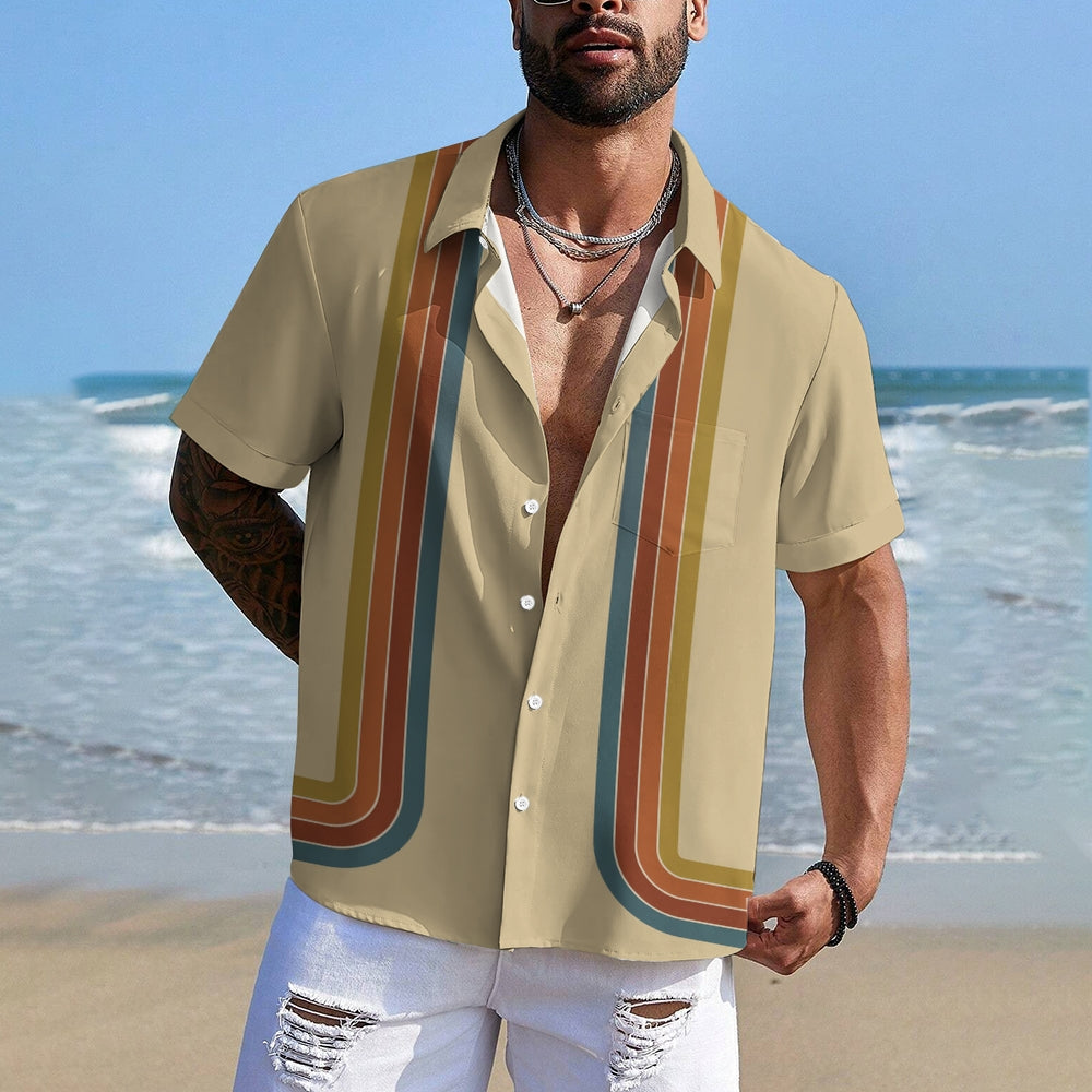 Men's Casual Striped Print Short Sleeve Shirt 2405002152