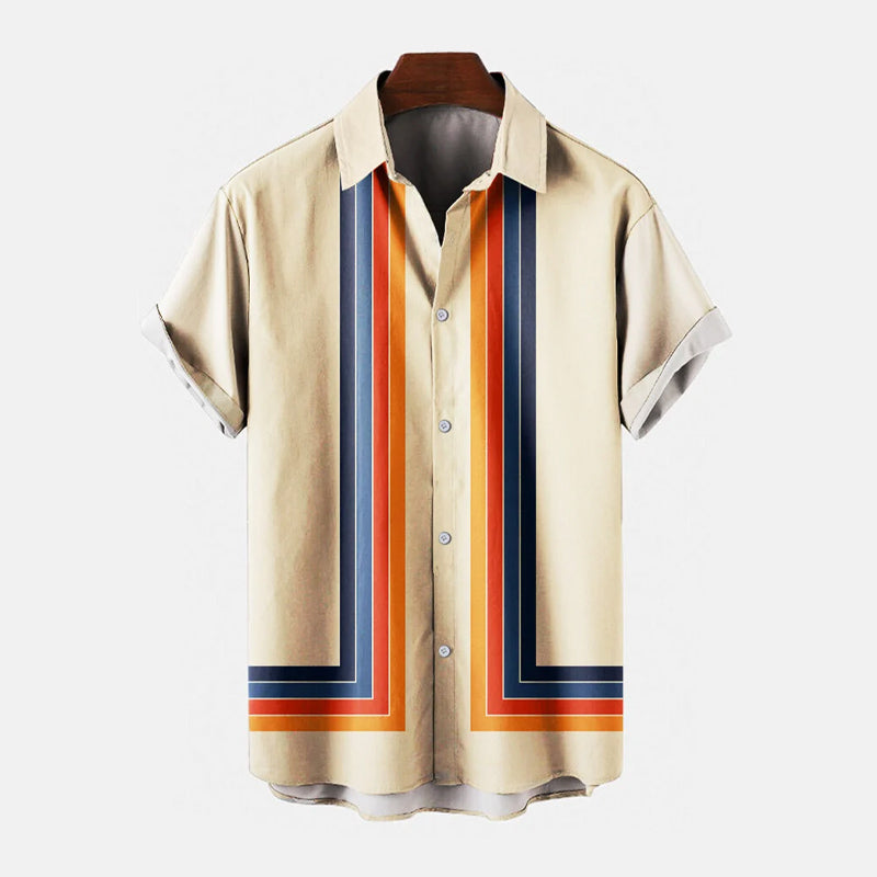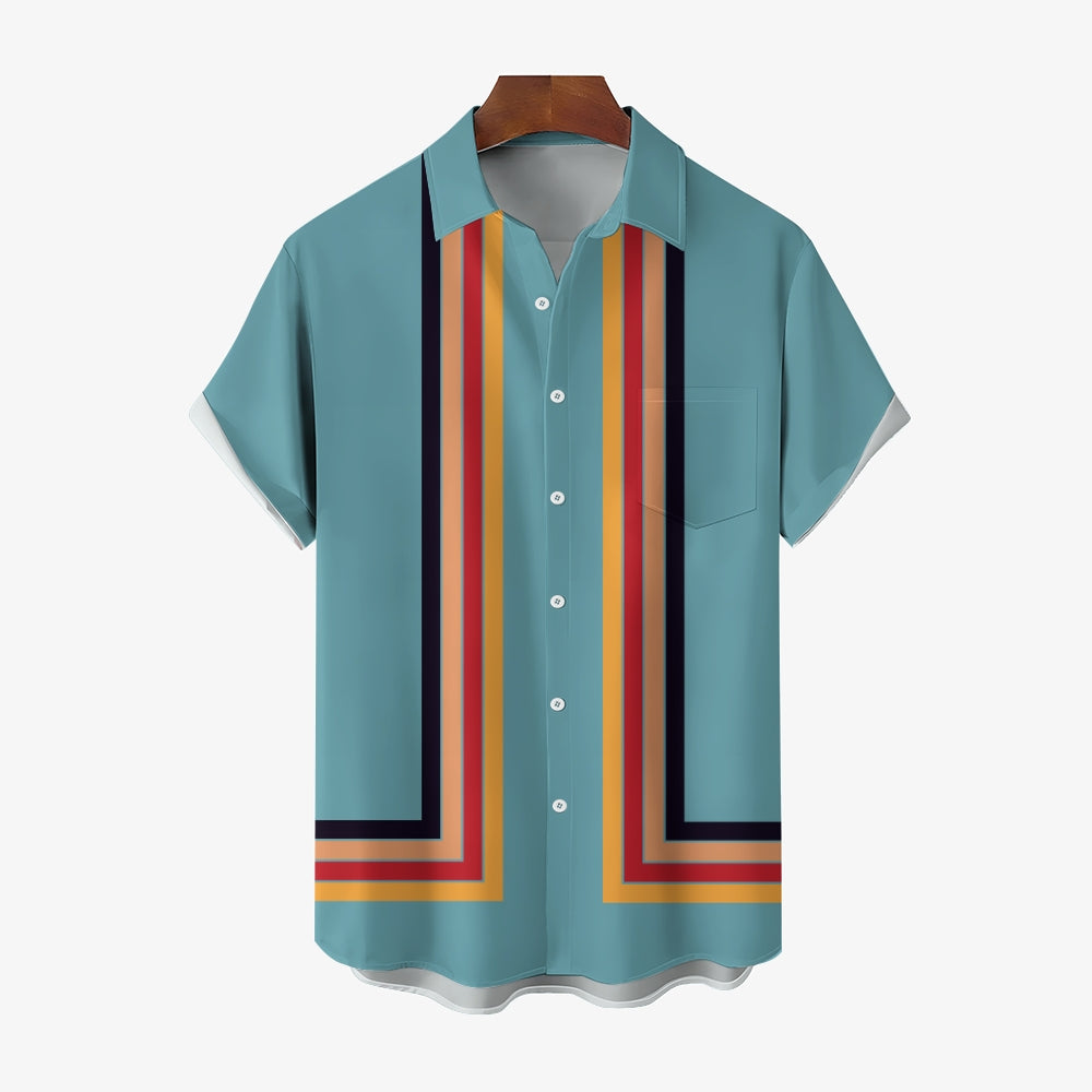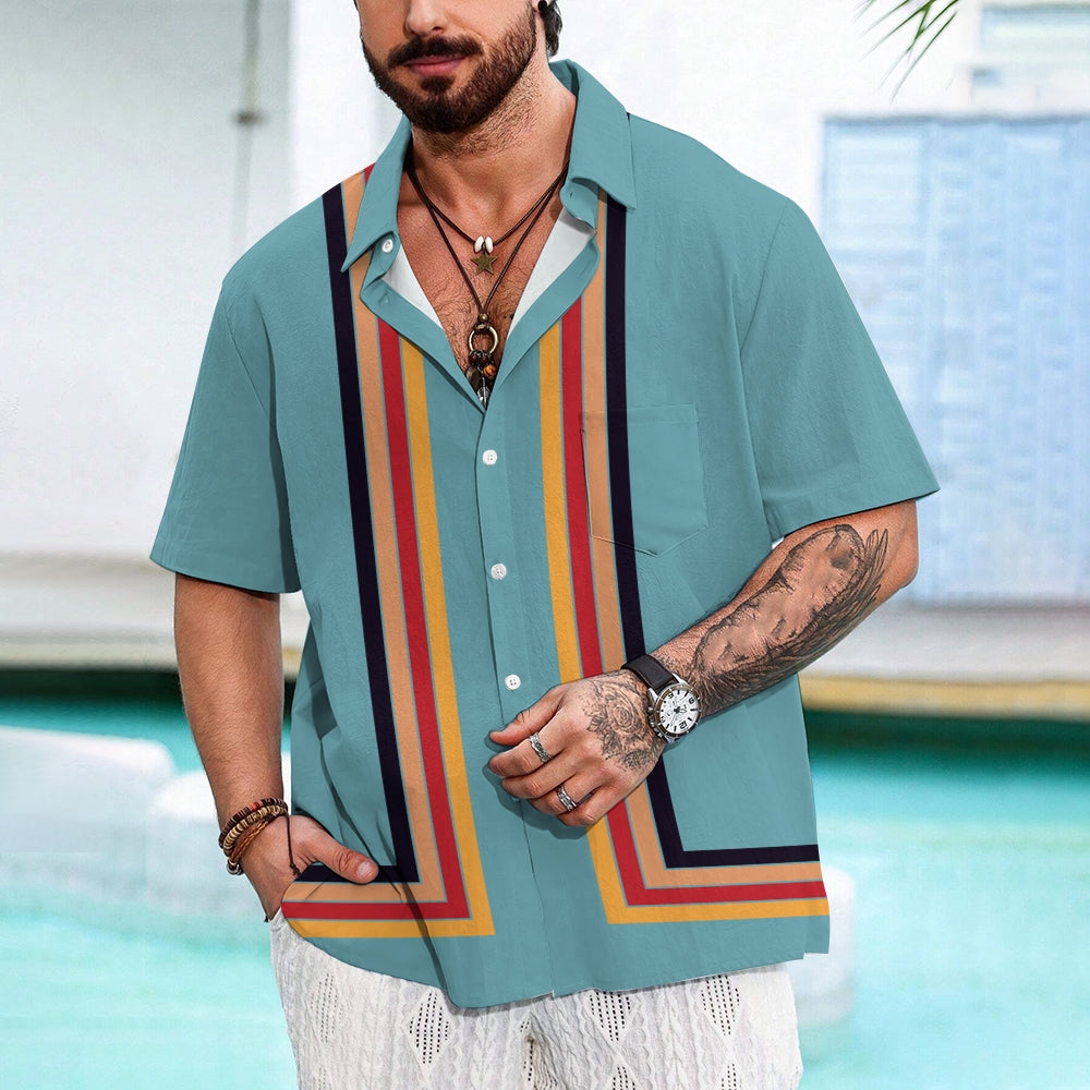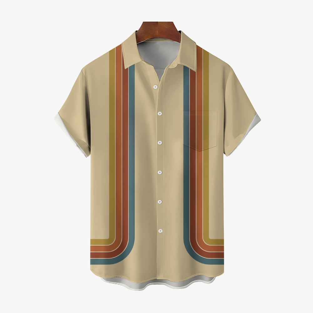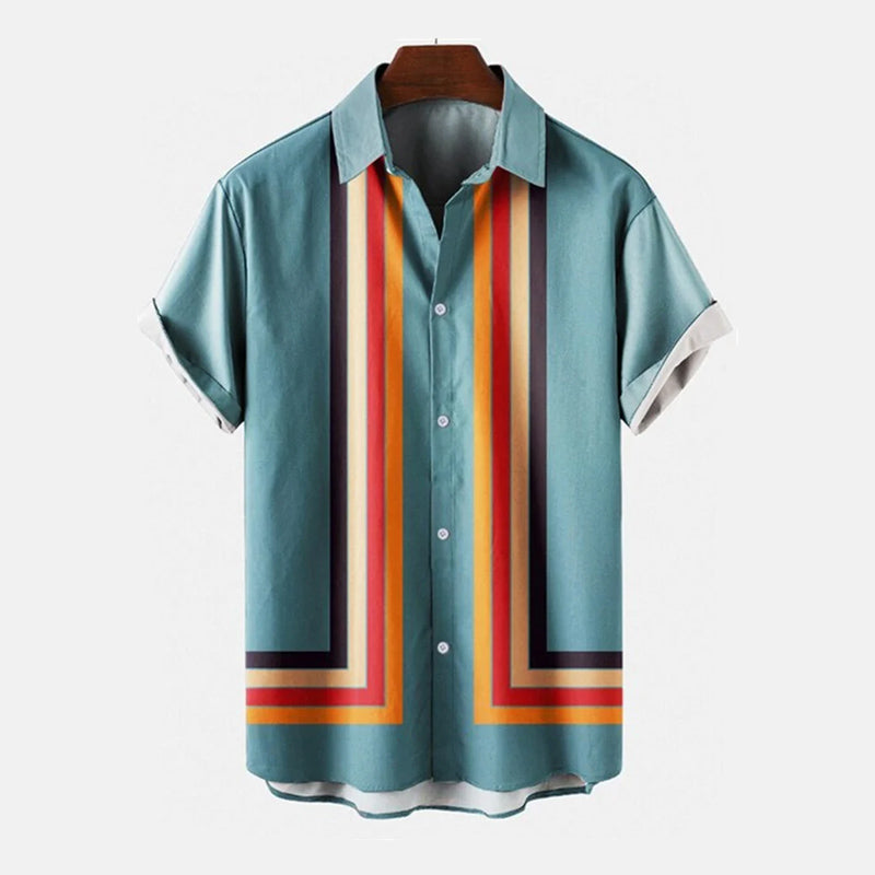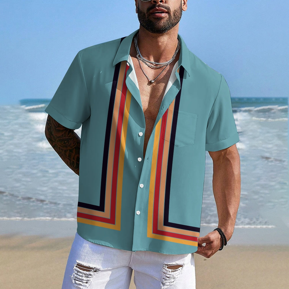 Men's Casual Striped Print Short Sleeve Shirt 2405002152