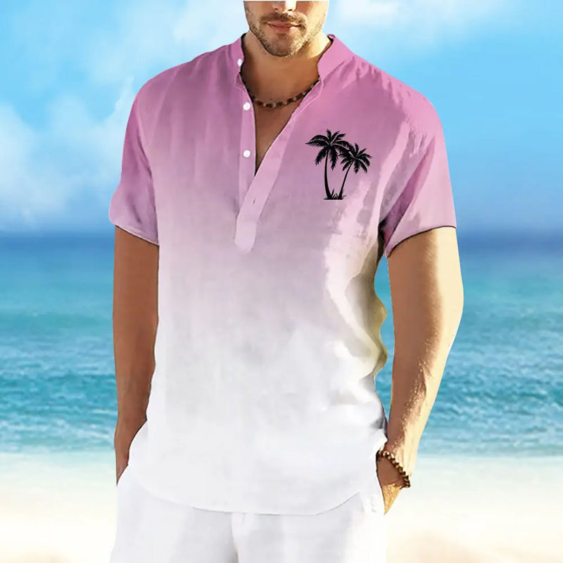 Men's Gradient Coconut Tree Print Vacation Shirt