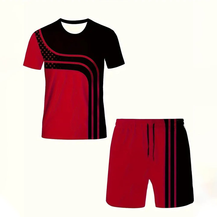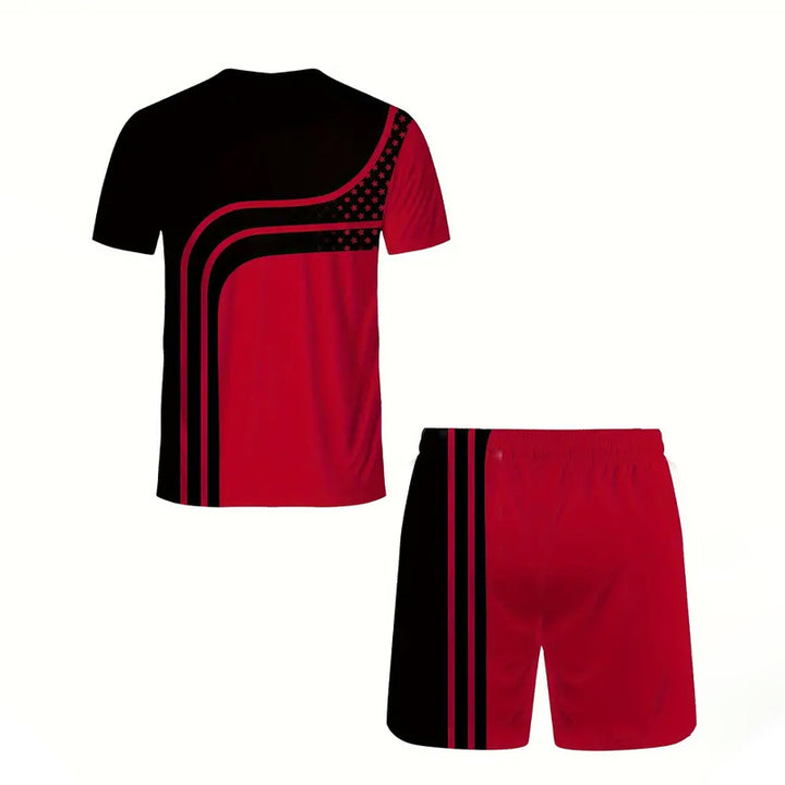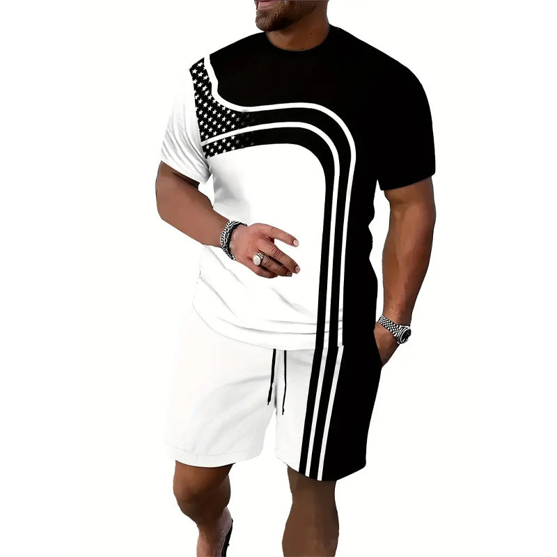 Men's Color Block Graphic Print T-shirt &Shorts 2-Piece Set 2412001873