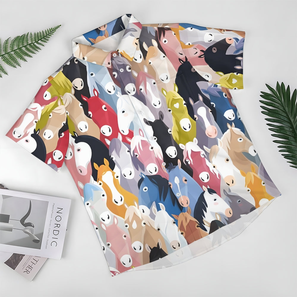 Men's Colored Horse Casual Short Sleeve Shirt 2410006996