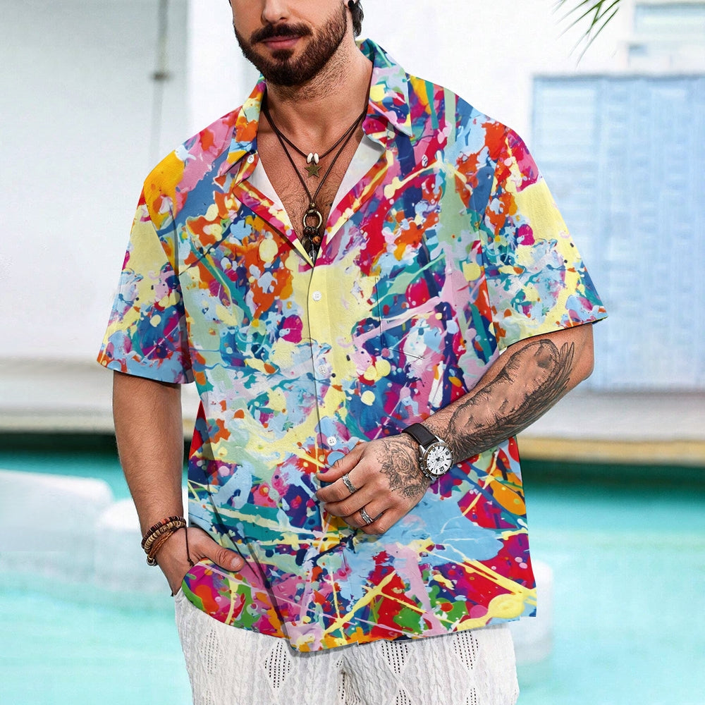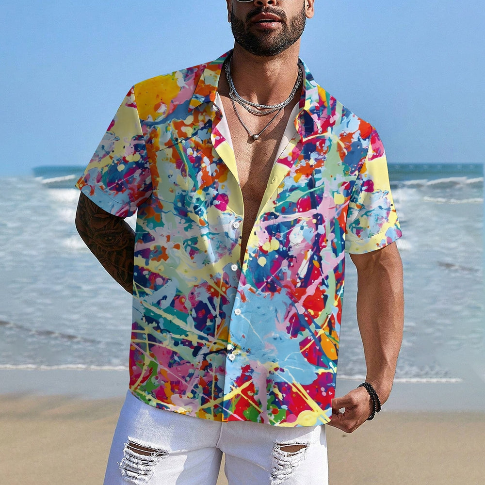 Men's Colorful Art Print Casual Short Sleeve Shirt 2404001897