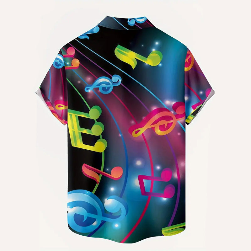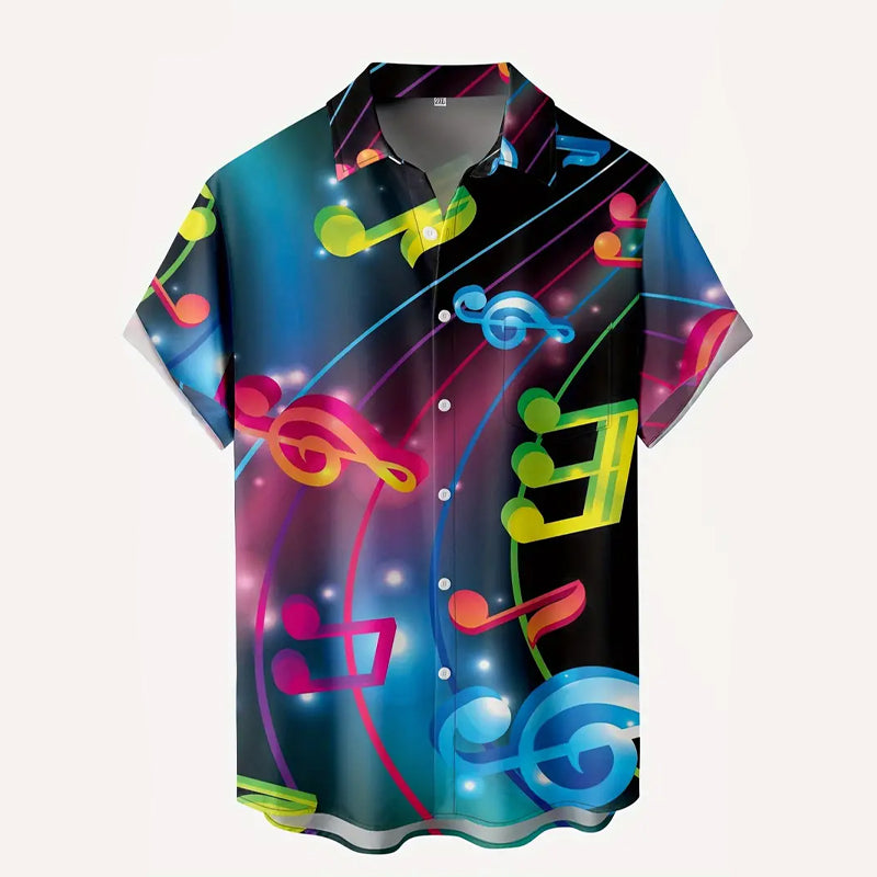 Men's colorful musical note print short-sleeved shirt