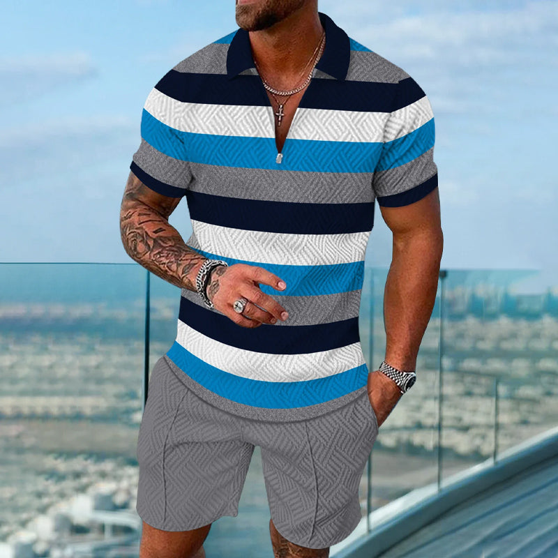 Design fashion: POLO beach shorts set, the top is designed with a zipper, which is easy to put on and take off, fits the body closely, creates a fashionable appearance, and is suitable for most people's body types.