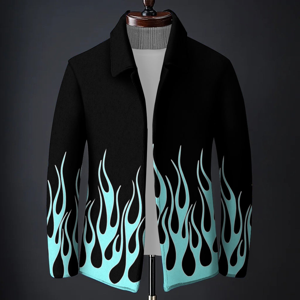 Men'S Flame Printed Long-Sleeved Woolen Coat 2409011464