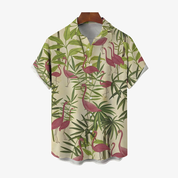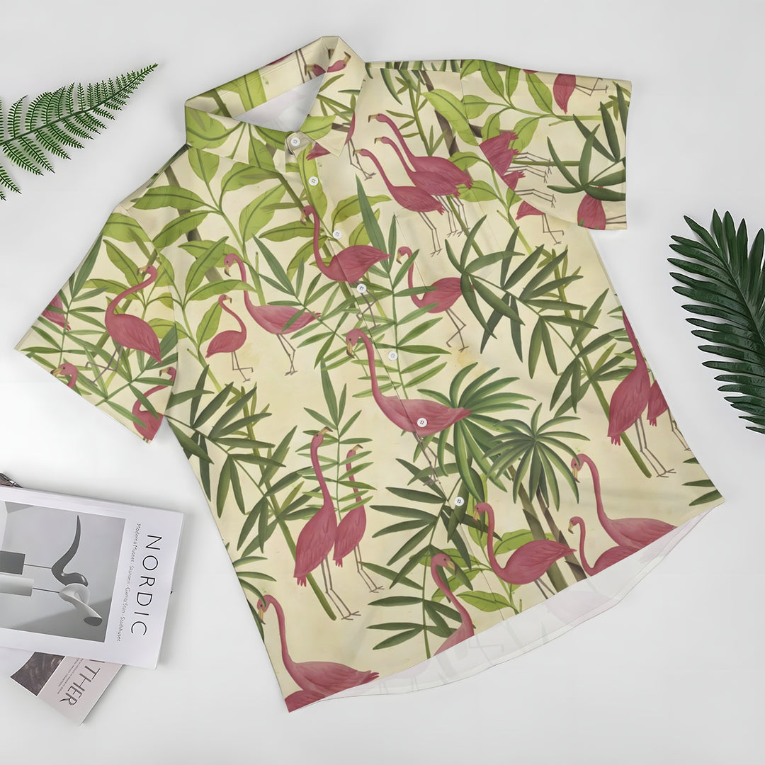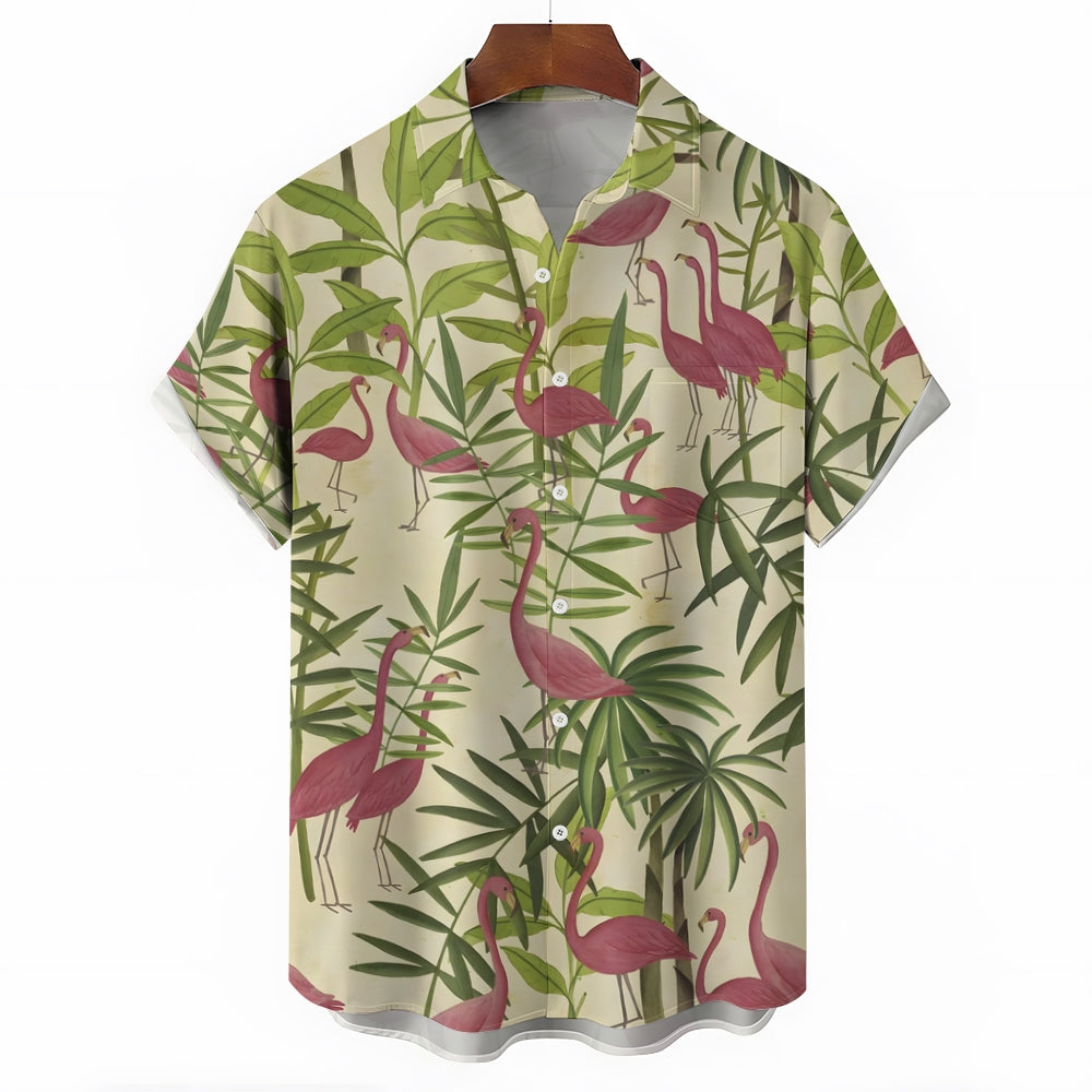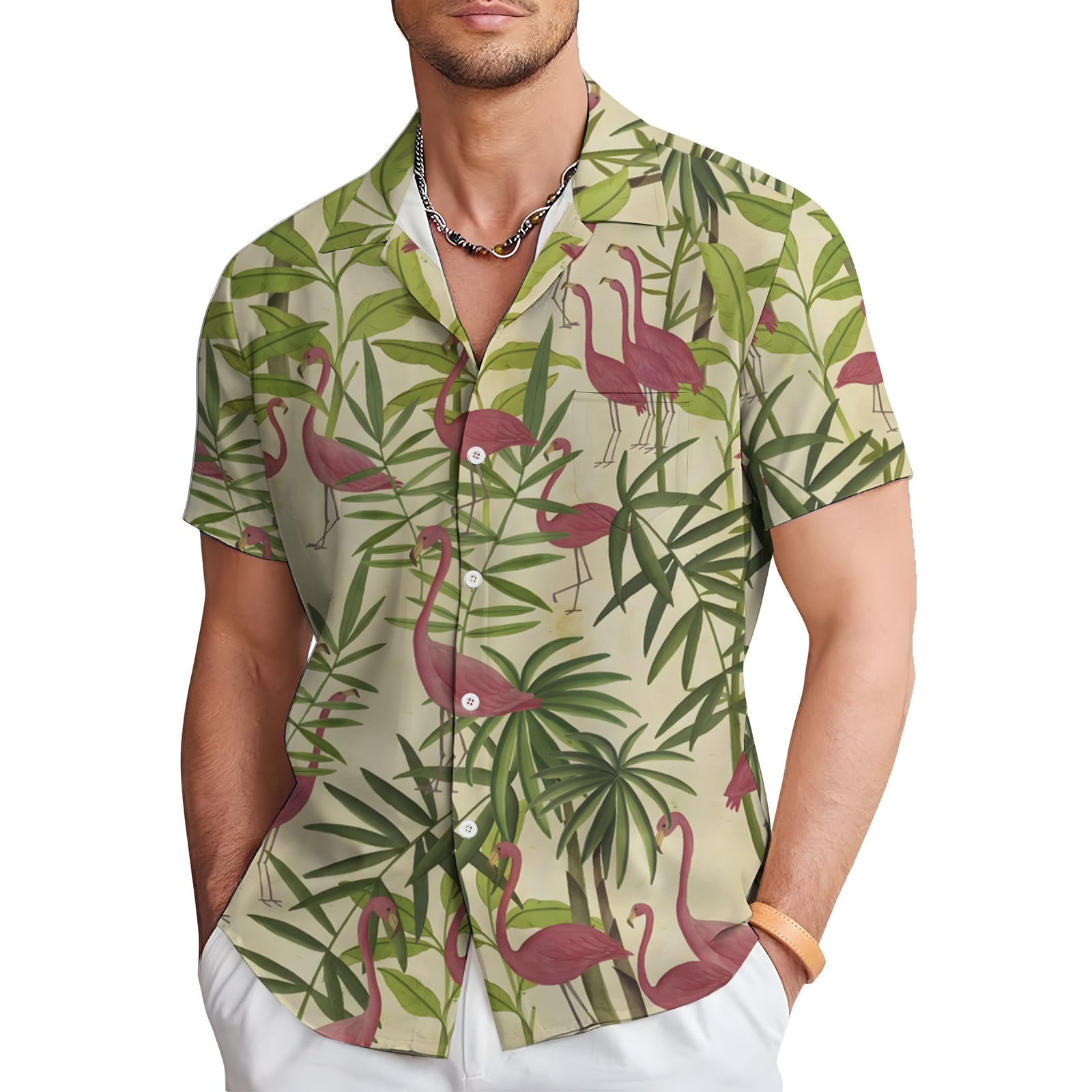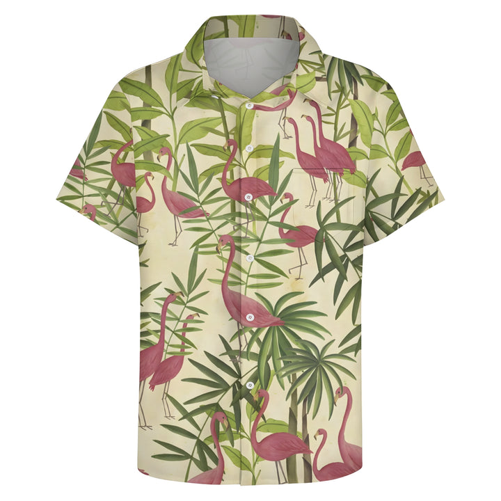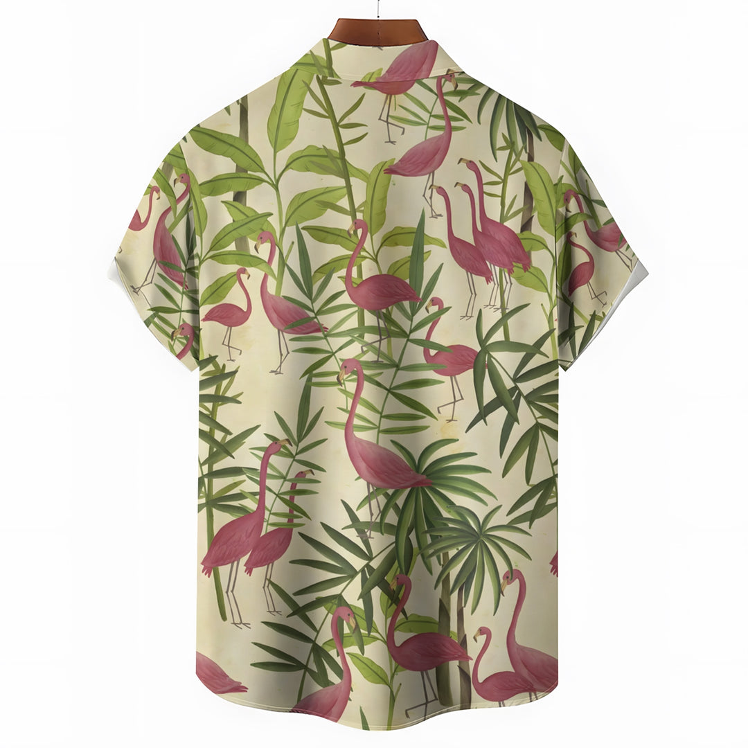 Men's Flamingo Print Casual Short Sleeve Shirt 2403000523
