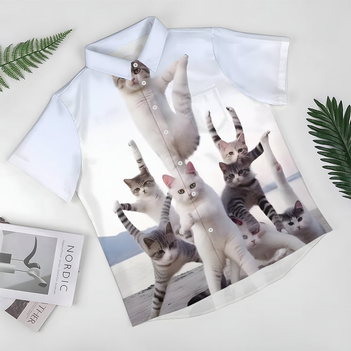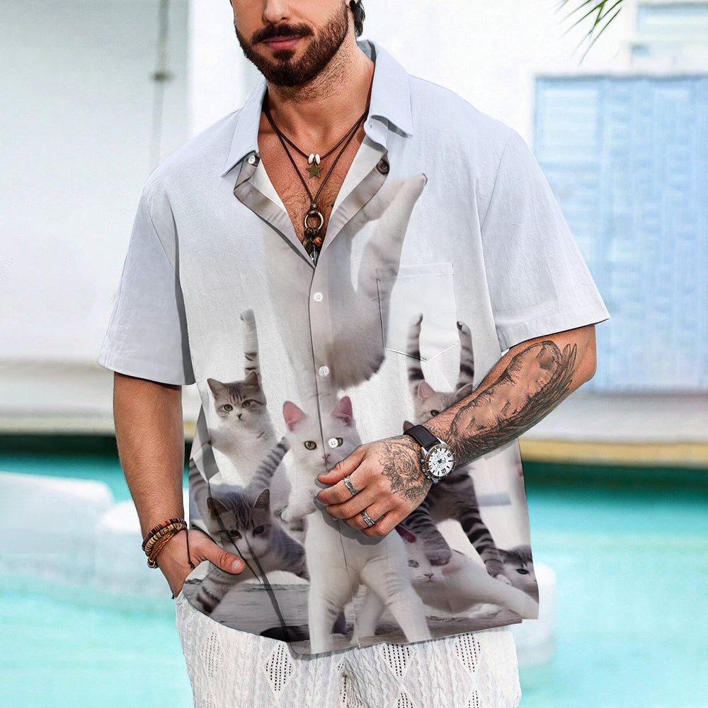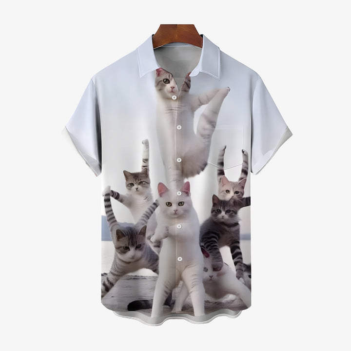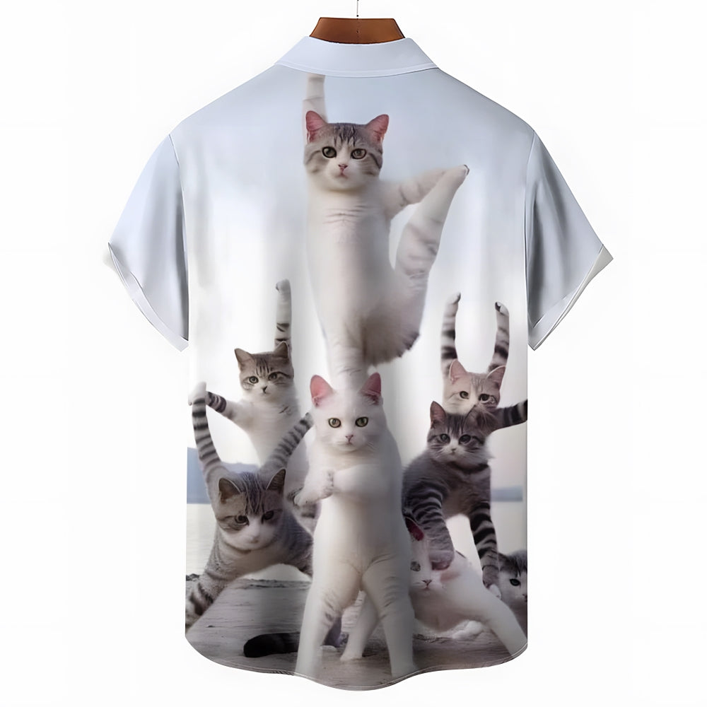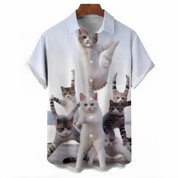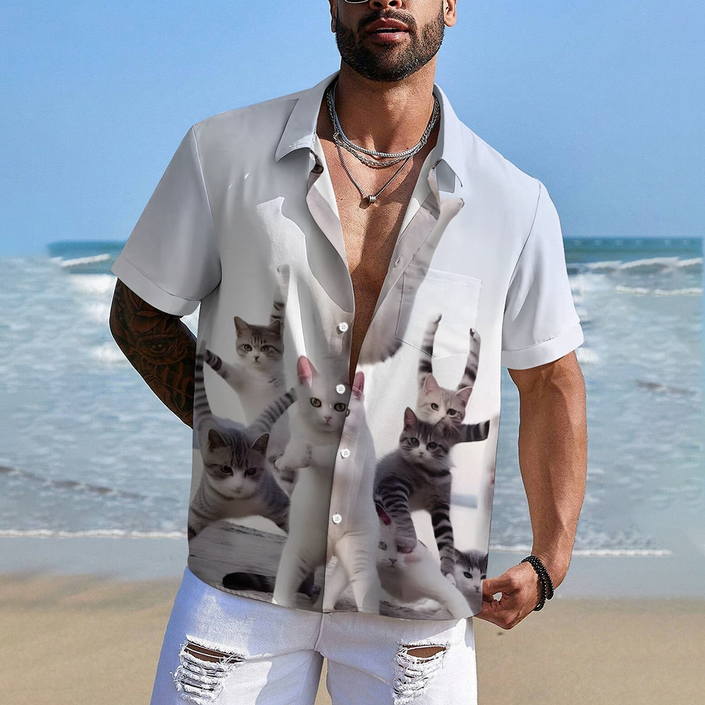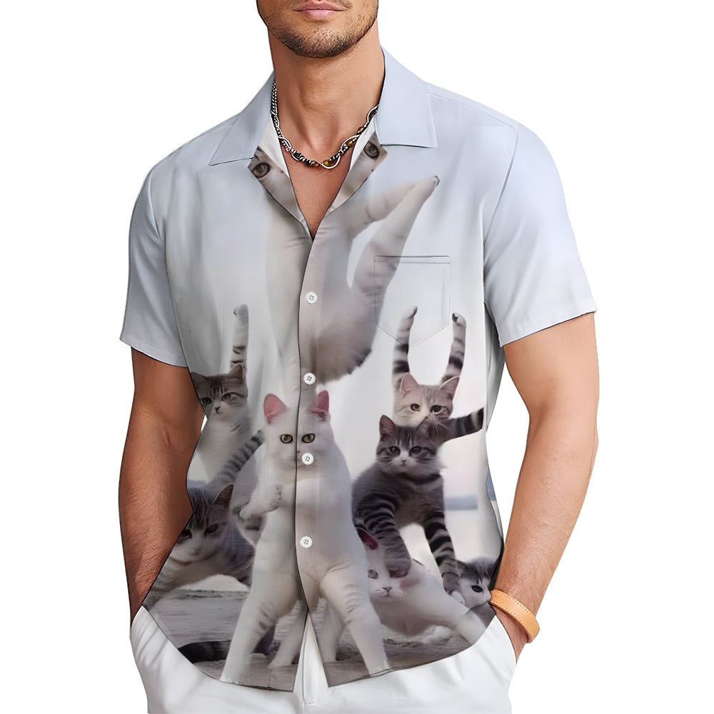 Men's Fun Cat Prints Casual Short Sleeve Shirt 2404000062