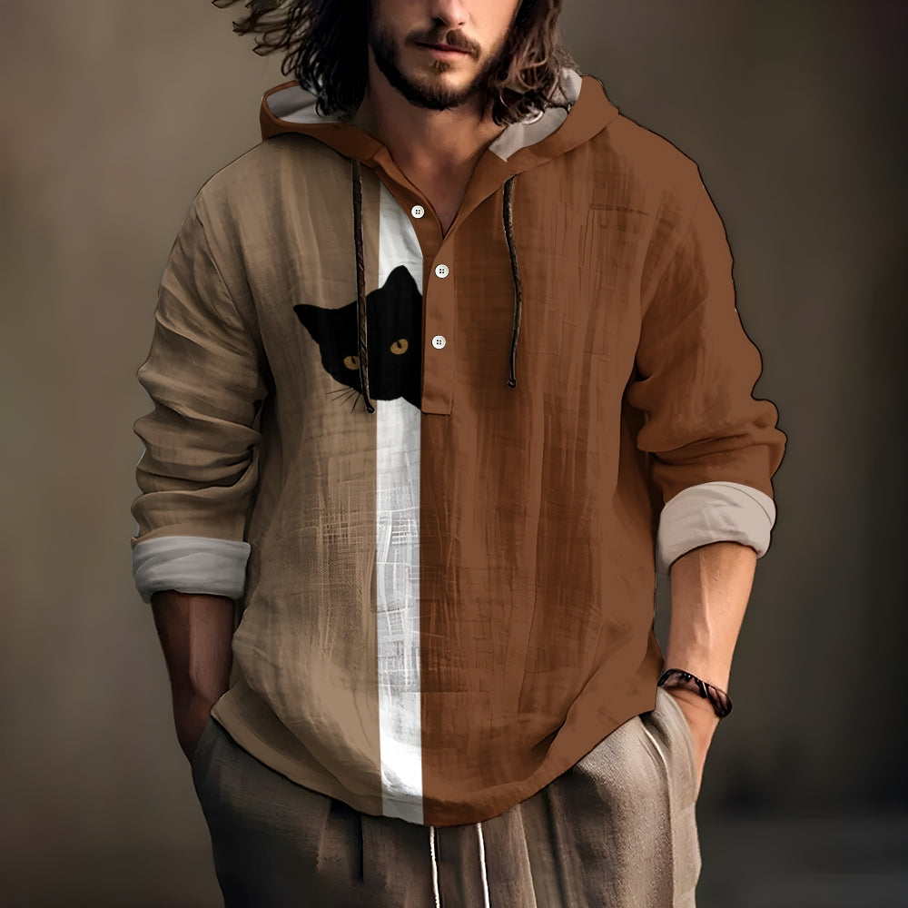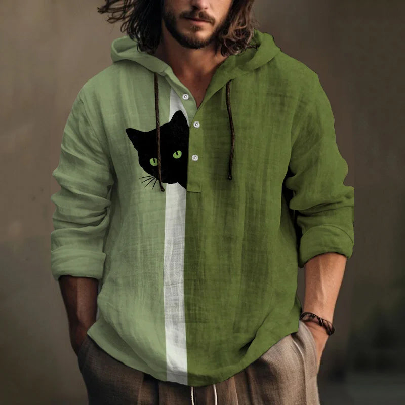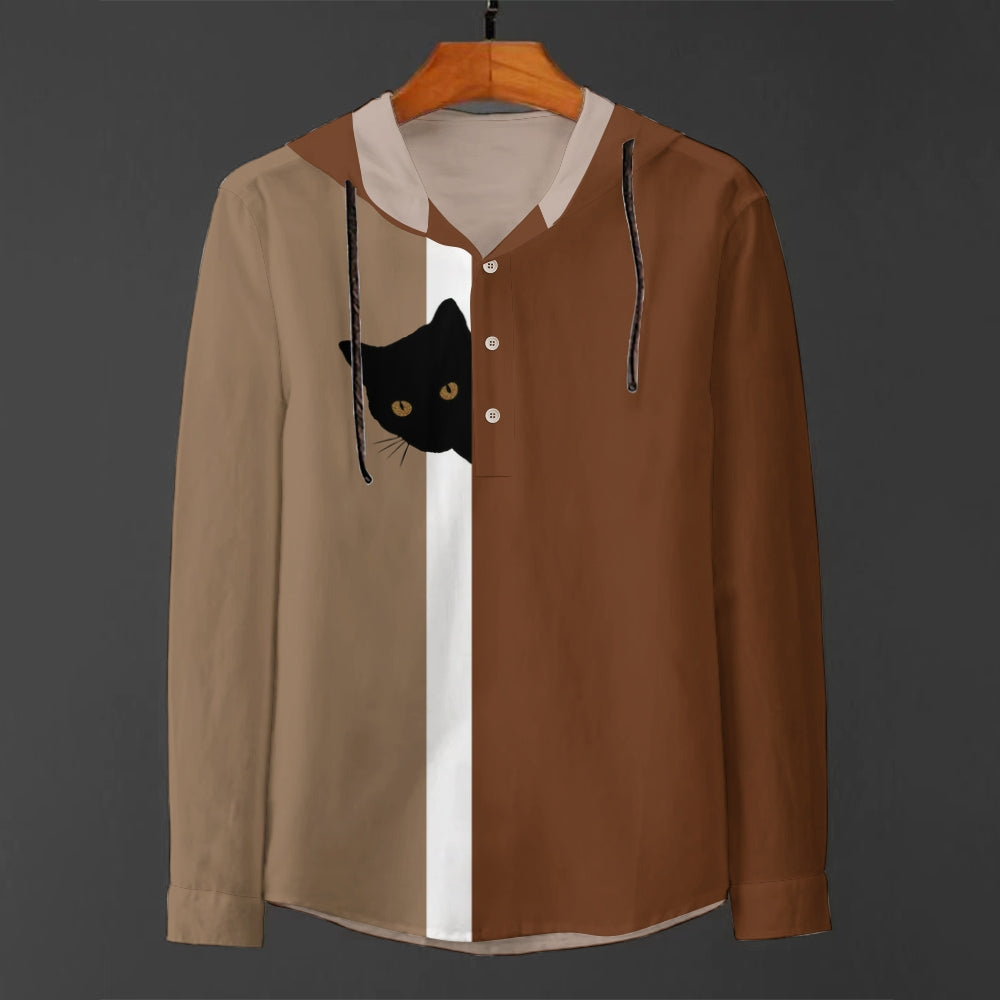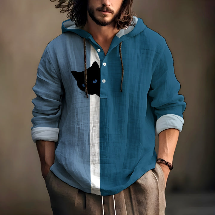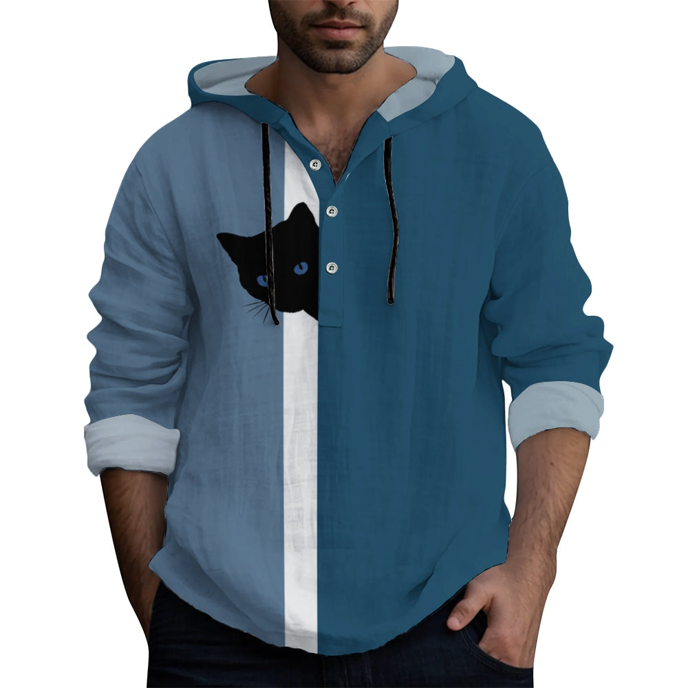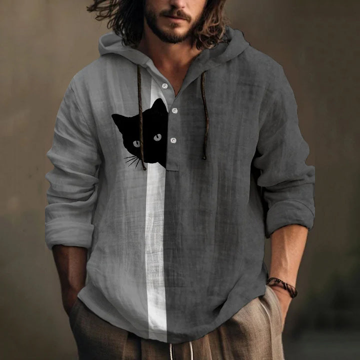 Men's Fun Hide And Seek Black Cat Print Hooded Shirt 2408001898