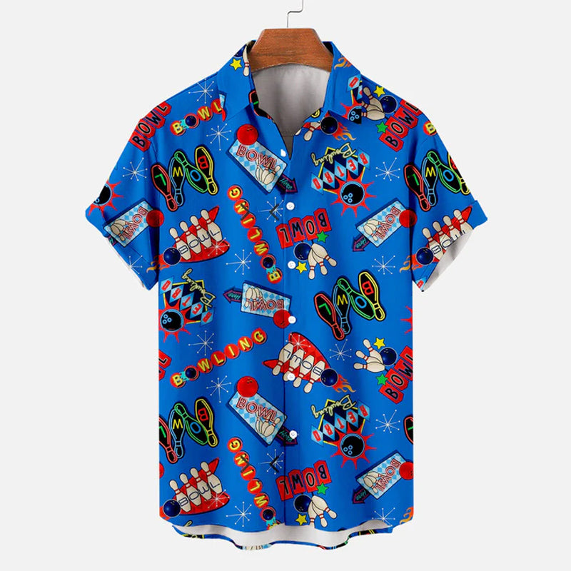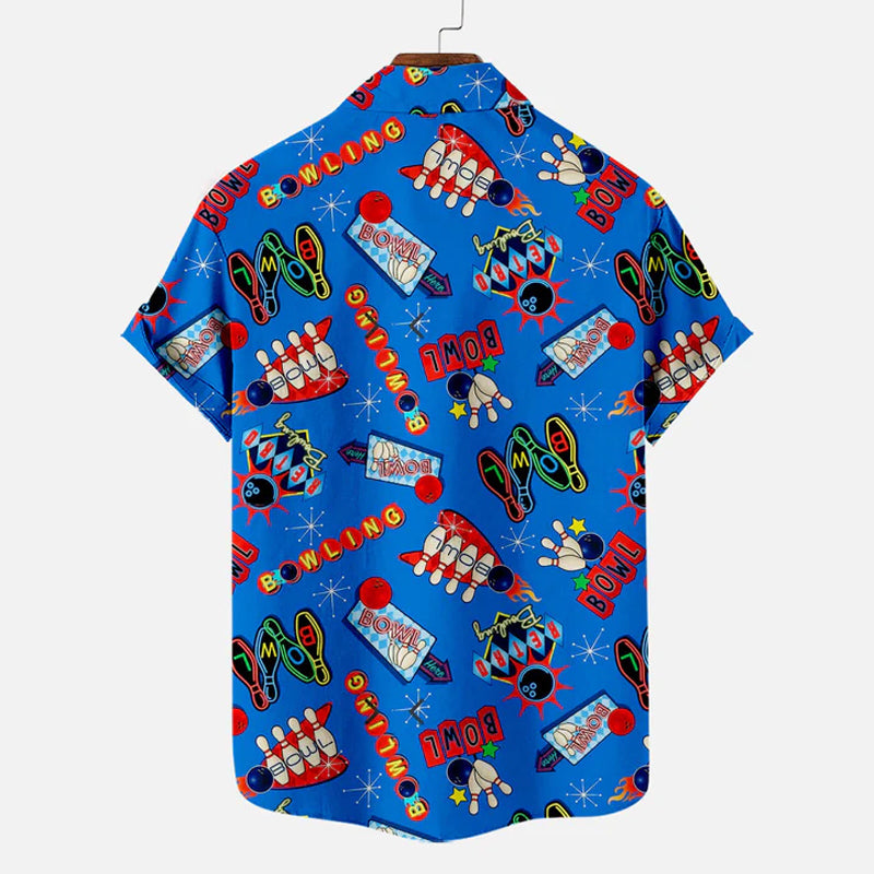 Men's Bowling Floral Printed Short Sleeve Shirt