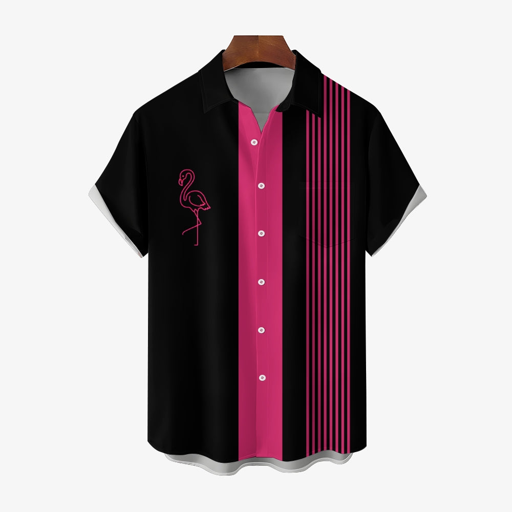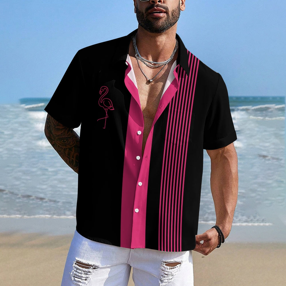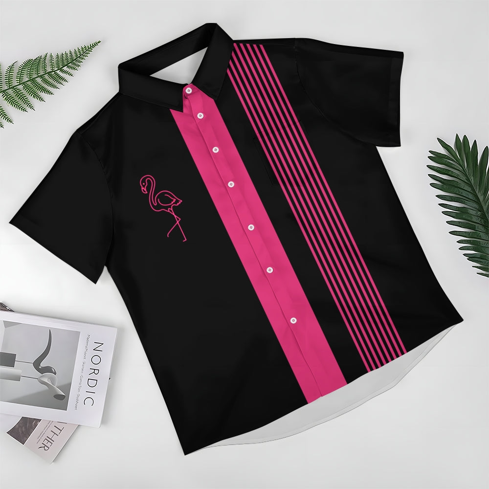 Men's Geometric Flamingo Stripe Print Casual Short Sleeve Shirt 2409010622