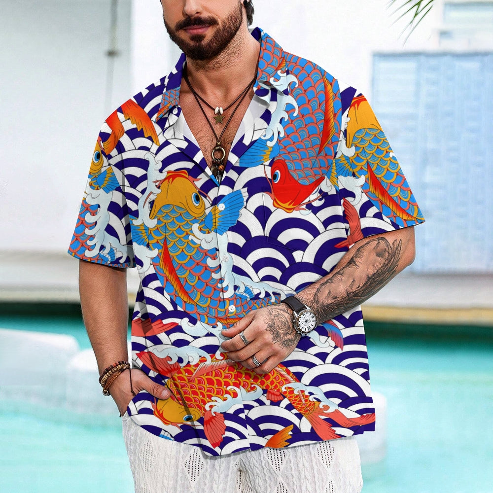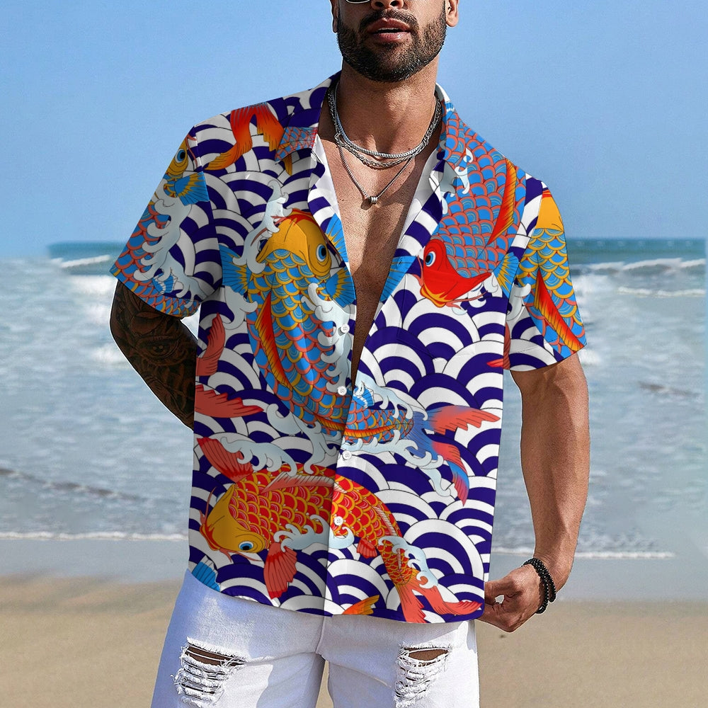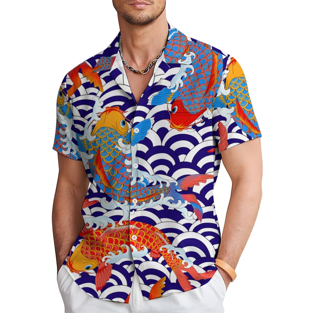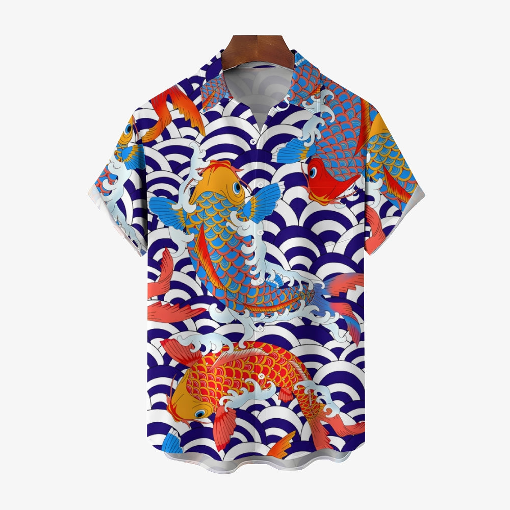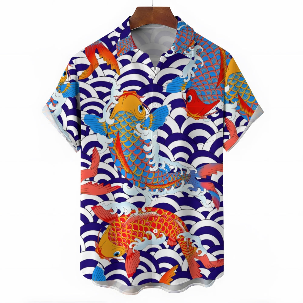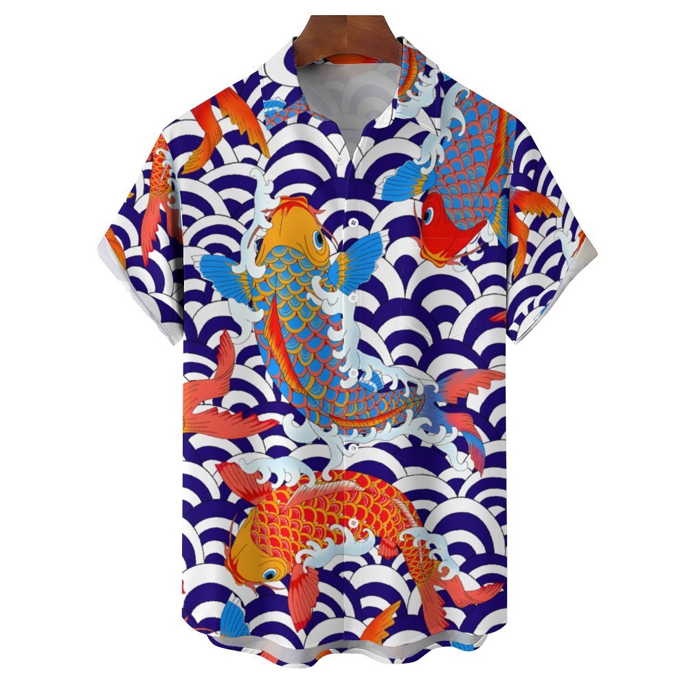 Men's Goldfish That Brings Good Luck Casual Short Sleeve Shirt 2401000131