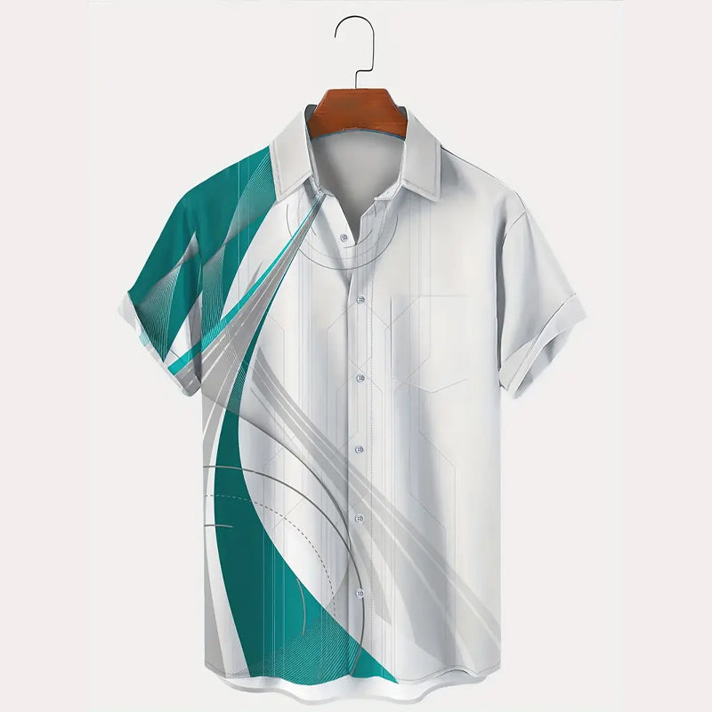 Men's Gradient Geometric Art Button-up Lapel Shirt 2409006899