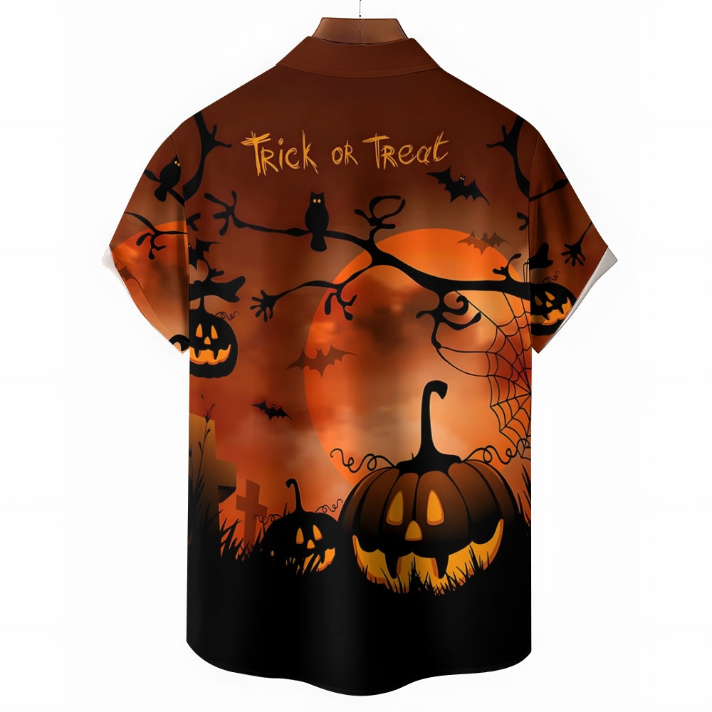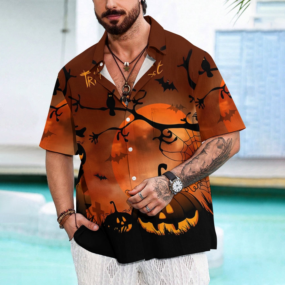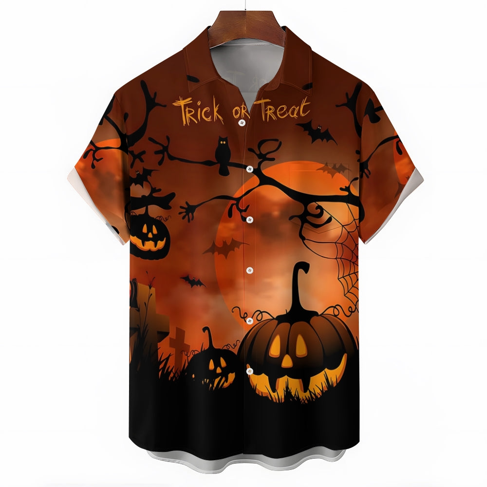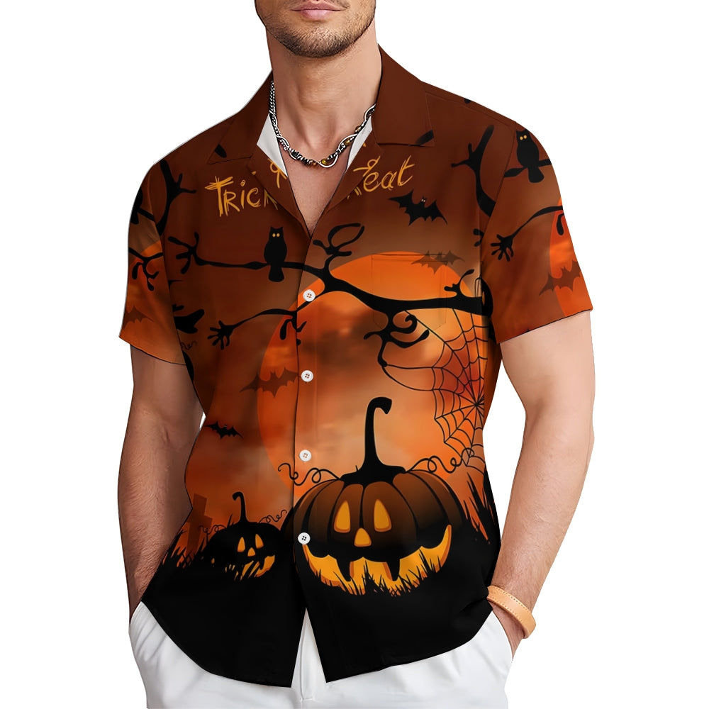 Mens Halloween Bats & Pumpkin Print Short Sleeve Shirt 2406000691