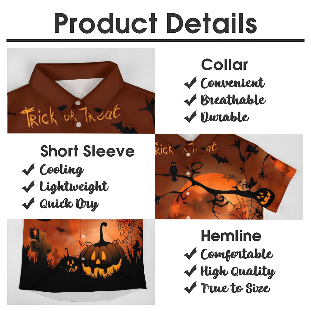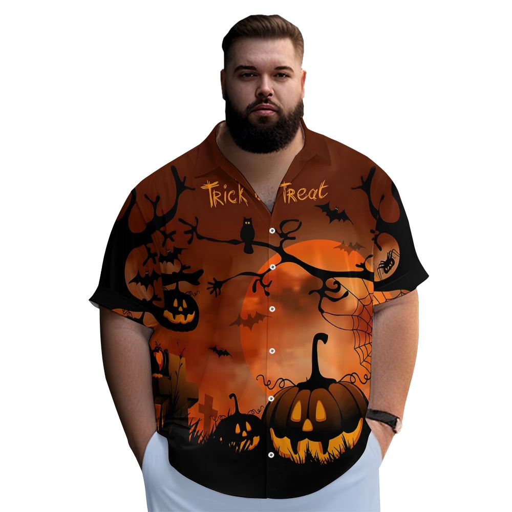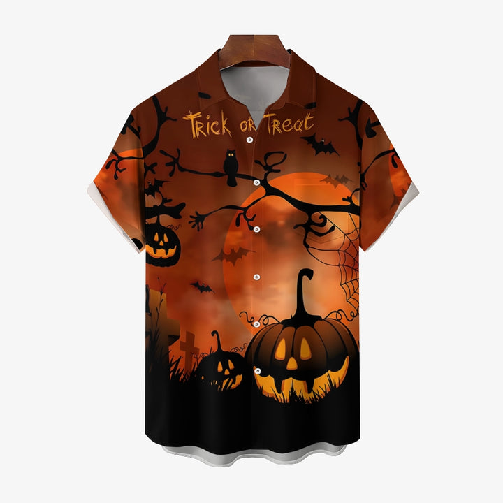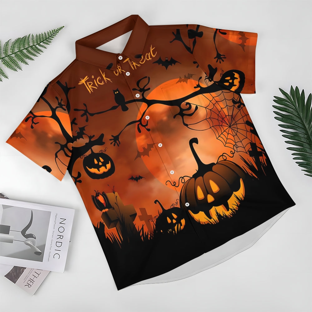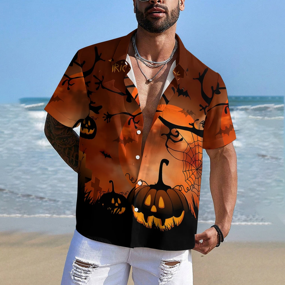 Mens Halloween Bats & Pumpkin Print Short Sleeve Shirt 2406000691