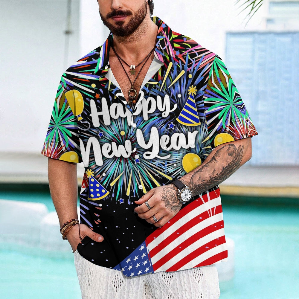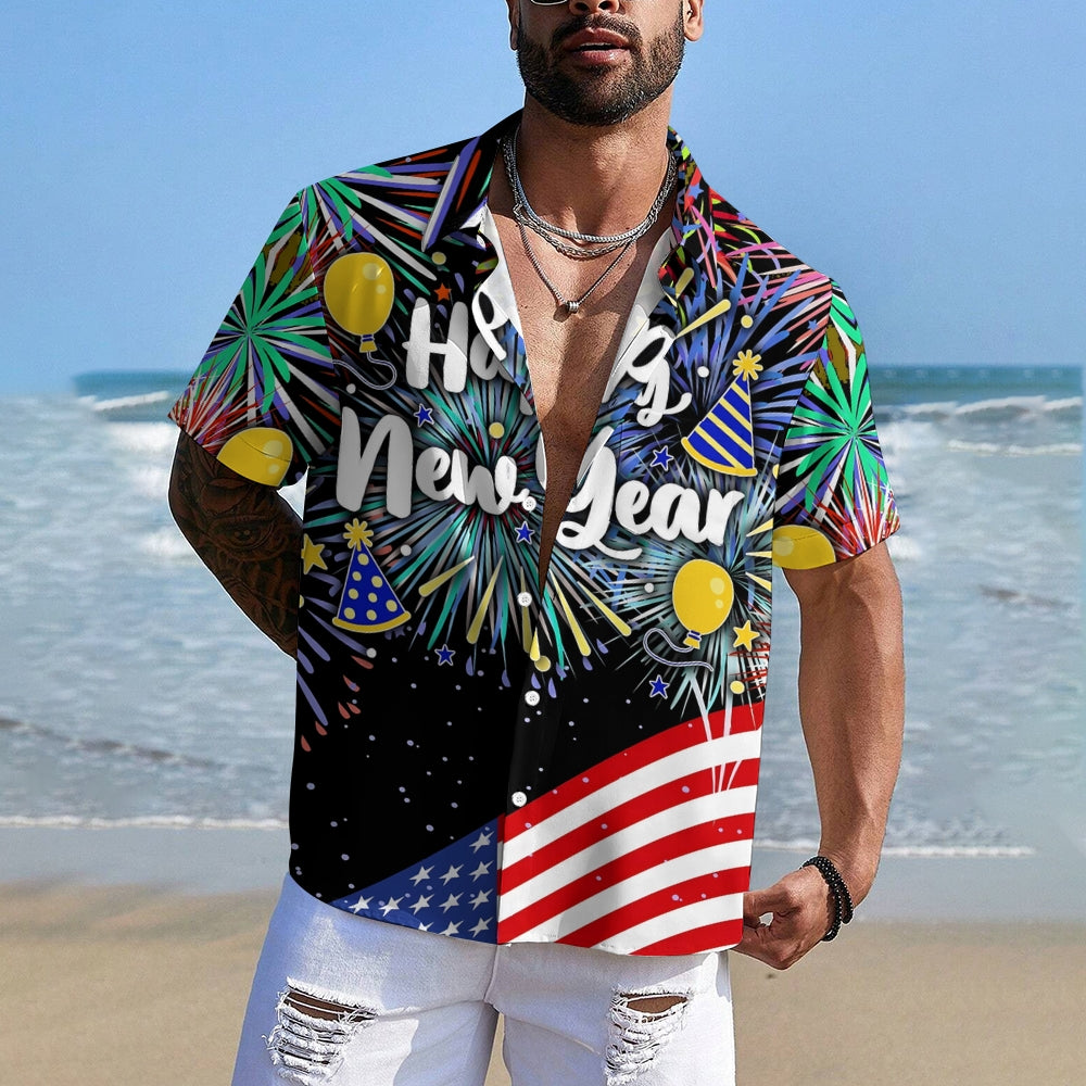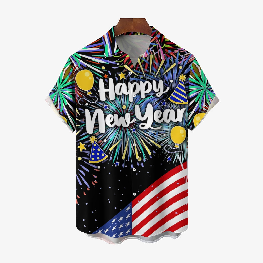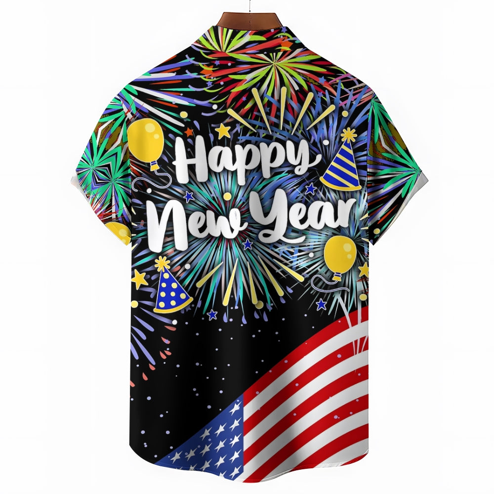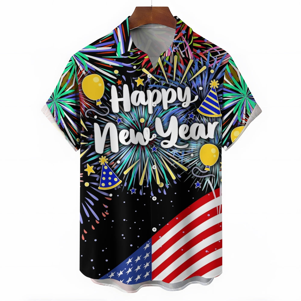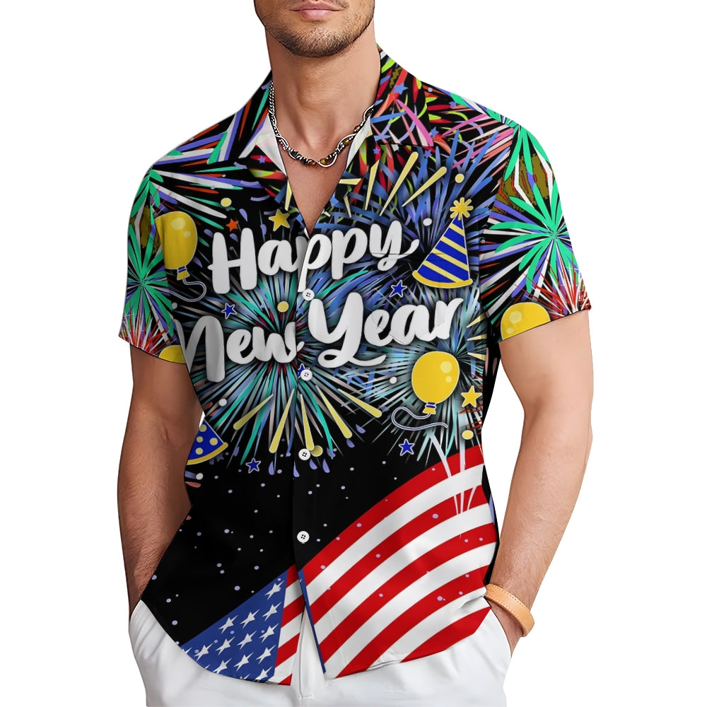 Men's Happy New Year Casual Short Sleeve Shirt 2311000650