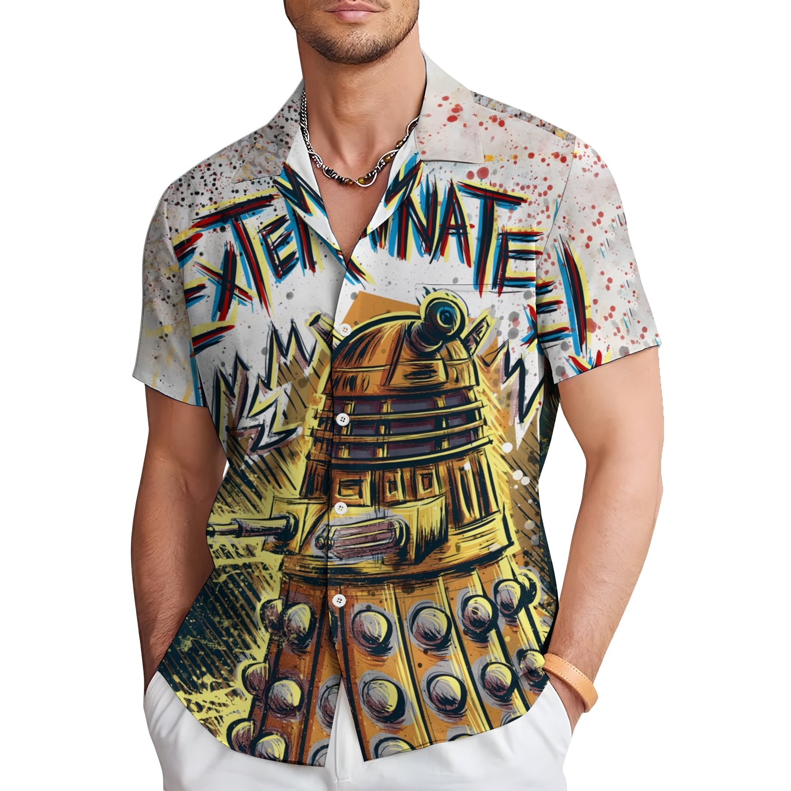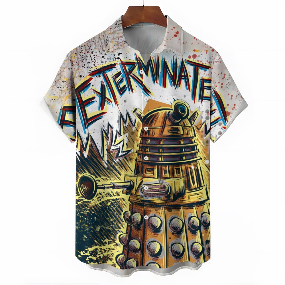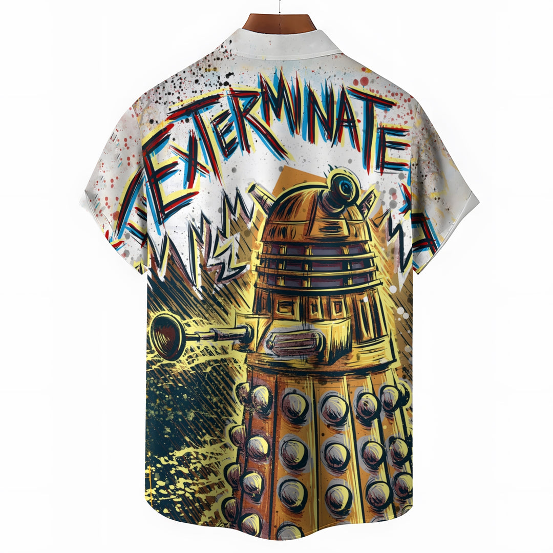 Sci-Fi Mysterious Forest Box Robots And Torches Printing Short Sleeve Shirt 2404001871