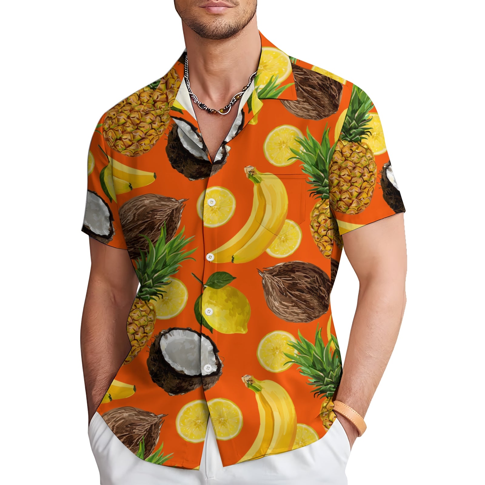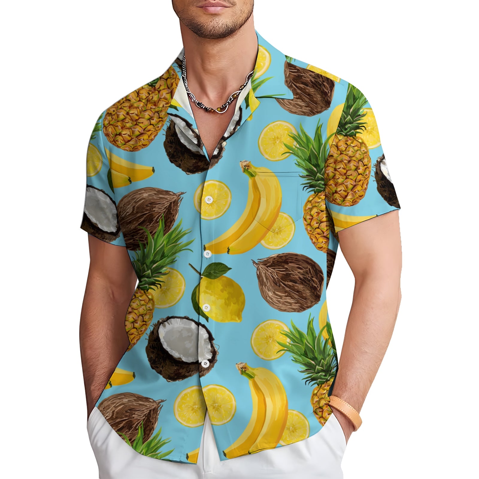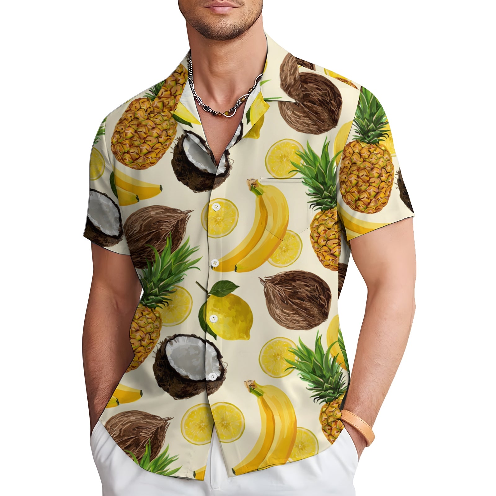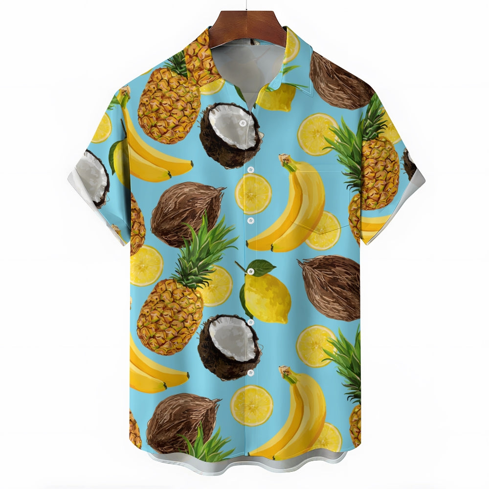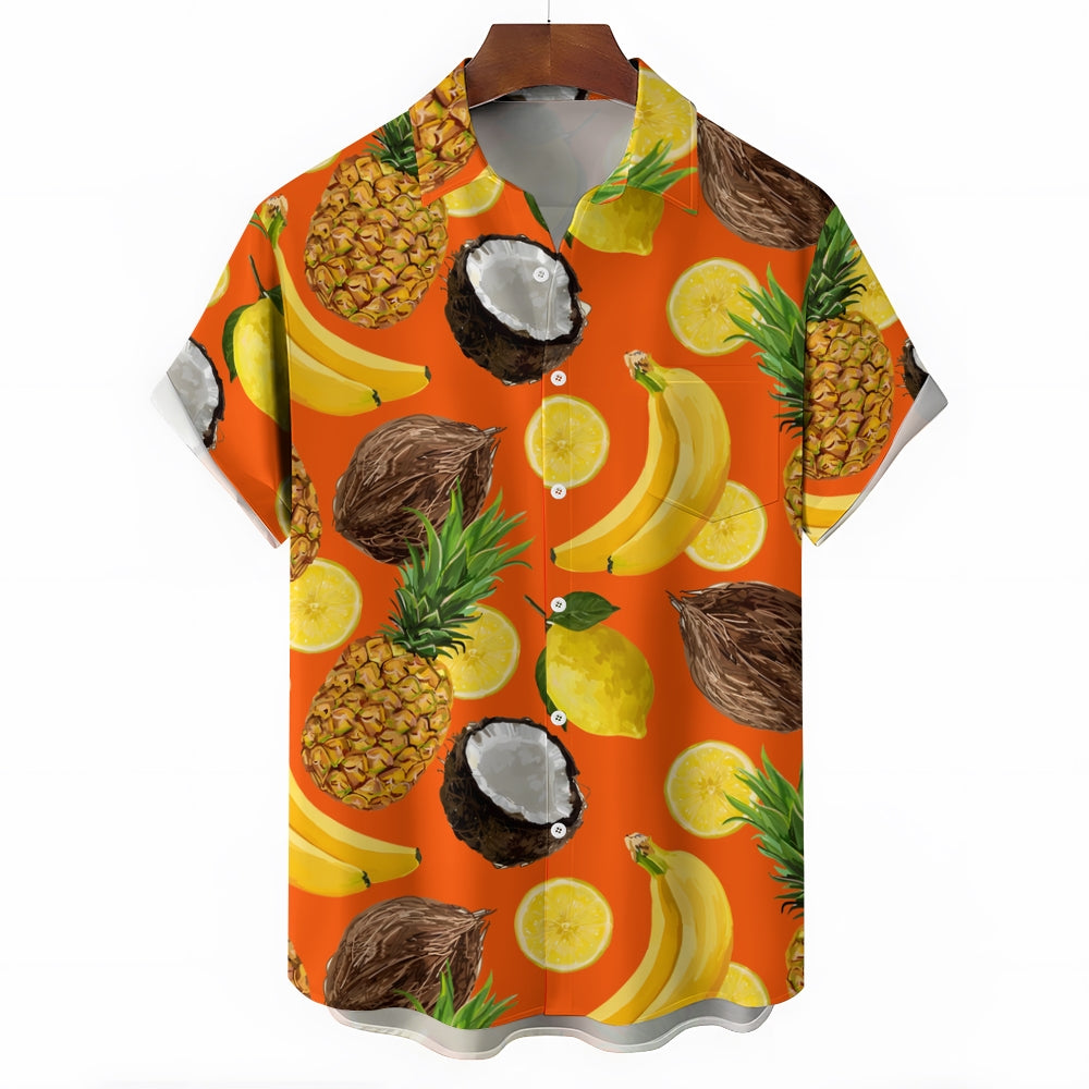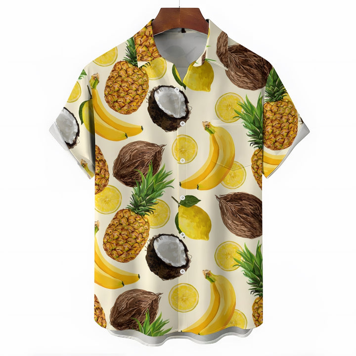 Men's Hawaiian Fruit Print Casual Short Sleeve Shirt 2403000909