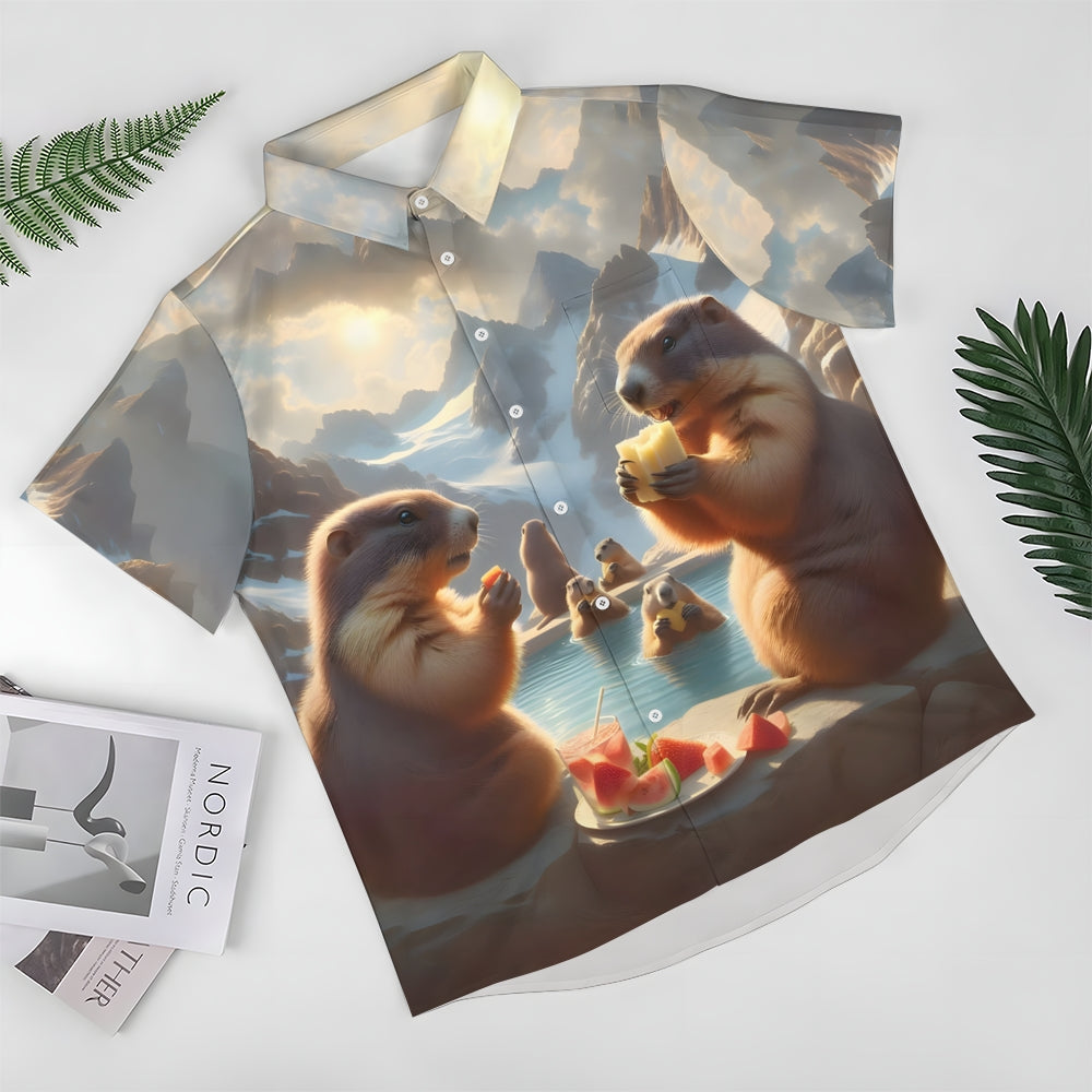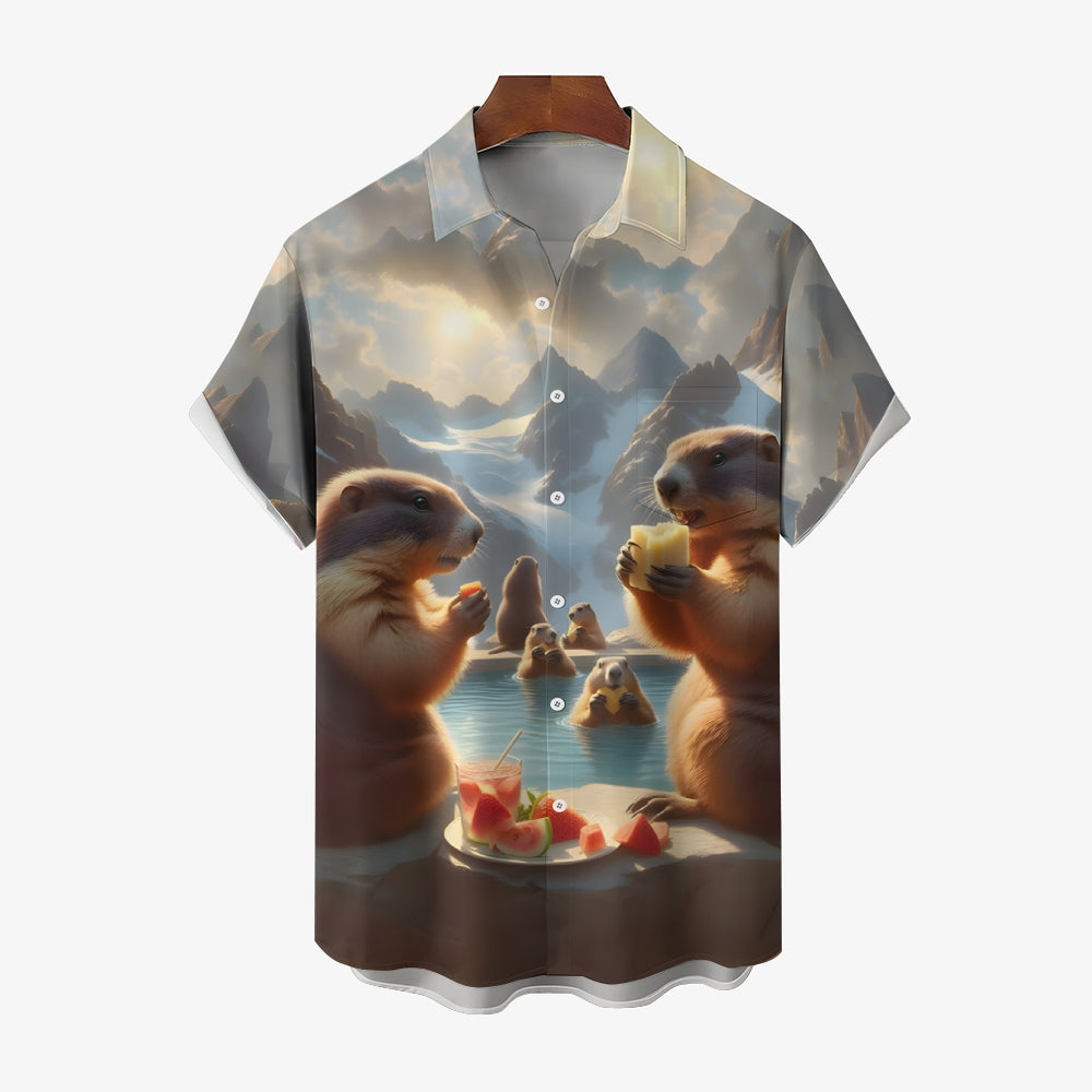 Men's Hawaiian Groundhog Day Print Casual Short Sleeve Shirt 2412004403