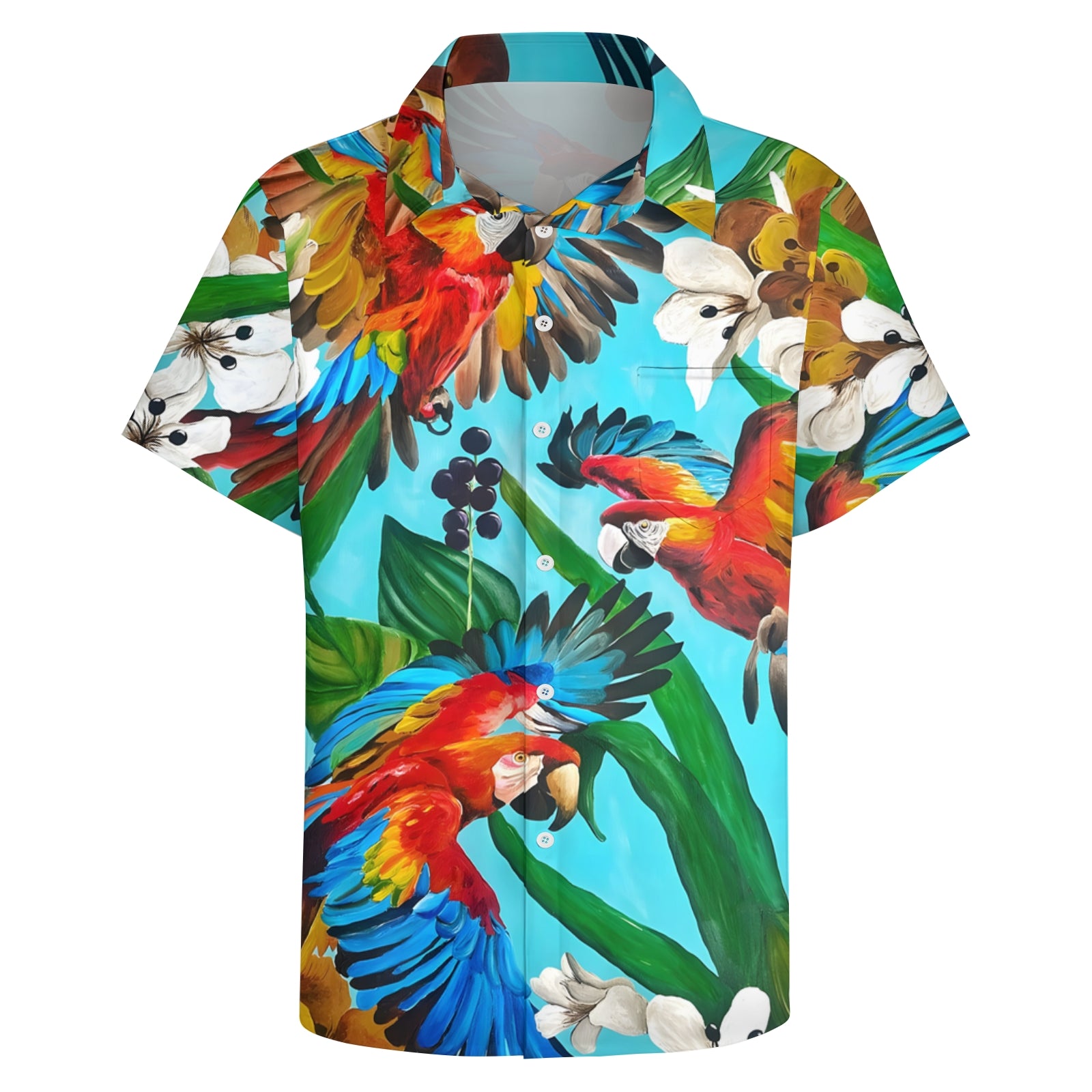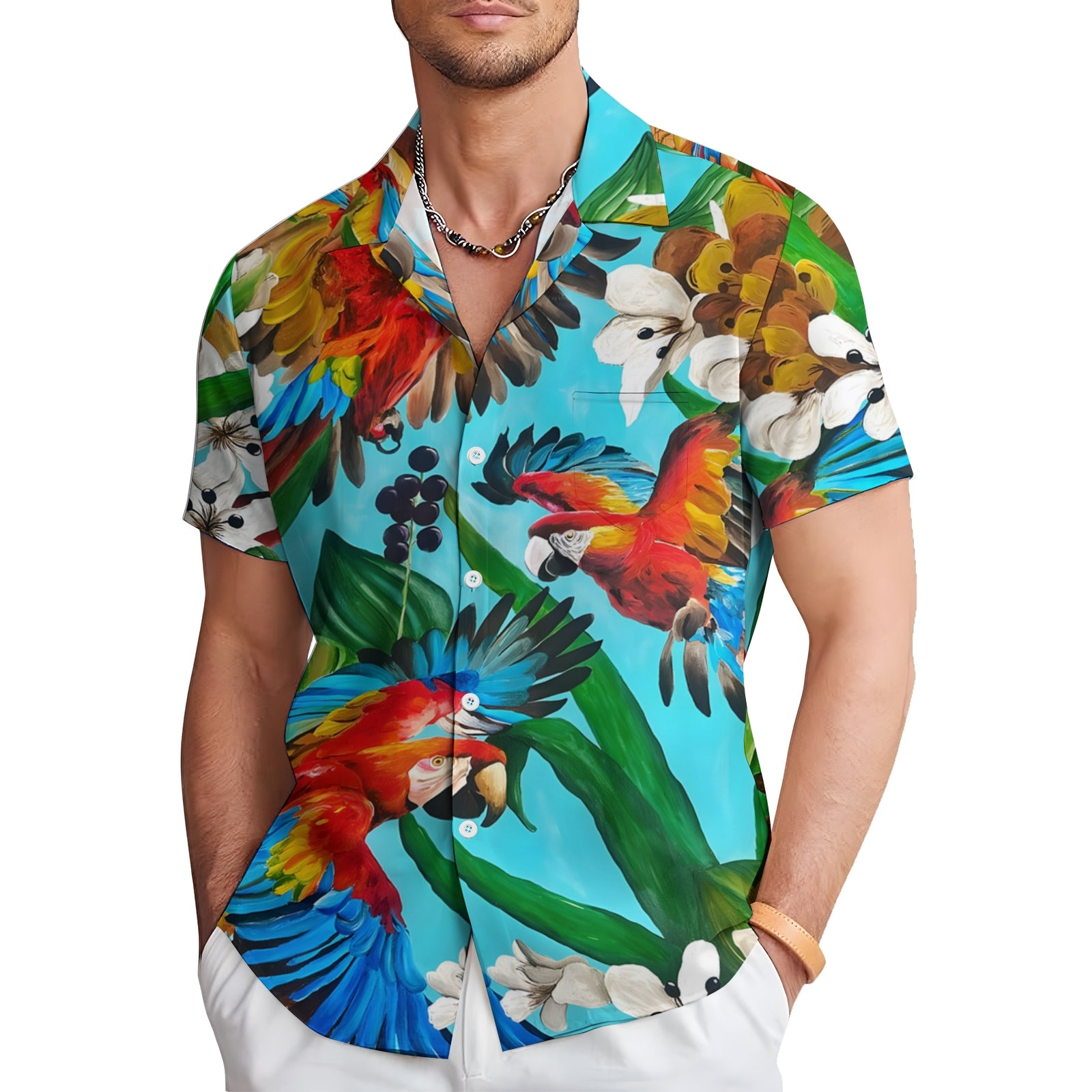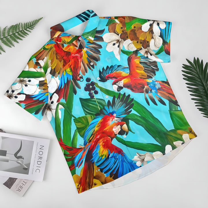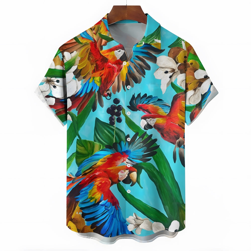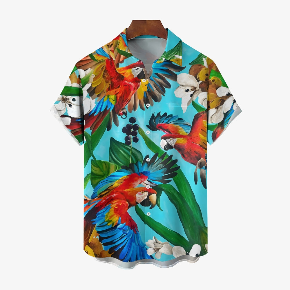 Men's Hawaiian Parrot Casual Short Sleeve Shirt 2404000065