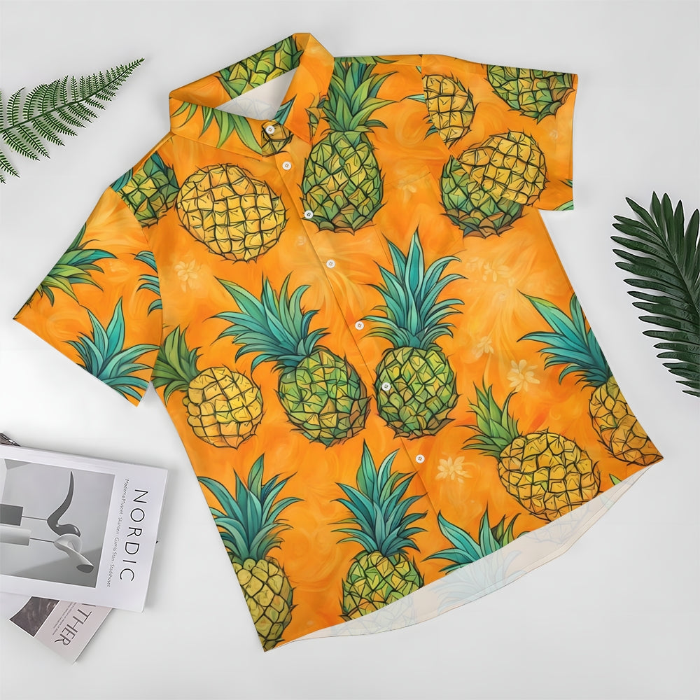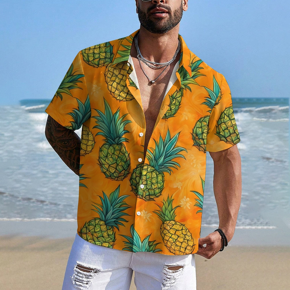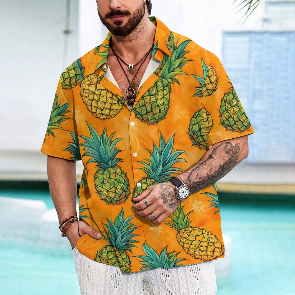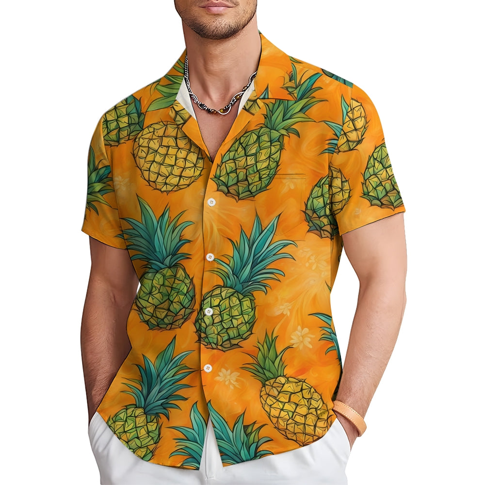 Men's Hawaiian Pineapple Print Short Sleeve Shirt 2501002524