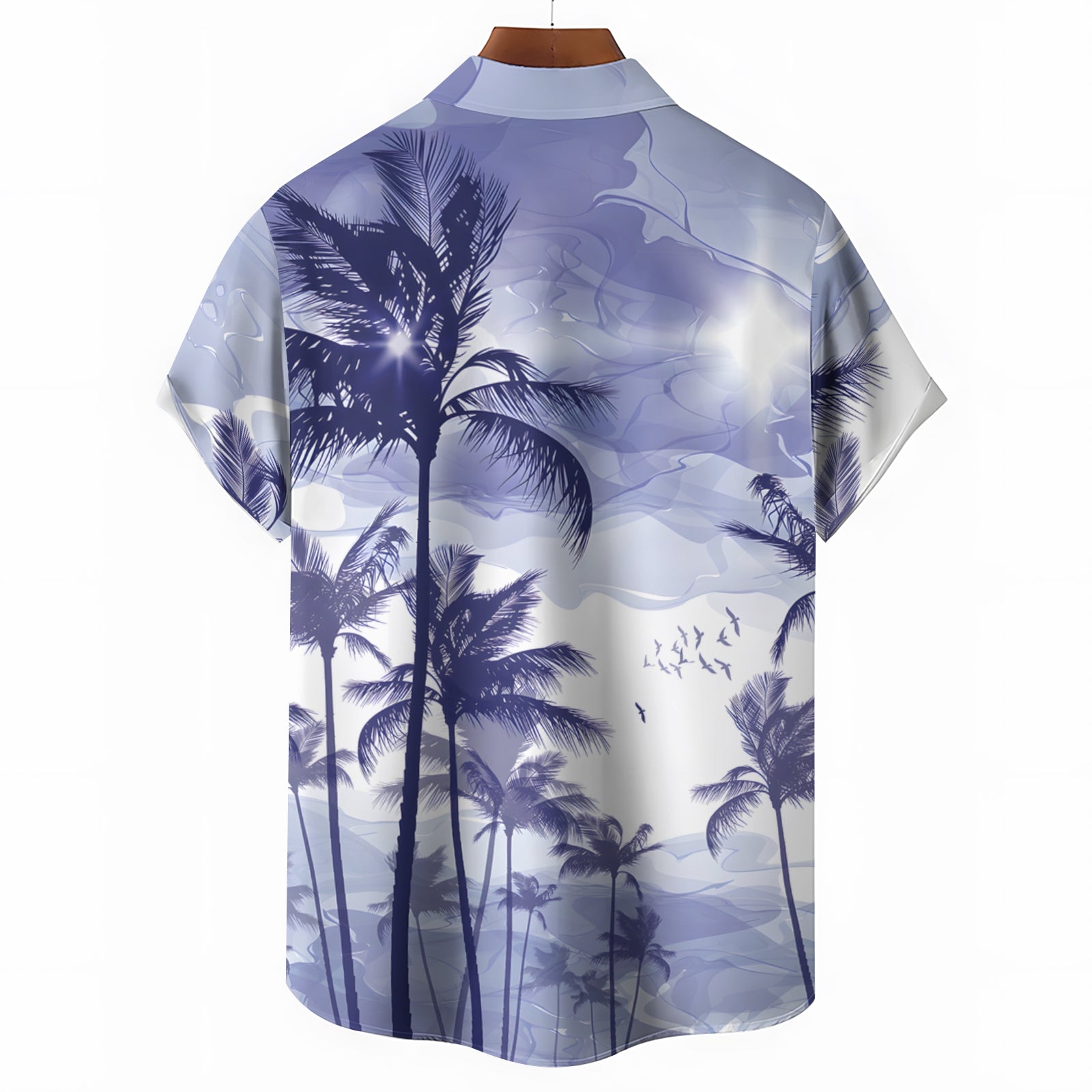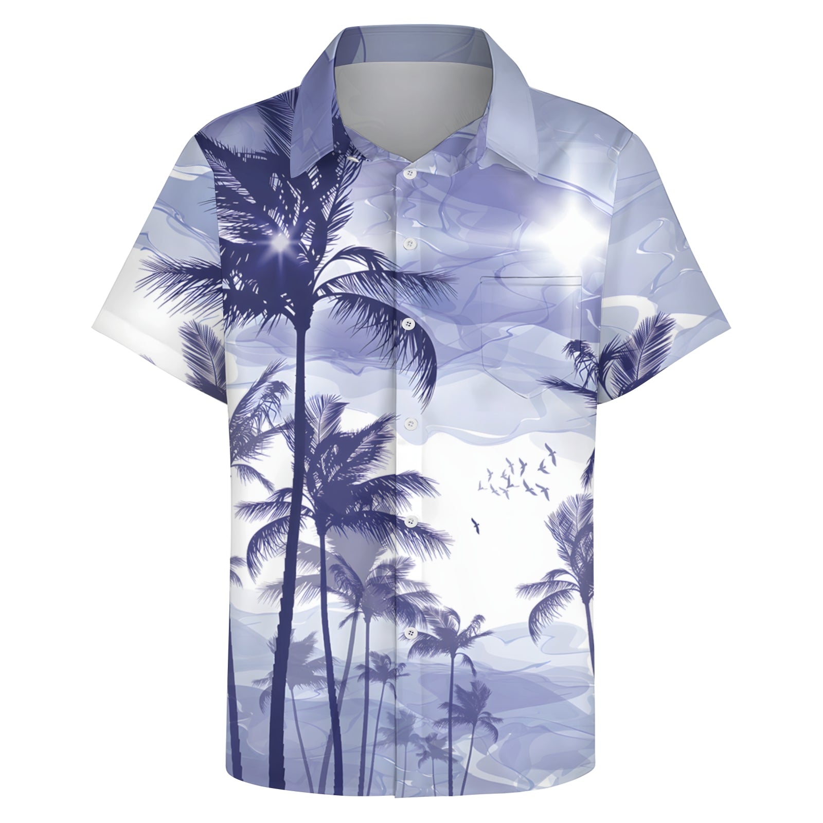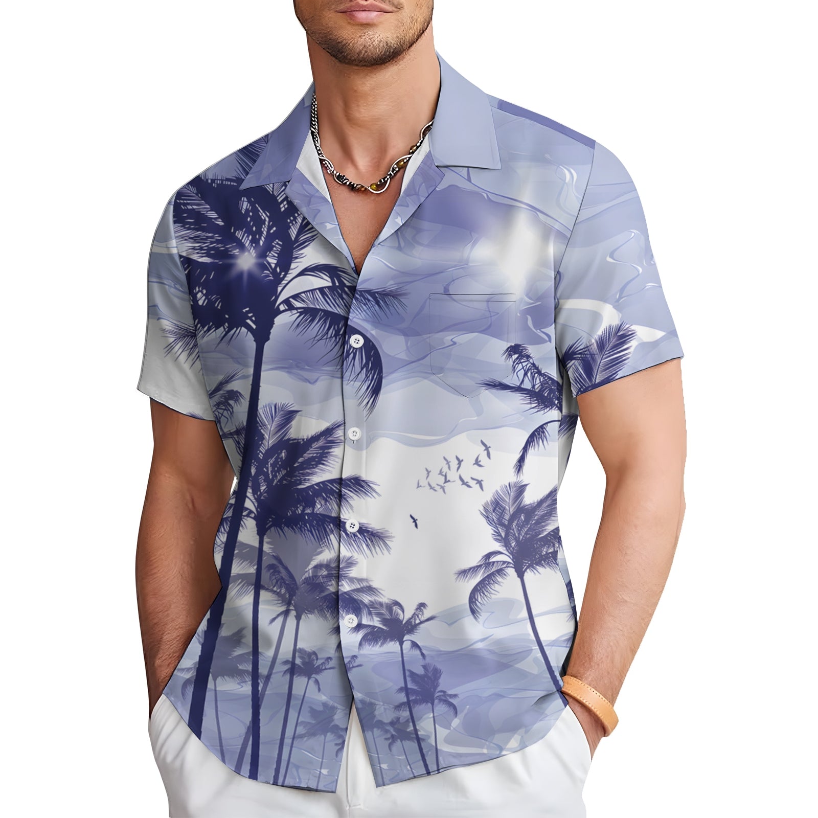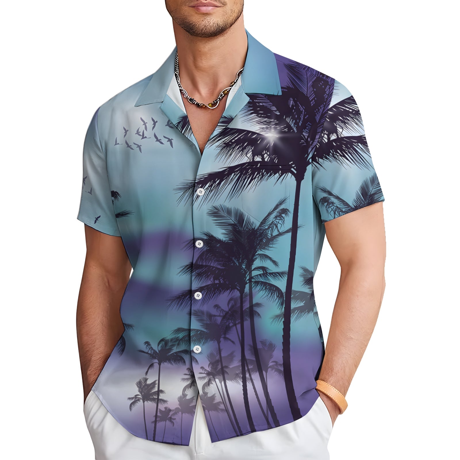 Men's Hawaiian Vacation Palm Tree Print Casual Short Sleeve Shirt 2404000843
