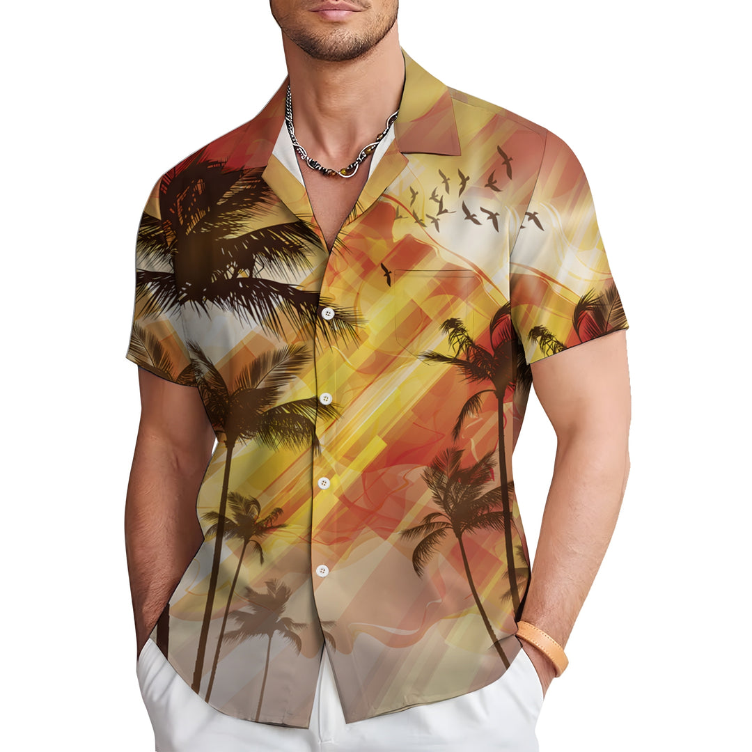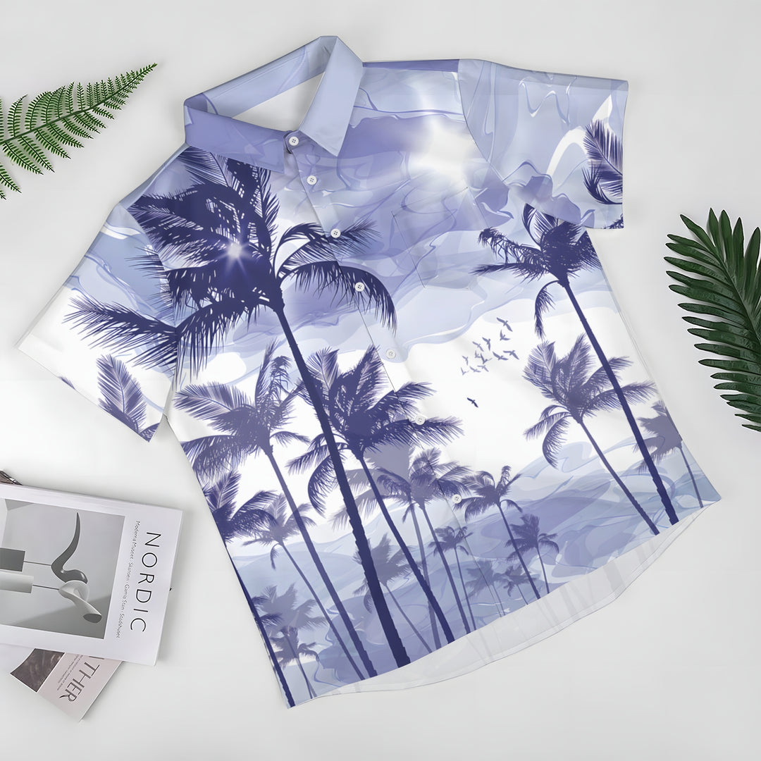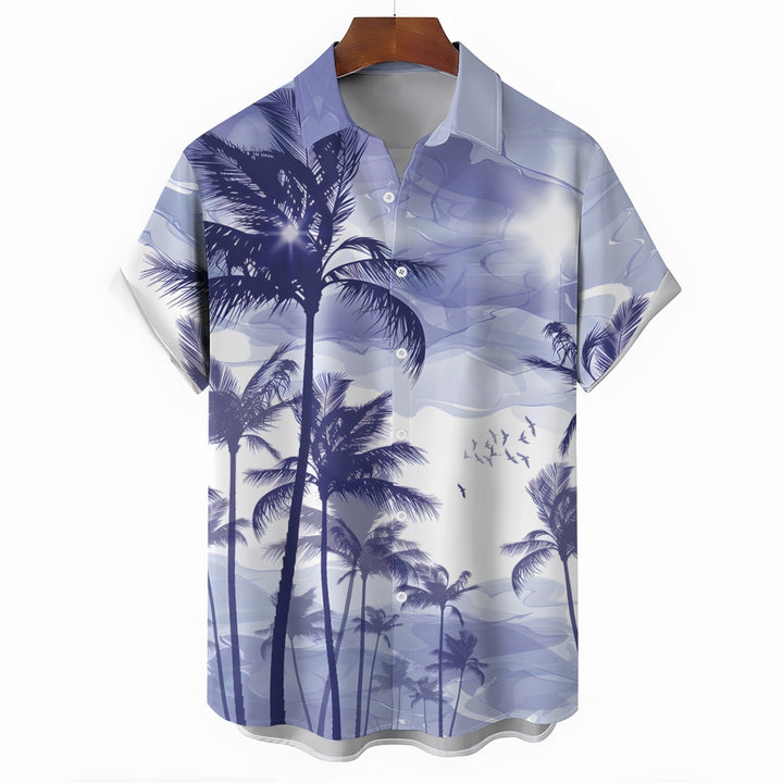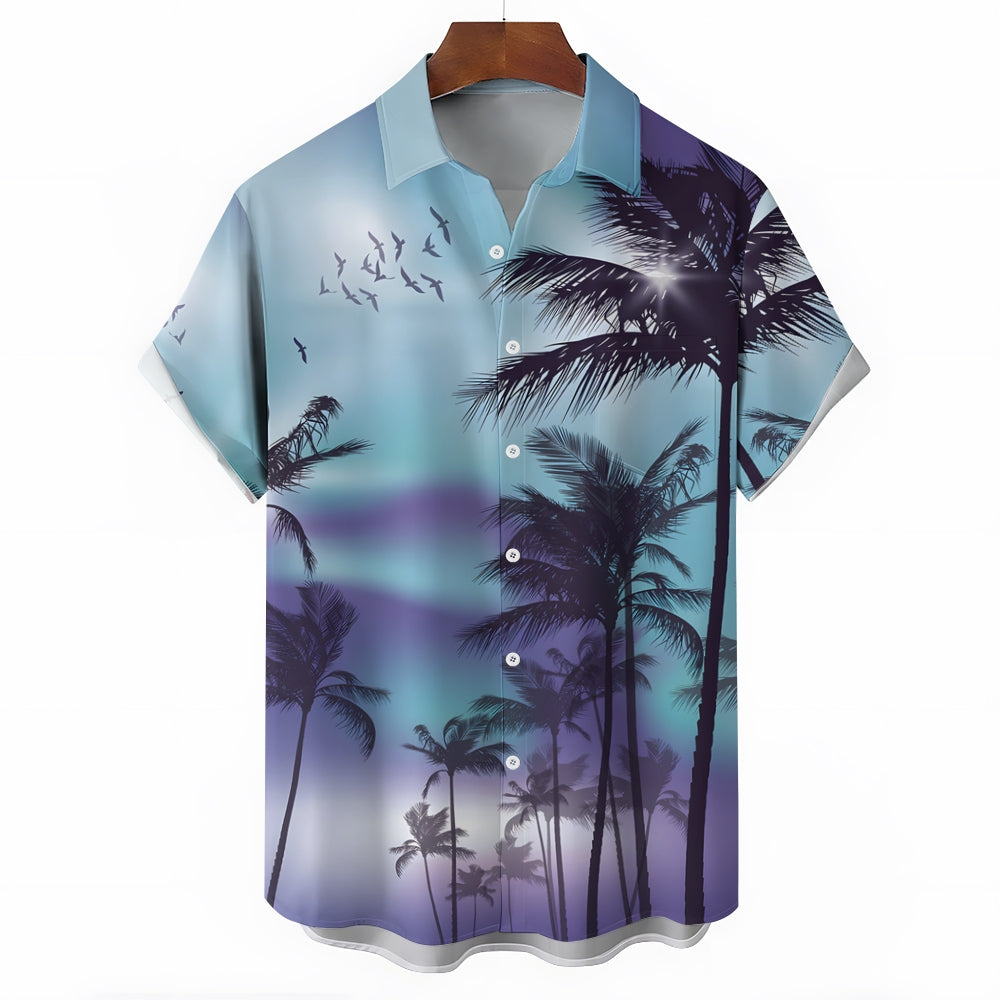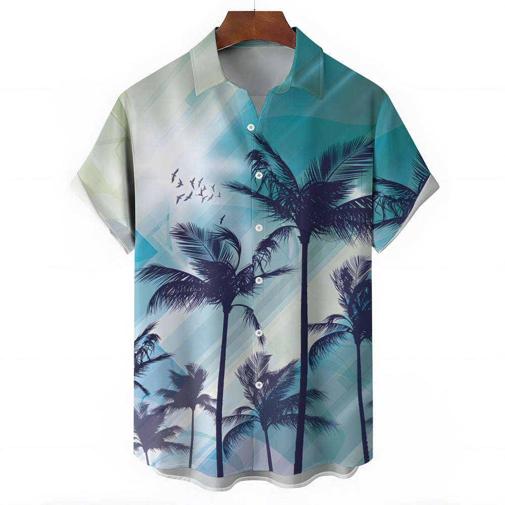 Men's Hawaiian Vacation Palm Tree Print Casual Short Sleeve Shirt 2404000843
