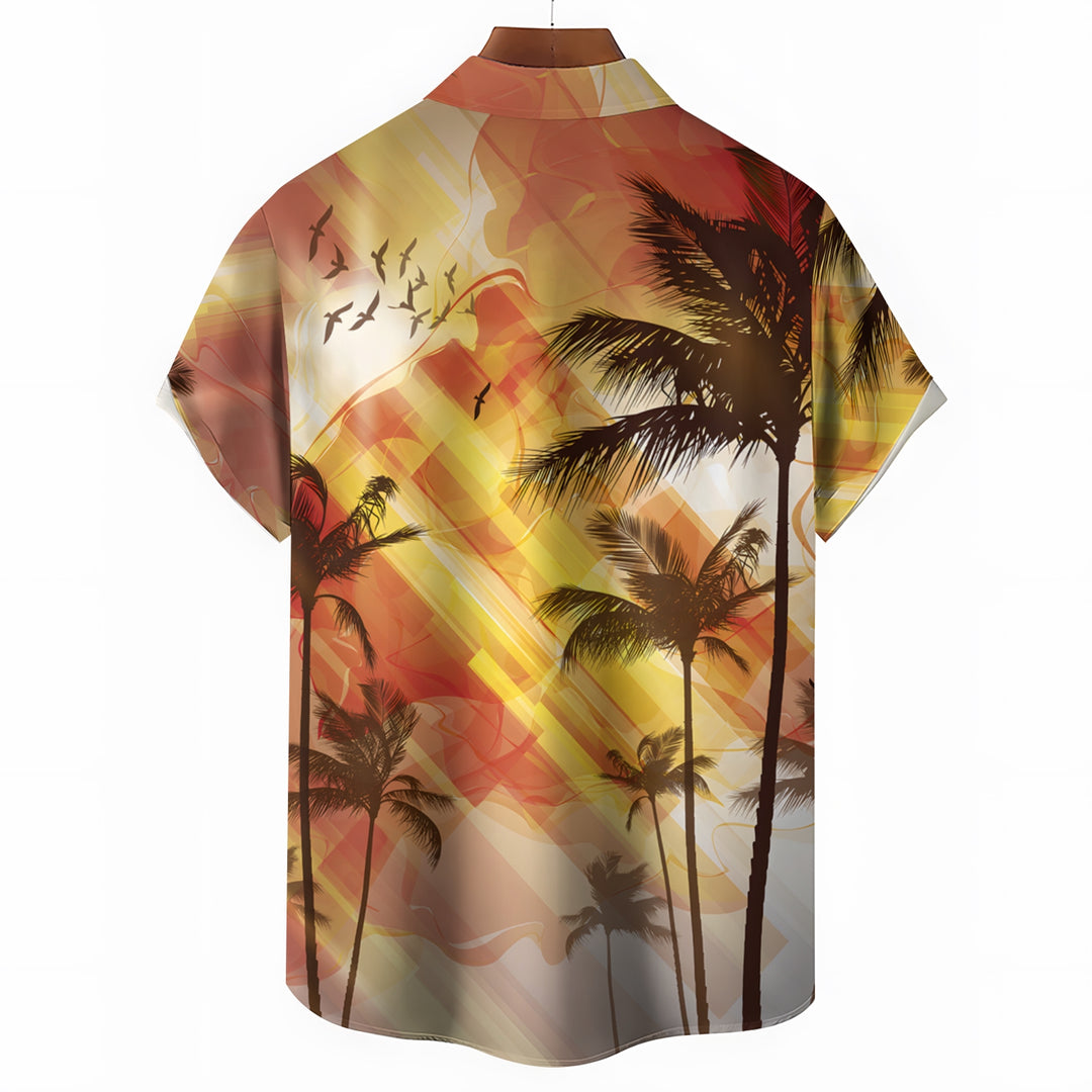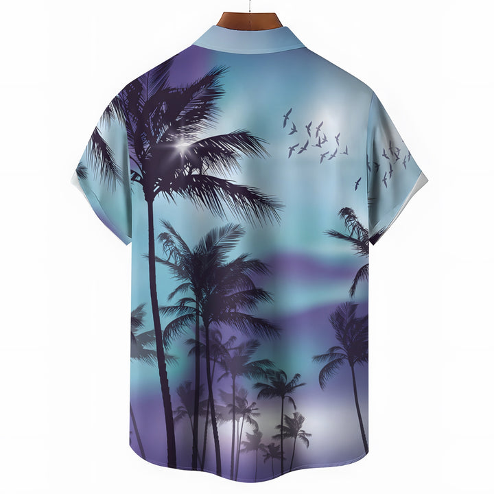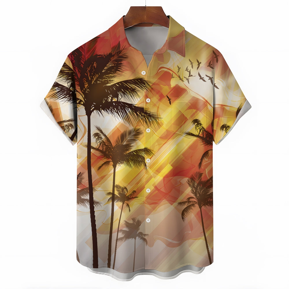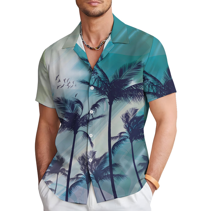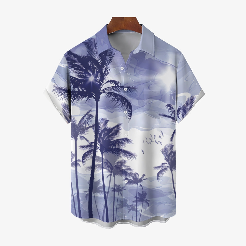 Men's Hawaiian Vacation Palm Tree Print Casual Short Sleeve Shirt 2404000843