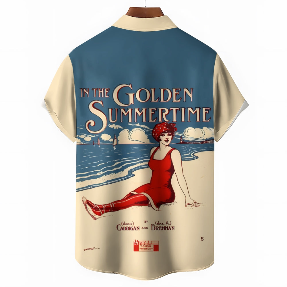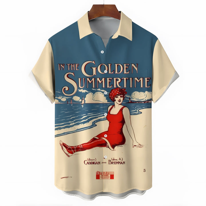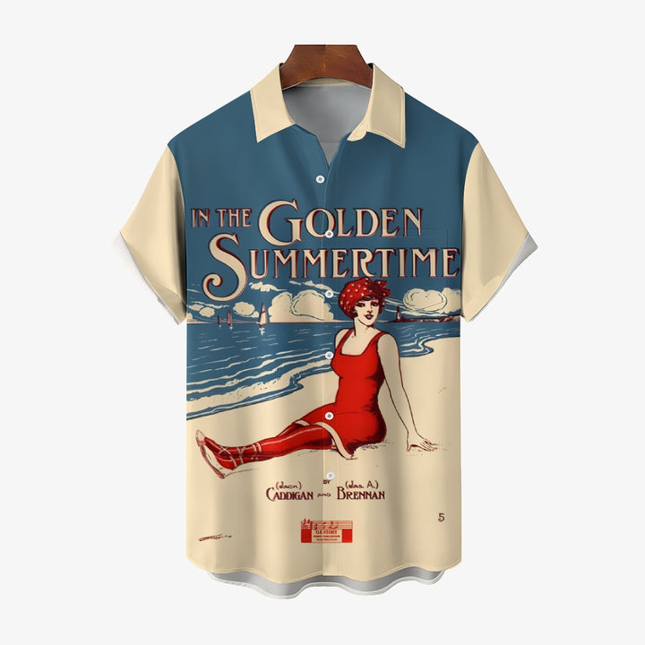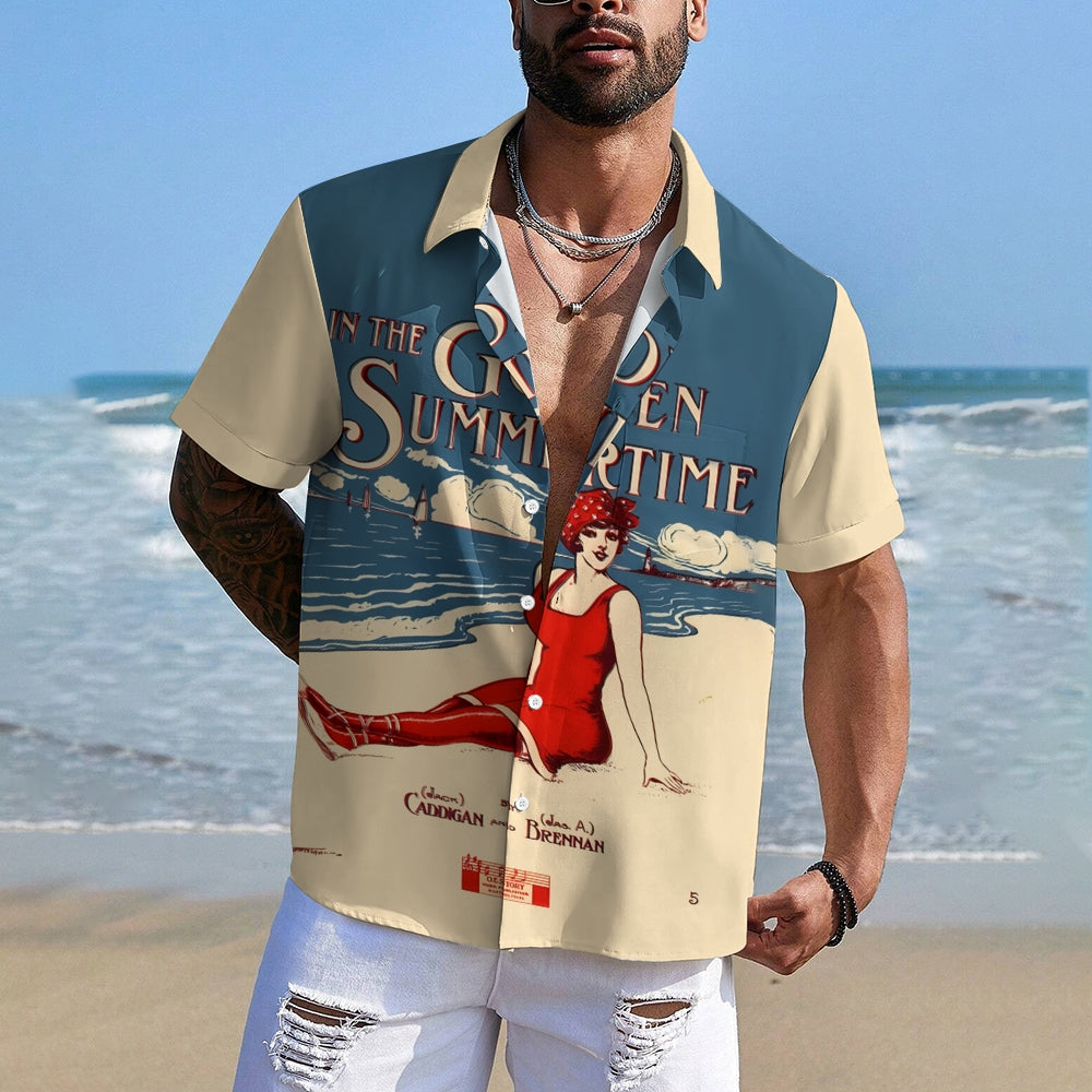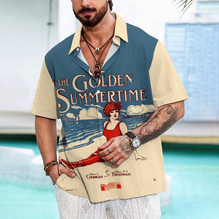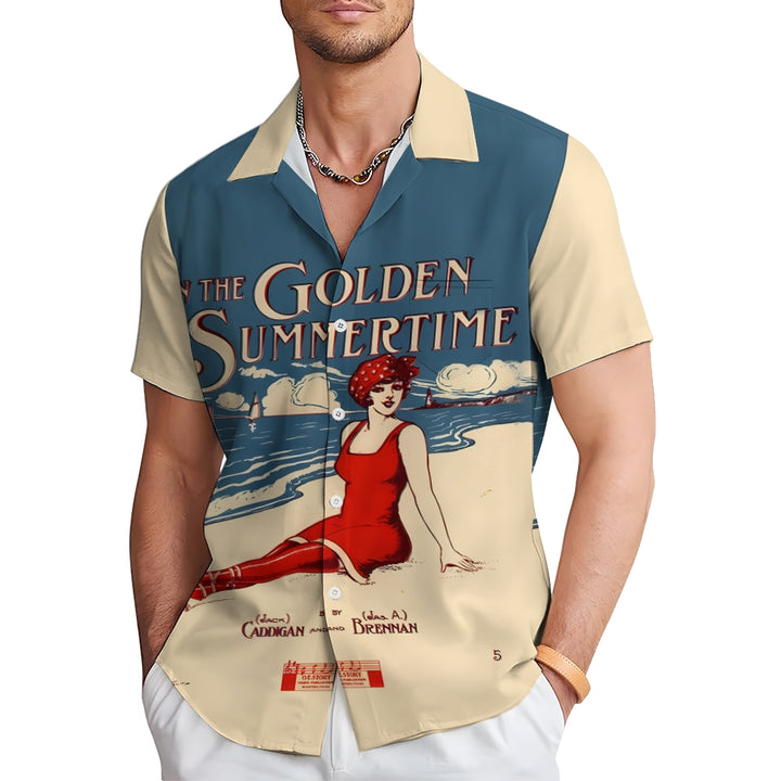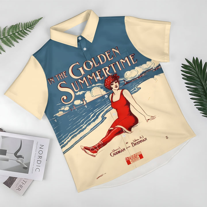 Men's In The Golden Summertime Printed Short Sleeve Shirt 2410001081