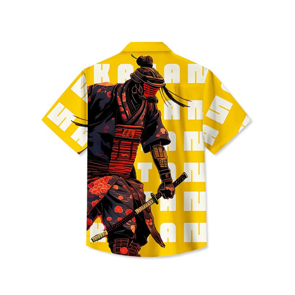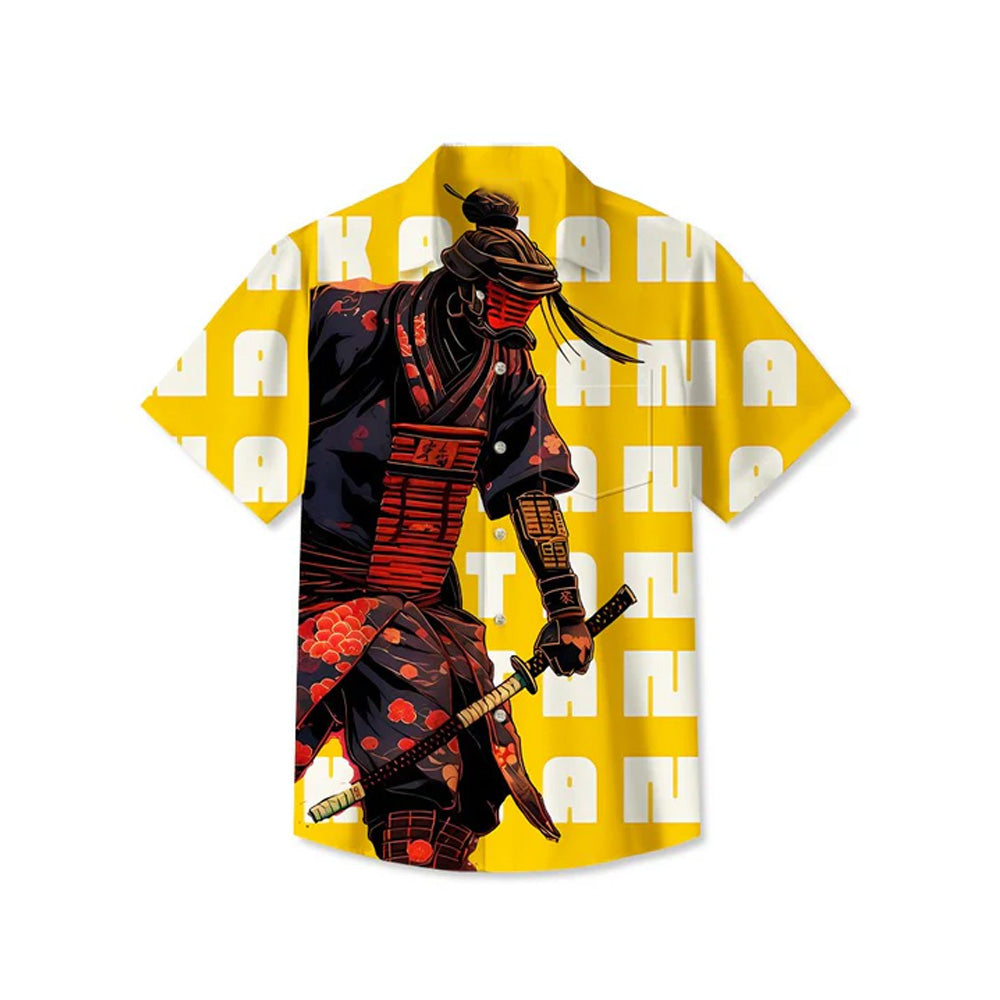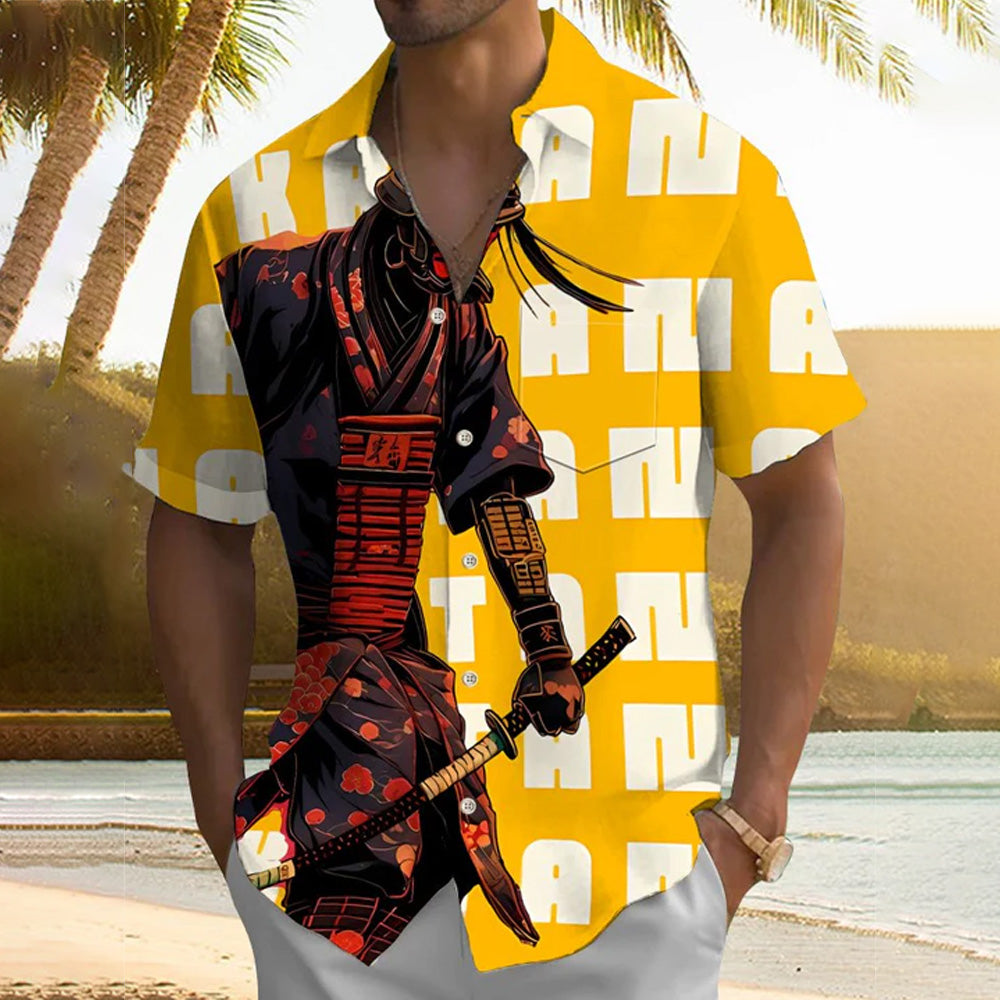 Men's Japanese Samurai Letter Print Casual Breathable Short Sleeve Shirt