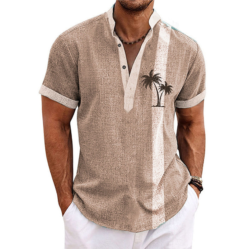 Men's Linen Coconut Tree Striped Graphic Prints Shirt