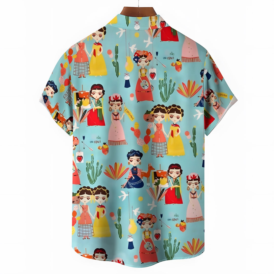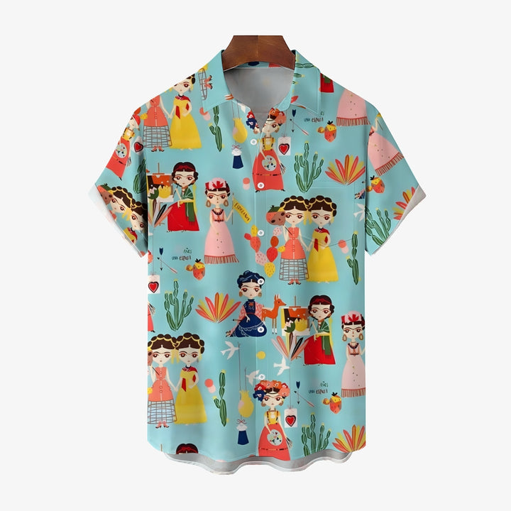 Men's Mexican Cultural Print Casual Short Sleeve Shirt 2404000173