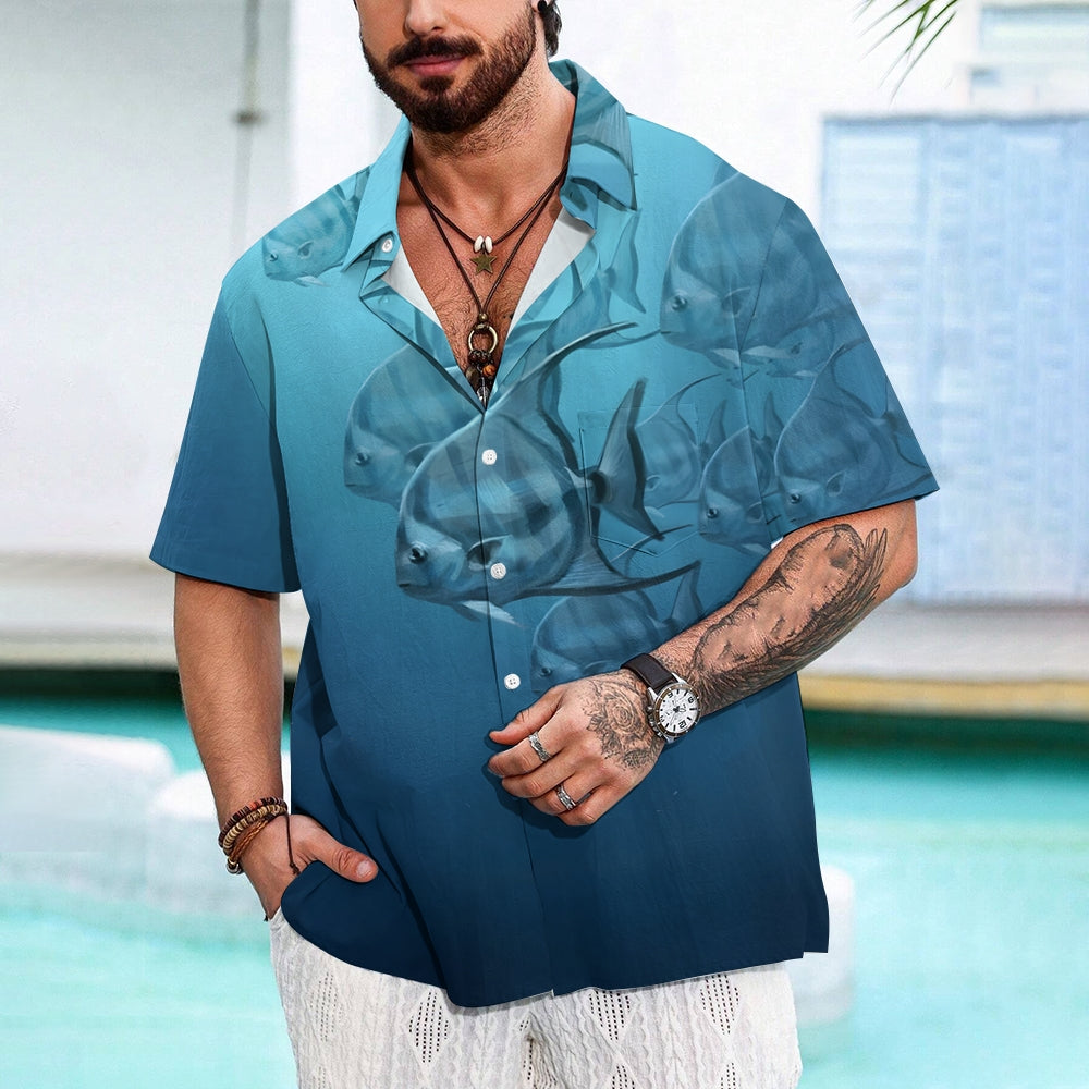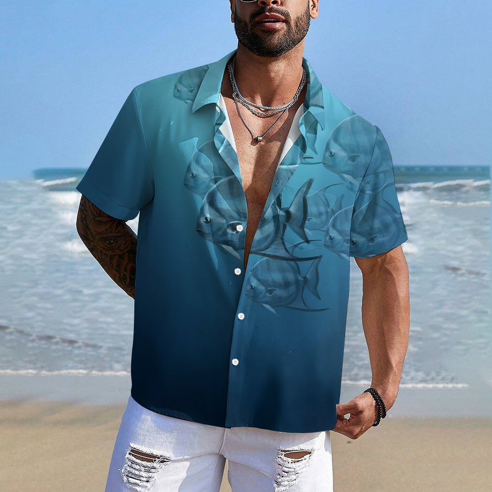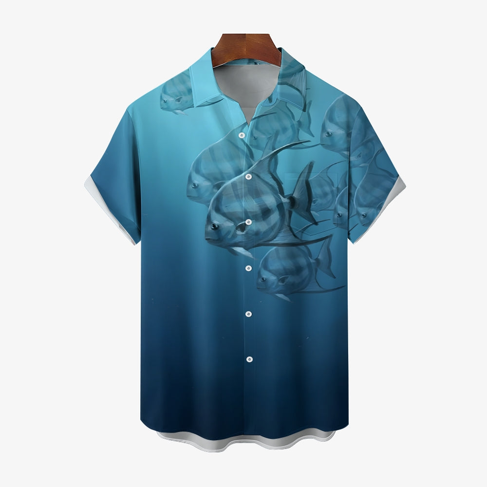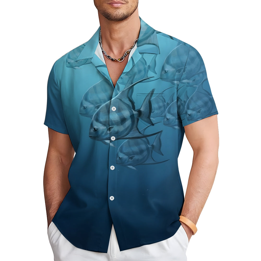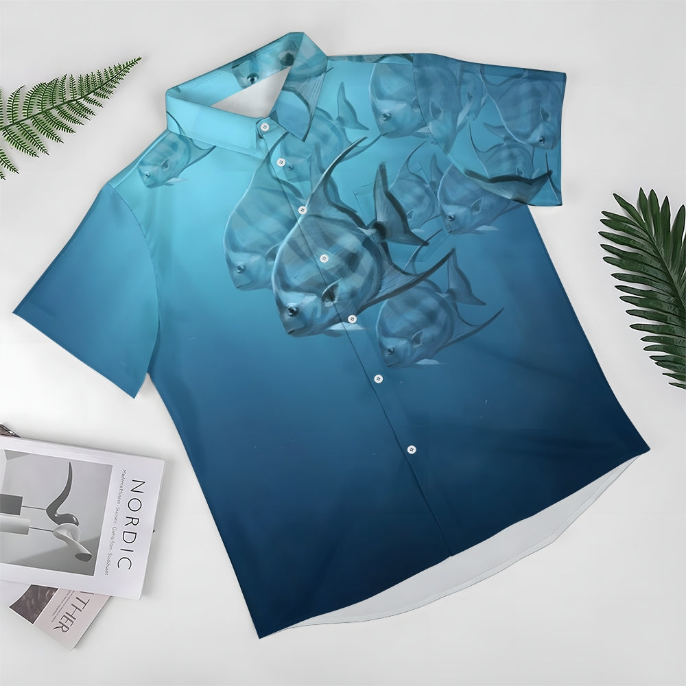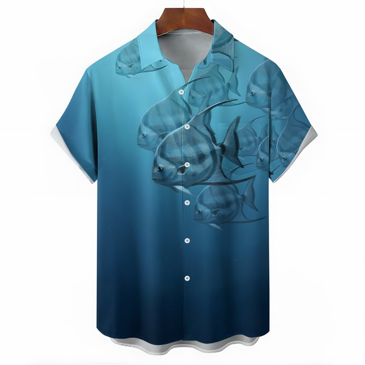 Men's Ocean Fish Casual Short Sleeve Shirt 2403000141